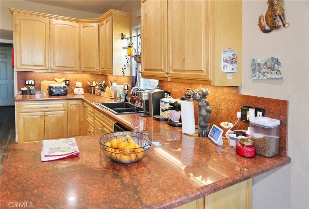 Drive a couple of miles farther east and save Thousands. Almost 2,000sf of living space (including 220sf in the finished room above the garage and the loft/hobby alcove). You can still get into your new home before the holidays...Situated across the street from beautiful Erwin Lake Park’s Fall colors and just a couple blocks from adventurous hiking trails, this versatile 2-story home offers comfort and charm in a quiet semi-rural setting away from the crowds and traffic. Close to highway 38 and 15 minutes to the Village, grocery stores, and all that Big Bear has to offer. A view to the south renders Sugarloaf Mountain, and Bear Mountain ski summit can be seen to the southwest.~~Step inside to a warm layout with high ceilings throughout, including granite countertops in the upgraded kitchen and bathrooms. The dining room opens to a small-but-cozy back deck for BBQs and lifting a few cold ones.~~~The front yard includes an apple, pear, and cherry tree offering both beauty and seasonal fruit harvests. The south-facing front porch and driveway ensure great sunlight year-round, especially helpful in winter months to help melt the snow and ice.~~A large driveway provides plenty of parking, and the finished 2-car attached garage is loaded with shelving for storage or workshop use. The fully fenced, low maintenance, front and back yards offer security for pets, kids, or garden projects.~ There is a heated, carpeted, and finished Guest room above the garage, with a full bath and external staircase—convenient for guests, hobby room, game room, extra bedroom, or an office. This guest room is not included in the overall 1,725sf of the home--truly a “Bonus room”. ~~ And don’t miss the “Up-Up” loft with inside stairs from bedroom #3, this loft is not included in the square footage of the home. This home can be yours to enjoy the Winter holidays and snow play and beyond... all 4-seasons.