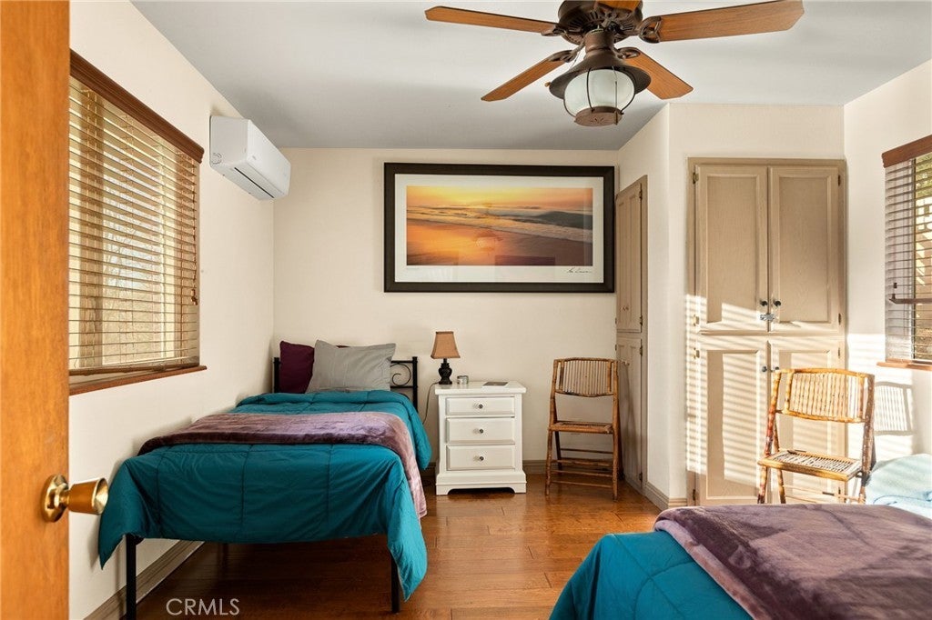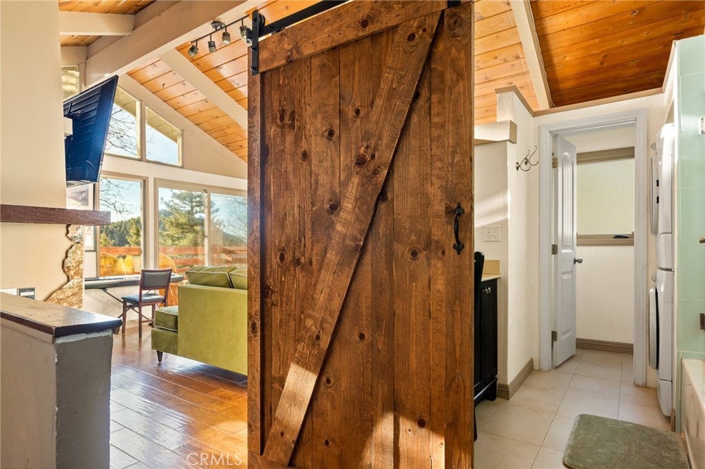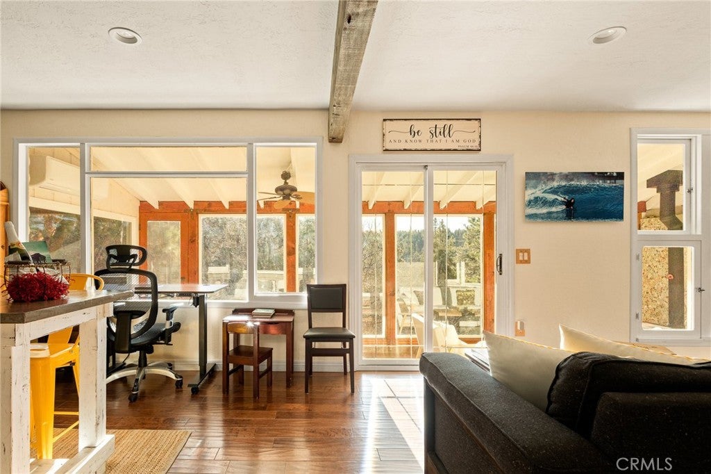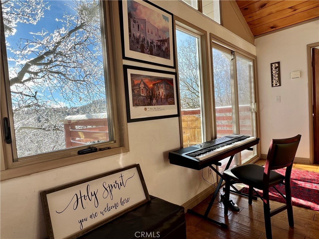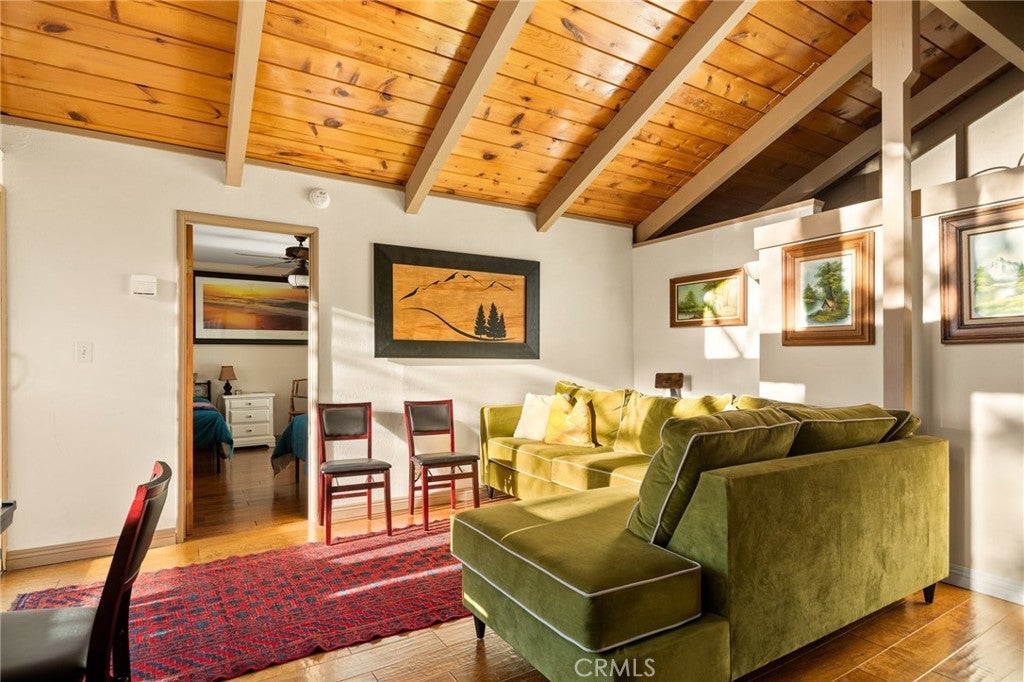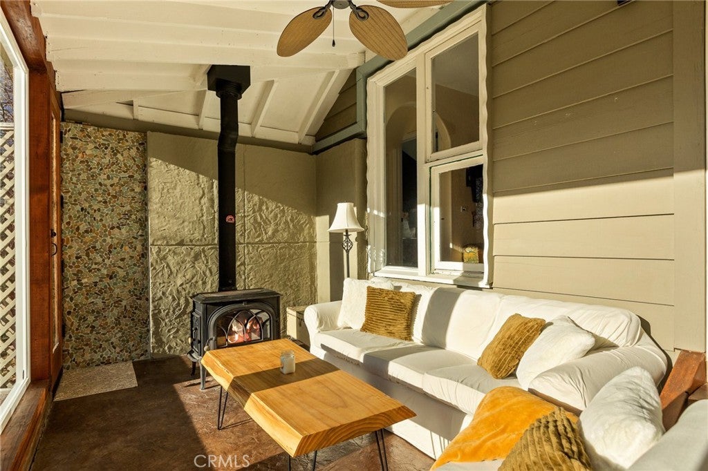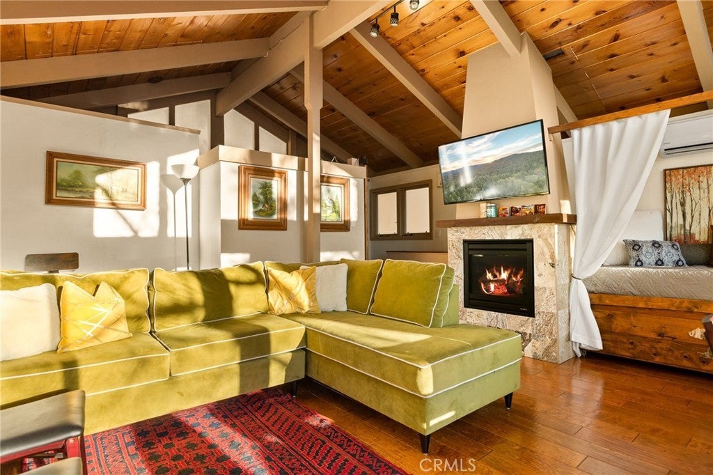 Nestled in the heart of Running Springs, this unique property is designed for those who crave tranquility and modern mountain living. Offering 3 bedrooms, 2 bathrooms, sunroom, three fireplaces, AC and amazing views! Step into the main level with primary bedroom, three-quarter bathroom, and open-concept living area with fireplace that flows seamlessly into the kitchen. The enclosed sunroom with wood burning stove is a standout feature on the main level, bathing the home in natural light and offering panoramic views of the surrounding forest, where towering pines and wildlife create a breathtaking backdrop. Upstairs you will find the additional two bedrooms, one of which has its own fireplace and custom built-in trundle bed. The second level also offers a full bathroom with laundry, and back deck with endless views. Outside, the large parking pad provides ample space for multiple vehicles making this home as practical as it is picturesque. Upgrades include new front retaining walls built in 2024, tankless electric hot water heater in 2022, and AC split units installed in 2020. Whether you’re a weekend adventurer or seeking a full-time mountain sanctuary, this property delivers unmatched charm and functionality. Conveniently located just one street over from local shops and dining, 15 minutes to Lake Arrowhead, and 25 minutes to Big Bear or Highland via Hwy 18 and Hwy 330. Schedule your private tour today and experience the magic of mountain living!