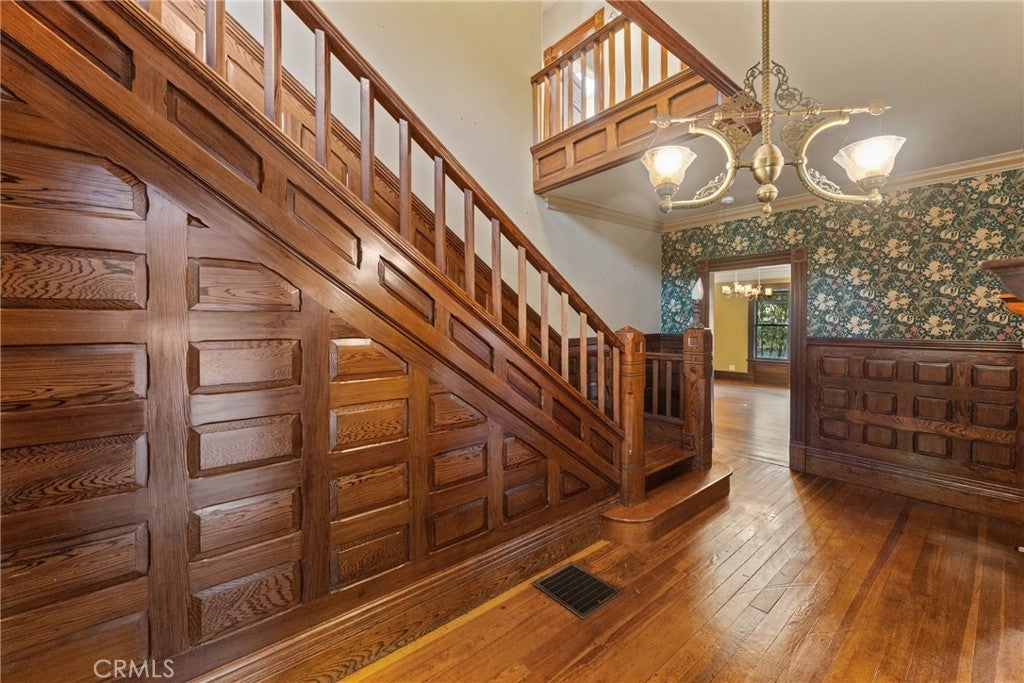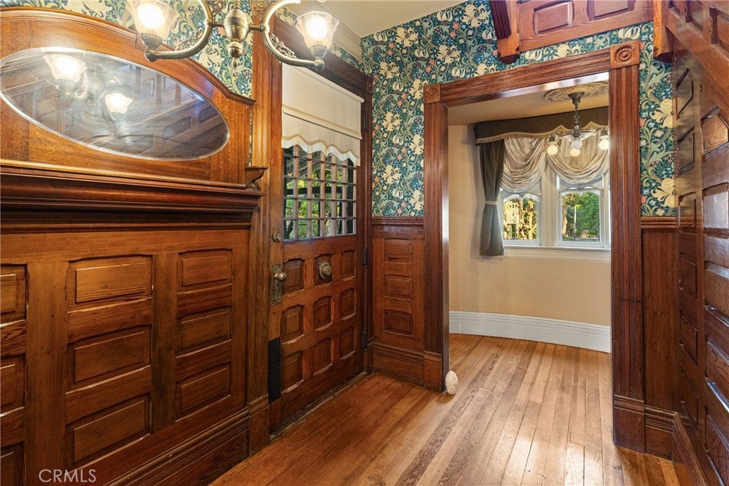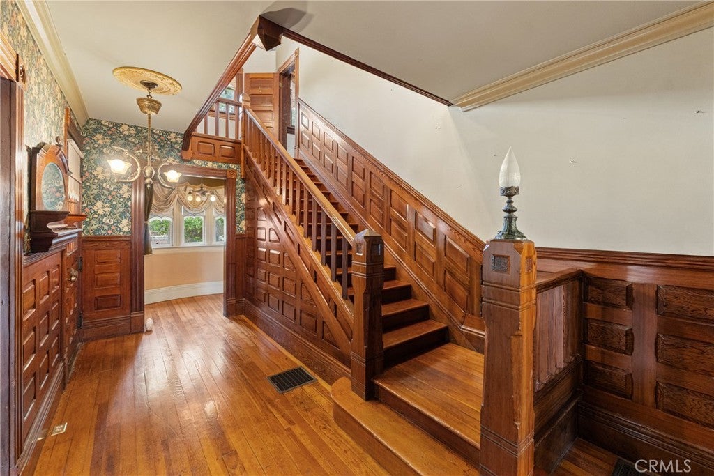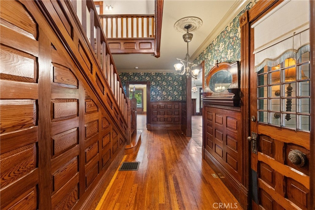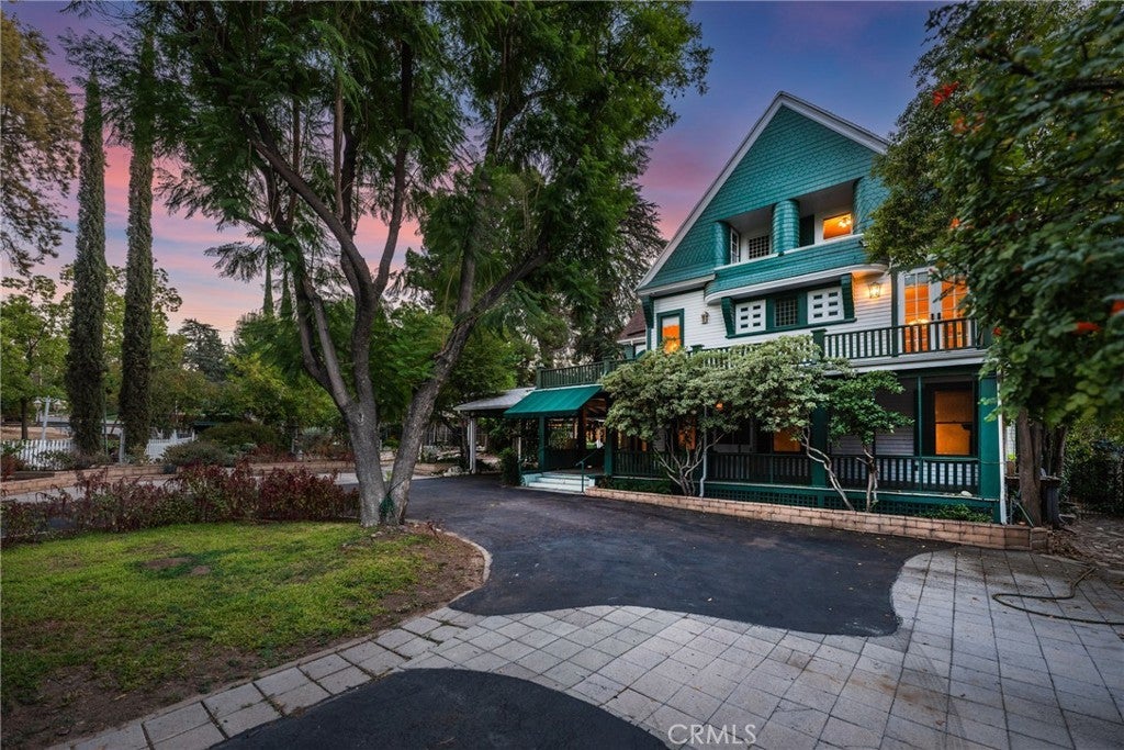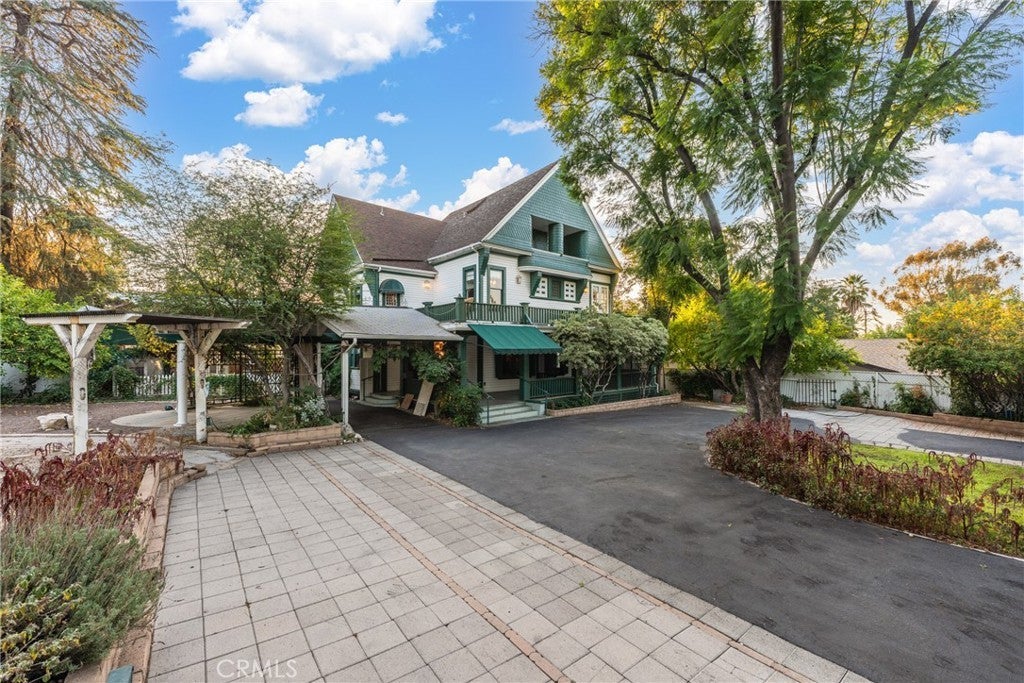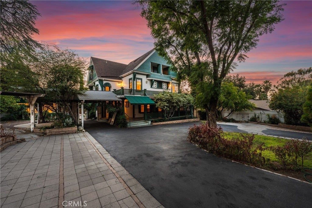 Welcome to Green Gables - a 1891 Victorian Queen Anne steeped in romance & charm. A history-lover's delight! Built just ten years after Redlands, CA, was founded, this stunning lady in green once saw horse-drawn carriages & hand-cranked phonographs. It oversaw the beginning of the citrus boom in Redlands. Today, you can have the special privilege of being connected to your home & the entire city of Redlands in a way few others could even dream of. An enviable & historical status statement. Recently repainted in 2021, this passionately restored 7-bed, 5-bath home retains its original wood floors, exterior & interior Victorian decorative elements, original doors & door hardware, bullseye trim, original windows with historic wavy glass & ornate framework, antique ceiling medallions, and a treasure trove of other Victorian delights. Enter through a solid wood front door featuring its original glass panes & muntins. Inside, find a blend of tastefully hand-painted walls, wood panelling, and beautifully embossed William Morris wallpaper from London, all period-appropriate. Redwood & pine bring warmth to the interior & the grand staircase. The double kitchen features plenty of cabinet & counter space, two sinks, three breadboards, and a butler’s pantry with a service window & swinging door to a grand formal dining room. There are original, irreplaceable gems here, like a speaking tube that reaches the second floor, hookups for service bells, and a servant staircase. Antique pocket doors connect the formal dining room to a roomy parlor. Spend quality time here in the parlor, in a private sitting room, take in the view from a gorgeous Juliet balcony, or connect to nature in the solarium. Upstairs, discover a breathtaking landing with a heritage library. All bedrooms & sitting areas are quite spacious for the period. The primary suite offers tons of room & natural light, a separate sitting/dressing lounge, and an ensuite bathroom with a clawfoot tub, marble counters, and a basin sink. On the top floor, find bonus living quarters or an area for your private study with an additional bath. A pull-down ladder on this floor gains you access to a loft. Outside, the grounds are home to scenic walkways with cypress, jacaranda, pomegranate, lemon, lavender, butterfly bush, and native milkweed. A workshop & shed provide additional outdoor storage. This is your chance to own a true heritage home and have a legitimate claim to the story of Redlands, CA!