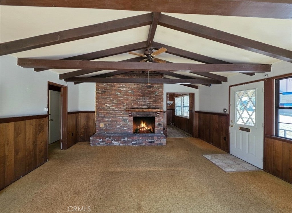 Situated just steps from Green Valley Lake, this mid-century mountain chalet offers a rare combination of setting, style, and accessibility. Built in 1962, the home reflects its era with exposed beam ceilings, natural wood interiors, and generous windows framing the surrounding pines. The south-facing orientation provides soft light throughout the day, creating a warm atmosphere across both levels of living space. The main floor centers on a comfortable living room anchored by a classic stone fireplace, while the adjoining kitchen features its own fireplace—a distinctive touch rarely found in mountain homes. Three bedrooms and two baths provide ample accommodation for full-time or seasonal use, and the flexible layout allows for both gathering and quiet retreat. Two decks extend the living space outdoors, ideal for taking in the wooded views and crisp mountain air. The lot includes level parking and a level entry from Spruce Drive—an especially valuable feature during the winter season. Surrounded by mature trees and mountain air, the property sits approximately 0.1 mile from the public beach and fishing pier, 0.2 mile from the Green Valley Lake General Store and Café, and 0.3 mile from local forest trailheads. Whether envisioned as a classic renovation project or a serene mountain hideaway, this property’s proximity to the lake, dual fireplaces, and mid-century character make it an exceptional opportunity in the heart of Green Valley Lake.