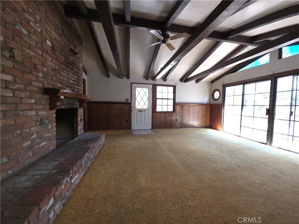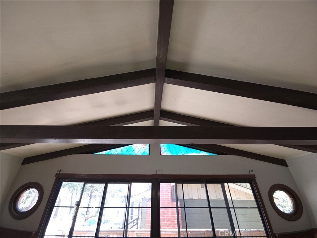 - Interior FeaturesHigh Ceilings, Bedroom on Main Level, Beamed Ceilings, Cathedral Ceiling(s), Living Room Deck Attached
