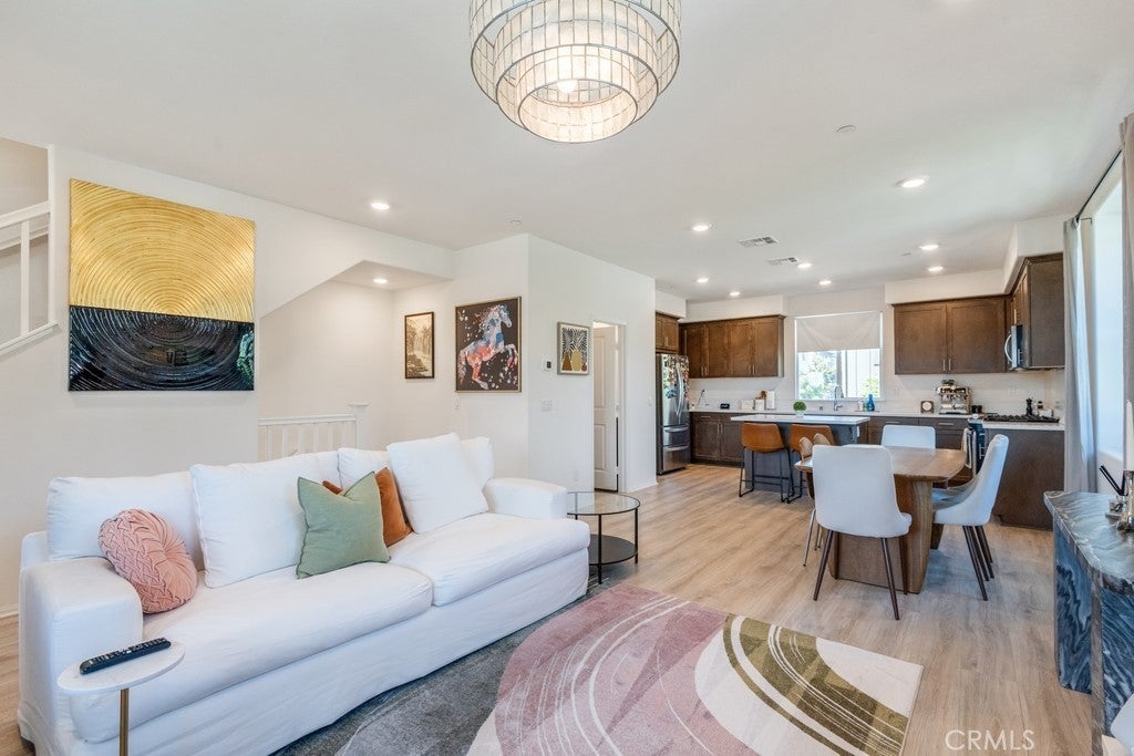 Like-New End Unit Condo in Desirable Rancho Cucamonga. This stunning 3-story end-unit condominium is located in the highly sought-after Day Creek Square community, offering the perfect blend of style, convenience, and resort-style living. Just minutes from Victoria Gardens, Day Creek Marketplace, and an abundance of shopping and dining options, this home is perfectly situated for an active lifestyle. Go inside to find laminate flooring flowing seamlessly through the open-concept kitchen, dining, living, and bathroom areas. The bright and airy kitchen boasts granite countertops, a center island with bar seating, and direct access to a private balcony, perfect for relaxing or entertaining. Upstairs, the spacious primary suite features a walk-in closet and an en suite bathroom for your comfort. On the first floor is a bonus room perfect for home office and direct access to the 2-car garage with Electric vehicle charging station, upgraded epoxy flooring, and tankless water heater. Day Creek Square offers exclusive amenities, including a sparkling pool, soothing spa, BBQ areas, a playground, and beautifully maintained grounds. Enjoy low-maintenance living with easy access to top-rated schools, parks, and freeways. This like-new home truly has it all—schedule a showing today!!