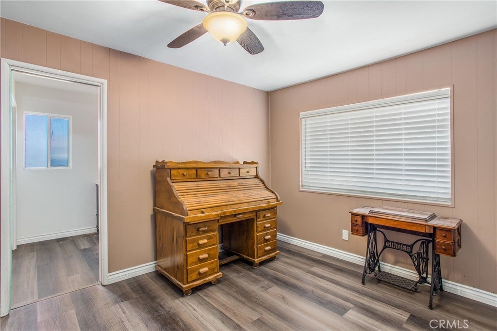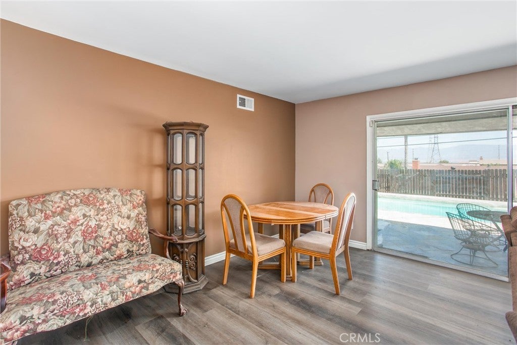 Blue Mountain bliss! Charm meets flexibility in one of Grand Terrace’s most sought-after midcentury neighborhoods. This single-level home boasts a unique dual-primary suite layout, offering options for multigenerational living or extended guest stays. Enjoy sweeping panoramic views of the valley and San Bernardino mountains from your private pool deck, and soak in serene Blue Mountain vistas from the oversized front yard. Inside, character and comfort await. The heart of the home features multiple living spaces, including a cozy living room anchored by a custom stone fireplace with raised hearth, vintage breezeblock accents, and abundant natural light through a large sliding glass door. The spacious adjacent family and dining room flows effortlessly into a corner kitchen with classic built-ins, dual ovens, and a warm, retro feel. On one side of the home, a secluded primary suite includes its own en suite bath plus private access to the garage and backyard. Down the opposite hallway, discover a second primary suite with its own full bath, along with two additional bedrooms that share a hall bath full of charming vintage character. Outside, the freshly resurfaced pool is fireworks-ready with front-row seats to citywide shows, plus plenty of space to customize the backyard to your taste. An attached two-car garage offers built-in shelving and loft storage. Additional highlights include fresh vinyl flooring throughout, ceiling fans, and updated light fixtures. Set in the heart of a peaceful, walkable neighborhood near top-rated schools, parks, hiking trails, and family-friendly amenities, this gem delivers space, soul, and something special around every corner.