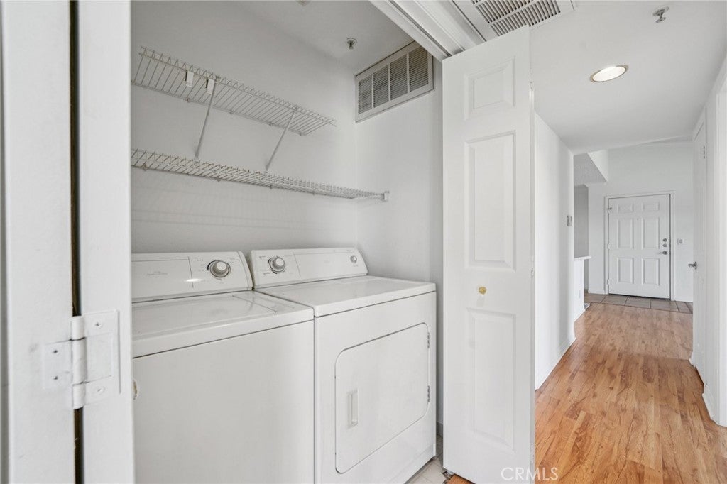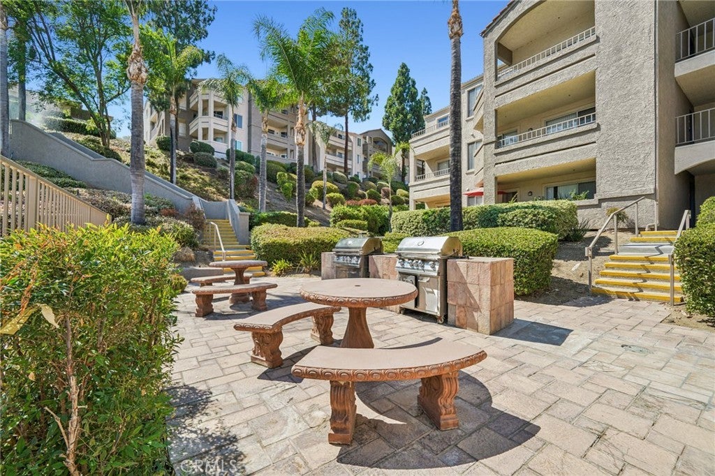 VIEWS VIEWS VIEWS! Turn-Key North Corona Condo with a top level view of Parkview Park! This Move-in ready 2 bedroom / 2 bath, 941 Sq Ft home is located within the desirable Triana gated community. The interior is SPACIOUS and OPEN, offering lots of NATURAL LIGHT, HIGH CEILINGS, FRESH PAINT, NEW CARPET flooring in bedrooms, two PRIVATE BALCONIES, a 1-CAR GARAGE, and 1 ADDITONAL PARKING SPACE. The living room with wood look laminate flooring opens to the kitchen with NEWER STAINLESS STEEL APPLIANCES which include the refrigerator, dishwasher, electric range, and microwave. The kitchen also offers tile floors, breakfast bar seating, and dining area. Both of the bedrooms are generously sized and have balcony access, the primary bedroom also has a private ensuite with vanity and large soaking tub/shower combo, and there is a full-size hall bathroom for the secondary bedroom and guests to share. An in-unit laundry closet with included washer and dryer complete the floor plan! Residents also get to enjoy a sparkling pool and spa, an indoor gym and there is also a clubhouse and outdoor dining areas near the pool! The clubhouse can be used for gatherings and parties. Owner only pays for electricity in this home. The water, gas, trash, and landscaping are all included in the HOA fee! This home is conveniently located near parks, schools, as well as the huge shopping and dining center off of McKinley St! Also easy access to the 15 and 91 Fwys! Do not Miss Out On This One! Schedule your private tour today!