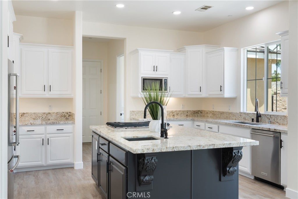 ADU WITH 2 BEDROOMS | 2 ON A LOT | POOL & SPA | OUTDOOR KITCHEN | NO HOA - Tucked into the serene hills of Reche Canyon, this remarkable single-story estate offers a rare combination of refined luxury, unmatched privacy, and versatile living, all just minutes from Loma Linda University Medical Center and University. Backing to open space with no rear neighbors, this property delivers the peace and seclusion of country living, yet with the convenience of being close to world-class healthcare, education, and city amenities. The 3,539 sq ft Main Residence showcases 4 bedrooms and 3.5 baths, designed for both grand entertaining and effortless daily living. The moment you enter, you’re greeted by light-filled formal living and dining spaces with new luxury vinyl plank flooring and seamless access to the outdoors. The expansive great room pairs a generous family area, complete with a newly updated fireplace and custom lighting with a chef’s kitchen featuring granite countertops, an island with cooktop, and abundant cabinetry. The primary suite is a private sanctuary, offering direct backyard patio and pool access and a spa-inspired bath with soaking tub, walk-in shower, dual vanities, and two walk-in closets. Three additional bedrooms provide comfort for family and guests, including a secondary en-suite. Adding to its appeal, the 1,250 sq ft detached Casita, built in 2023, offers 2 bedrooms, 2 full baths, its own living area, and kitchenette. Perfect for multigenerational living, extended guest stays, or potential rental income, it blends seamlessly with the main home’s architectural elegance. Outside, your private resort-style backyard awaits. Swim in the sparkling pool, unwind in the heated spa under the stars, or host unforgettable gatherings in the covered BBQ and outdoor kitchen area, perfect for al fresco dining year-round. The expansive patio offers ample space for lounging & entertaining, while the dedicated RV parking adds convenience for travel enthusiasts. With no rear neighbors, you’ll enjoy unmatched privacy and peaceful canyon vistas, creating a setting that feels both exclusive and serene. Additional highlights include a 3-car garage, generous driveway parking, and a location within one of Colton’s most coveted communities - Crystal Ridge. For those who seek a home that balances luxury, privacy, and proximity to premier destinations, 3086 Crystal Ridge Lane delivers a lifestyle unlike any other.