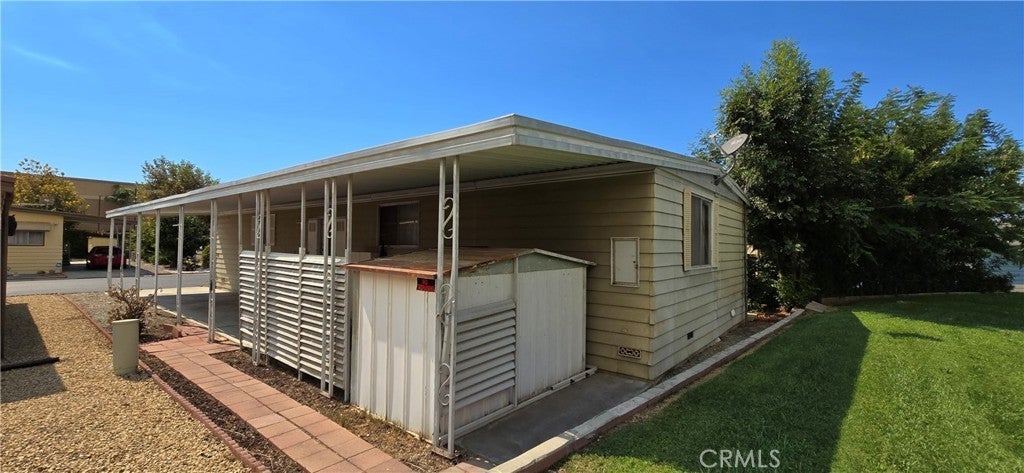 Spacious 2 bedroom, 2 bathroom mobile home in the highly desirable Riverside Country Club mobile home park! Open layout with new laminate flooring throughout most of the 1560 square feet of living space! Features include: Large living room, formal dining room with built in cabinet, spacious kitchen w/gas cooktop, fridge, built in table, and lots of cabinet space! There's also a Den with a bar area and fireplace too! The main bedroom has new laminate flooring, mirrored wardrobe, and a private bathroom 2 sinks & a bathtub! Nice size second bedroom next the 2nd bathroom which has a shower! Other features include indoor laundry with exit to carport, and a covered porch on the other side of the home. Large shed included too which is at the end of the driveway! Roof was recently resealed. Great location in the community with the home backing up to the community Clubhouse which features a gated pool spa, rec area, shuffleboard, horseshoe pit, billiard room, kitchen, and more! There's also a lot for parking RV/Trailers too. Contact park manager with any questions regarding rules/costs of parking RV's in this area.