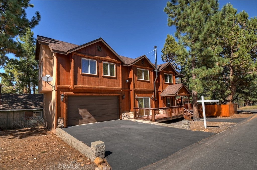 CUSTOM-BUILT 4 BEDROOM HOME WITH 2 CAR GARAGE. Nestled in the mountains, this custom-built home offers rustic elegance with modern comfort. Meticulously maintained by its original owner, the home features 4 spacious bedrooms, 2.5 baths, and an open floor plan ideal for entertaining. The master bedroom features its own private deck, wood stove fireplace and walk-in closet. The kitchen is open to living room and boasts stainless steel appliances, and a cozy pot belly stove fireplace adding warmth and charm. Enjoy endless hot water with a tankless water heater and peace of mind with a built-in alarm system. The oversized 2-car attached garage, and dual driveways provide ample parking. Relax or entertain in the wood privacy-fenced backyard—your perfect mountain retreat awaits!