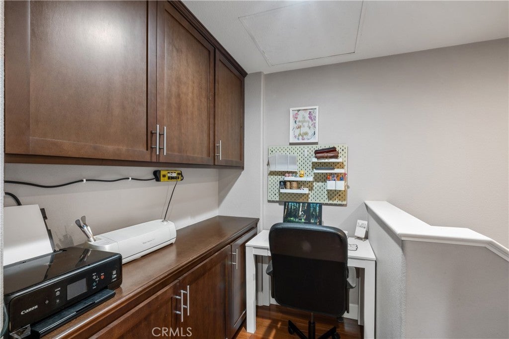 Step into the epitome of exclusive, gated Dos Lagos living with this beautifully upgraded 2 bedroom, 2.5 bath condo at 4429 Owens Dr, Unit #105. From the moment you enter, you’ll notice the elevated finishes—rich hardwood floors, plantation shutters, crown molding, upgraded lighting, built-in speaker system and custom wood built-ins that create a refined, high-end feel throughout the home. The modern kitchen is designed for both everyday use and entertaining, featuring shaker cabinetry, stylish backsplash, a spacious island with wine cooler, stainless steel appliances including a built-in refrigerator, and granite countertops. Elegant arches flow through the home leading you to the spacious living areas and private indoor laundry room. The primary suite feels like a Mediterranean spa retreat—complete with soaking tub, oversized walk-in shower with rainhead, extensive cabinetry, granite countertops and tasteful tile floors. The secondary bedroom has its own en-suite bath and a charming Rapunzel-style balcony. The attached 2-car garage is just as polished with epoxy flooring and an EV charger. This unit is one of the closest to the community pool with a convenient gate just steps away. The gated community itself offers a resort-style pool, clubhouse, and expansive park space. Living in Dos Lagos means enjoying so much more than a home — it’s a full lifestyle. You have the golf course right across the street and a vibrant shopping center featuring restaurants, movie theater, amphitheater events, Trader Joe’s, specialty markets like Claro’s Italian Market, art stores, boutiques, gyms, nail & hair salons, chess classes, jiu-jitsu, pediatric therapy, lakeside walking paths with waterfalls and ducks, and so much more — all just a short stroll away. Located in a top-rated school district with easy freeway access, this is truly one of the best places to live in Corona. Don’t miss your chance to make this incredible home and lifestyle yours — schedule your private tour today before it’s gone!