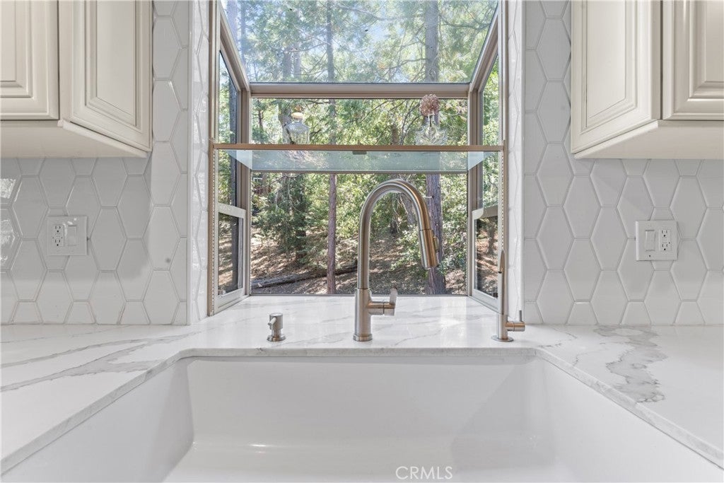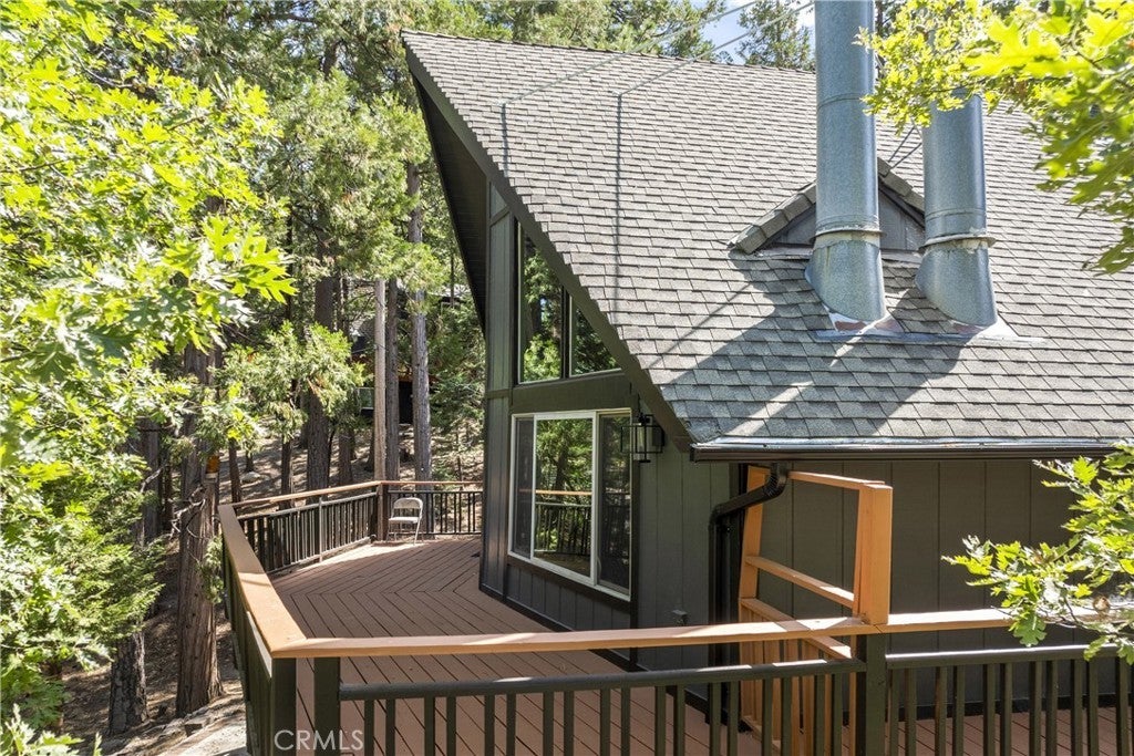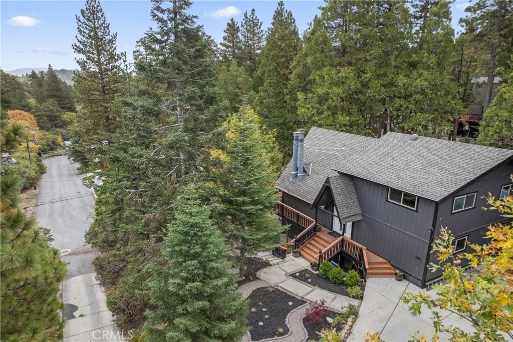 Phenomenal Prow Style home located directly across from the forest and trails, with easy access to the golf course just down the street. This property also includes Lake Rights, allowing full use of beautiful Lake Arrowhead. Over $300,000 in upgrades, including a recently remodeled kitchen with high-end professional-style appliances, slab quartz countertops, and a garden bay window overlooking mature evergreens and oaks on your own land. The home features 4 bedrooms, 3 bathrooms, an office, and a den/family room with a second fireplace—ideal for gatherings or quiet relaxation. The main-level “Great Room” highlights natural wood open-beamed ceilings and a classic “retro rock” fireplace that adds warmth and character. Additional updates include remodeled bathrooms, new interior and exterior paint, newer lower patio/deck, fenced yard, upgraded flooring, newer forced air system, "Leaf Guard Style" rain gutters and system improvements. Both the new Flagship whole house water filtration system and an additional Reverse Osmosis system at the sink ensure the best of the best for your water supply. Both guys and gals can relax in the "She-Shed" while the guys have their own storage shed, too. Located in a peaceful, forested setting with nearby recreation and golf access, this home offers both comfort and convenience in one of Lake Arrowhead’s most desirable areas.