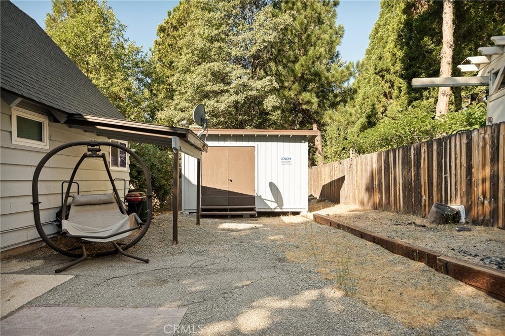 Adorable cabin perched atop a spacious corner lot. Cute and clean, walk in to rustic vaulted ceilings and natural light in the living room. Main level has two bedrooms/bathroom and upstairs is a generous sized 3rd bedroom/loft area. Seller has updated kitchen with quartz countertop and backsplash, as well as dual paned windows, a tankless water heater and a water shut off valve. There is plenty of parking in front as well as a fenced yard, potential for FLAT RV parking, and a storage shed and washer/dryer inside. From the front porch take in the trees and peekaboo view of the valley below. Come spring time, lilacs and daffodils abound. Located in a great location for either your part time getaway or a full time move to the mountains. Coming furnished per sellers inventory list.