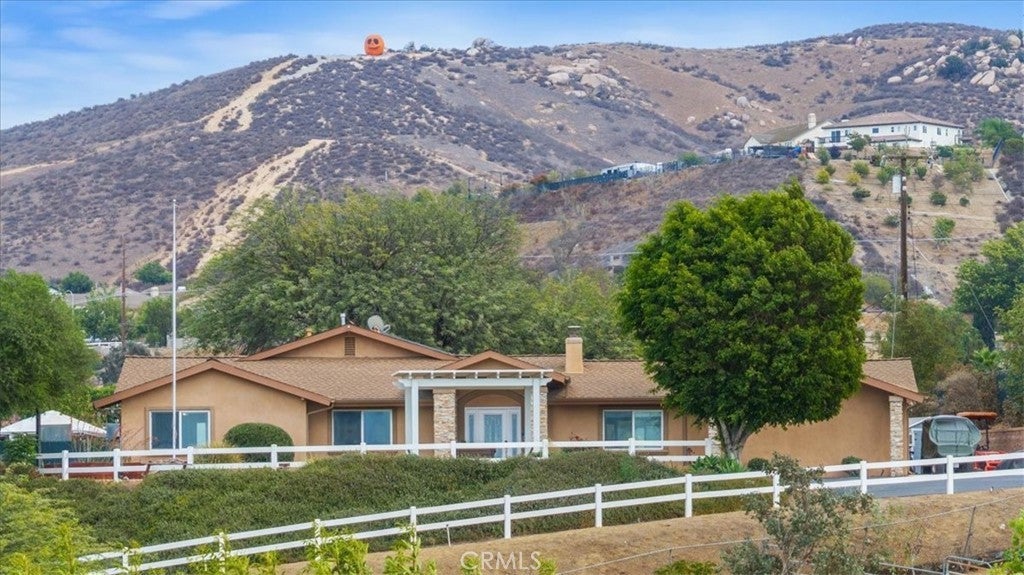 SPECTACULAR VIEW HOME & HORSE PROPERTY on 1.72 Acres! Do you want a PANORAMIC VIEW with morning SUNRISES and nightly SUNSETS? This one has it. This gorgeous home overlooks the entire Norco Valley. The back of the property has views of the Pumpkin Rock hiking trail and Ingalls Equestrian Center where we hold rodeos, fairs and all sorts of fun community events. Sit back in the front yard and enjoy your morning coffee or evening drink, relaxing and enjoying the views and the firepit watching DAILY SUNRISES and NIGHTLY SUNSETS. 32 PAID-OFF solar panels to help keep your electricity bill low. This home has curb-appeal and charm as soon as you drive up, you will gaze at the view and enjoy the nice breeze on top of this hilltop home. This home has wonderful features such as the formal dining room (or use as a living room) where you can serve your guests and enjoy gazing from the large window with the sunrise and sunset views. The kitchen has been remodeled and replaced with stainless steel appliances, newer cabinets and a kitchen island overlooking your family room. The stove/oven is a convection oven and self cleaning oven. The living room has high ceilings and the entire house has recessed lighting through-out. The primary bedroom has a large sitting area or could also be used as an office or nursery. The oversized walk in closet has built-in shelving you will fall in love with. The primary bathroom has a jetted soaking tub, perfect to relax after a long days work. Huge walk in shower and separate double vanities. The seller has replaced all plumbing with copper plumbing. The main house features 2,236 sqft of living space with a 260 sqft enclosed patio. The garage/storage area is approximately 704 sqft and would be a perfect space to add a Junior Suite/ADU. The exterior has a cute river rock water fall to listen to & relax by. There are multiple areas where you can have all your other animals such as horse, goats, cows, chickens, sheep and anything you wished you could own. There are multiple sheds for feed storage and personal storage that are included. Raised flowerbeds perfect for you to grow all your own fruits and vegetables. There is a drip system to the plants and planters. You will own this beautiful home and the whole hill and be secluded from neighbors with peace. The long drive way up adds for a lot of privacy. This is a one of a kind property you must have! (Chicken coops have been removed updated photos coming soon)