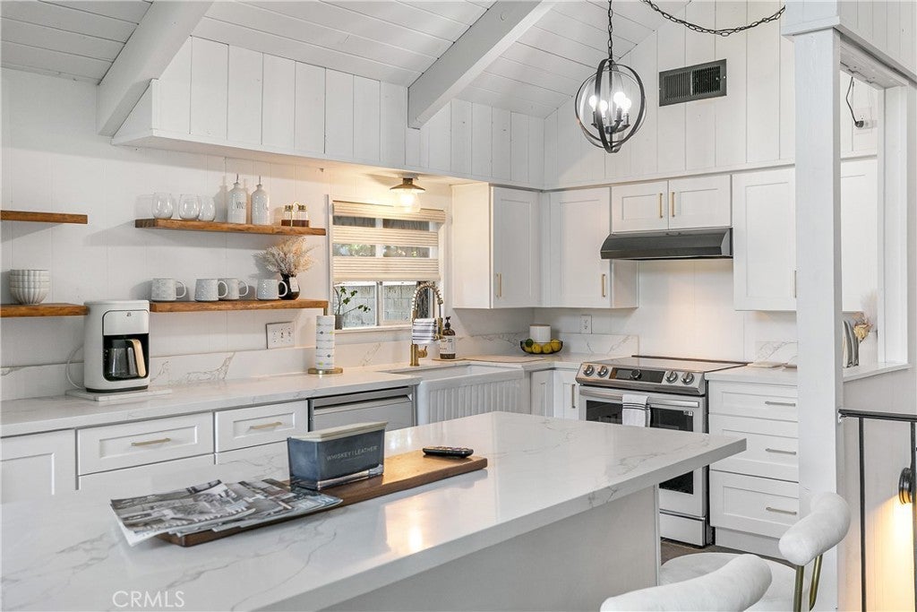 Picture walking into a stunning 1960s cabin with jaw-droppingly high vaulted ceilings, all recently painted a beautiful bright White and, as you slowly move further into the living area, you're hit with the most breathtaking (and totally unobstructed) views of the forest framed to absolute perfection by the classic A Frame windows that tells you instantly: you're in the mountains! Add a fully remodeled kitchen to all that featuring exquisite white quartz countertops with gorgeous flecks of gold that catch your eye, floating shelves and all high-end appliances, a wood burning stove to gather round in winter with your hot chocolate and extra marshmallows which serves as the true "heart" of the home, a surprisingly gentle backyard lot on which to sled with friends and family and true peace and quiet day in, day out? Well, welcome home to "The White Rose of Rose Lane" - your gorgeous Twin Peaks retreat which could be an ideal starter home or a fabulous vacation spot for when you just need to get away from the hustle and bustle of city life and fully recharge with zero distractions. Living here feels as if you're literally sharing the forest with all the wonderful wildlife and nature and there's way more to this than it simply being a pleasant experience. Did you know, for example, that listening to birdsong daily can actually help to calm you by activating the parasympathetic nervous system? After all, there's a very good reason many, many people move to the mountains! Come and check out this unique home which has so much character, charm and offers outstanding value for money. You'll fall in love!