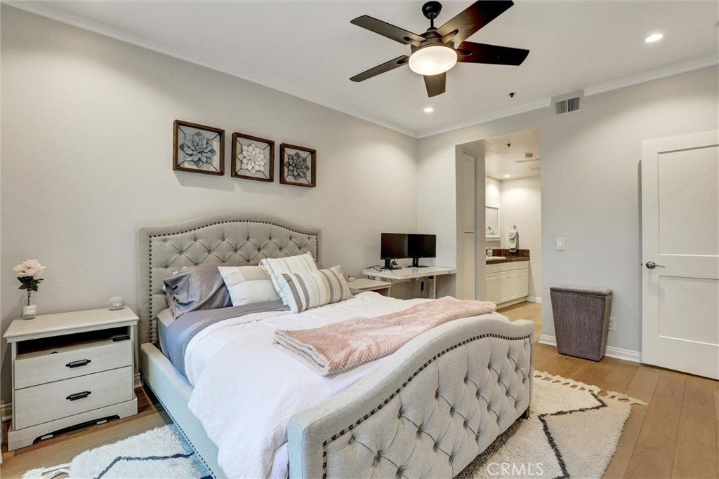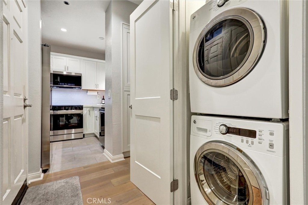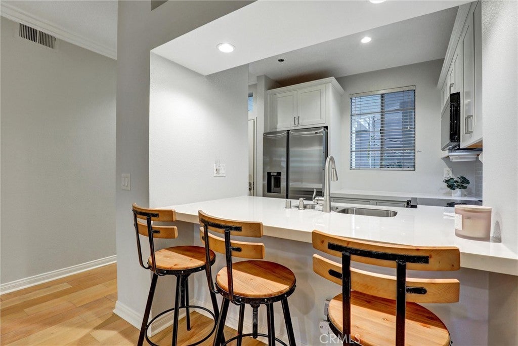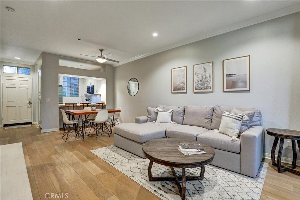 Beautifully Upgraded 1-Bedroom Condo in Seabridge. Don’t miss this rare opportunity to own a beautifully updated ground-floor 1-bedroom condo in the highly desirable Seabridge Community, just 1 mile from the beach! Step into a bright and welcoming space featuring a fully remodeled kitchen with sleek stainless-steel appliances, quartz countertops, and generous cabinetry. The home showcases elegant wood flooring, crown molding, recessed lighting throughout, and the added convenience of in-unit laundry. The spacious primary bedroom offers a custom-designed walk-in closet and direct access to one of two large private patios through sliding glass doors. The open concept living room also opens to the outdoor space, ideal for relaxing or entertaining. The upgraded bathroom is finished with granite counters and modern fixtures. Enjoy the convenience of two dedicated subterranean parking spots and access to premium community amenities, including two pools, two spas, a clubhouse with a full kitchen for gatherings, a sauna, four tennis courts, bike storage, and serene pathways lined with trees, waterfalls, and ponds. Seabridge is a 24-hour guard-gated community located just minutes from Pacific City, top-rated schools, shopping, dining, and the stunning Huntington Beach coastline. This is coastal living at its best—schedule your private showing today!