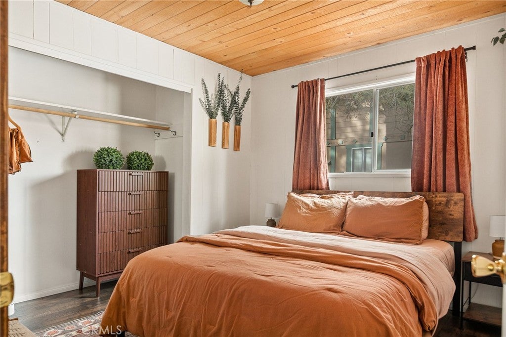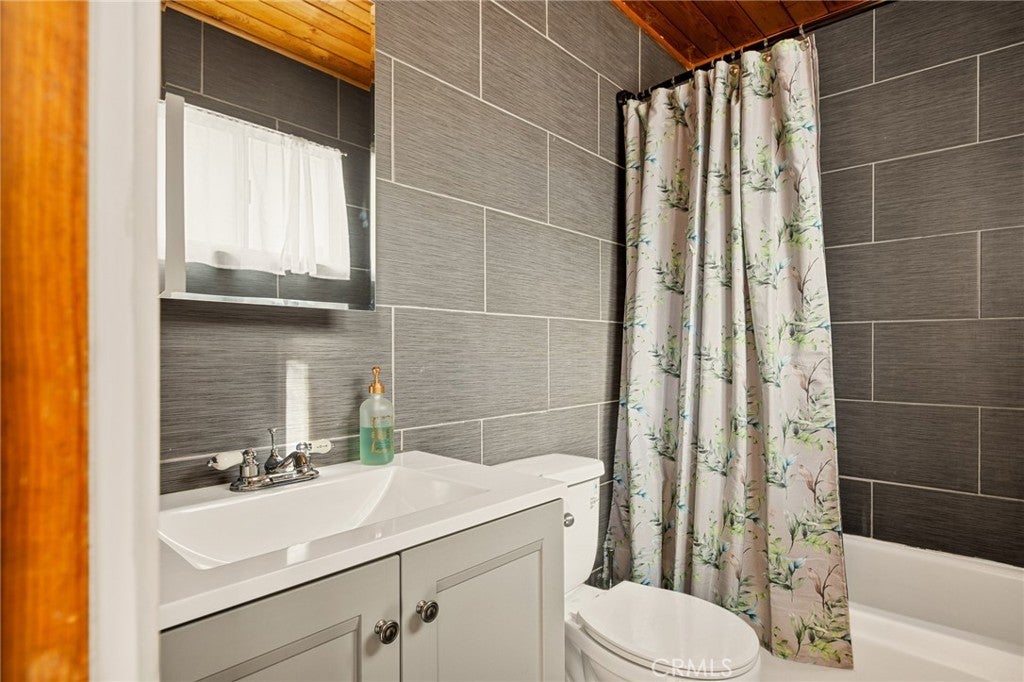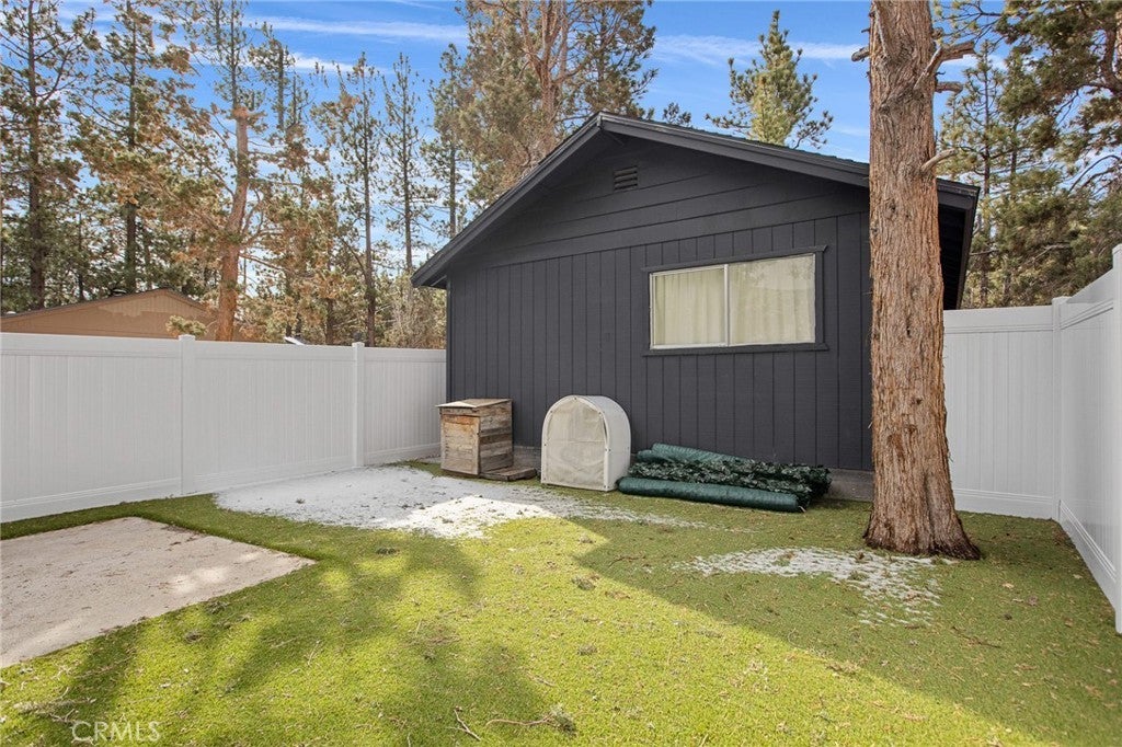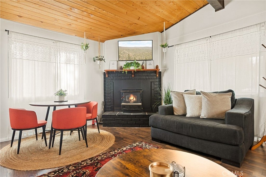 This stylish mid-century modern cabin blends retro charm with modern upgrades, making it the perfect short-term rental or private getaway in Big Bear. Nestled on a quiet street with serene mountain views, this home offers the ideal mix of relaxation and adventure. The open-concept living space features vaulted ceilings, a cozy brick fireplace, and large windows that flood the home with natural light and frame picturesque mountain scenery. The fully renovated kitchen and bathroom include brand-new plumbing, modern appliances, and a charming breakfast bar—perfect for entertaining. Both spacious bedrooms are thoughtfully designed with stylish mid-century furnishings, while the shared retro-inspired bathroom is conveniently located nearby. Outside, the newly enclosed yard offers a brand-new fence, freshly laid turf, and a concrete pad ready for a hot tub or fire pit, making it an ideal space for relaxation under the stars. Recent upgrades include new heater, new flooring, fresh interior and exterior paint, new locks, new exterior doors, and a roof in good condition. Whether you're looking for a profitable investment or a peaceful mountain retreat, this turnkey Big Bear cabin is ready for you!