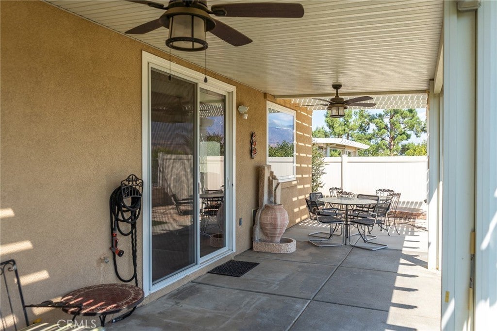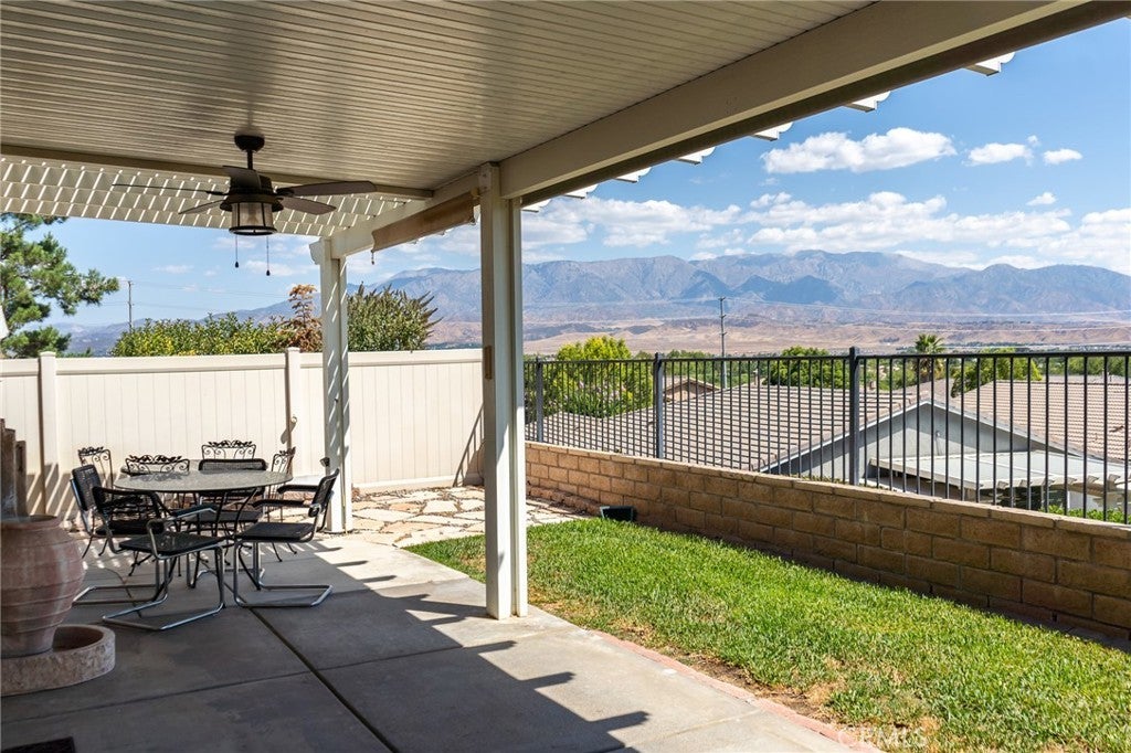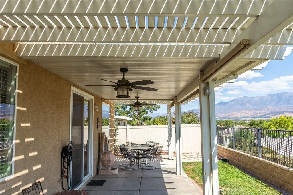 Stunning Heritage III Home with Unmatched Privacy, Panoramic Views & Resort-Style Amenities! Welcome to one of the most desirable homes in the prestigious 55+ guard-gated community of Four Seasons—Beaumont. Perched at the tip of a scenic cul-de-sac and bordered by serene walking trails instead of neighboring homes at the end of the cul-de-sac, this immaculate residence offers the perfect blend of privacy, luxury, and breathtaking mountain views. Featuring approximately 2,076 sq. ft., this thoughtfully designed single-story home includes 2 spacious bedrooms, 2 full baths, and a versatile den/office with double door entry. The open-concept layout flows seamlessly from the chef’s kitchen—complete with granite countertops, upgraded cabinetry, stainless steel appliances, and a large island—into the expansive great room and formal dining area. Custom enlarged picture windows frame the alpine vistas, while the gas fireplace and built-in entertainment center add warmth and elegance. Interior upgrades abound: 20" ceramic tile flooring, crown molding throughout, recessed lighting, ceiling fans, wide baseboards, and coordinated custom paint. The luxurious master suite boasts a remodeled bathroom with a jetted tub, walk-in shower, double vanity with makeup counter, and generous his-and-hers closets. Step outside to a beautifully landscaped, drought-tolerant yard designed for easy upkeep and maximum enjoyment of the surrounding natural beauty. The Alumawood patio cover provides shade for relaxing or entertaining while soaking in the panoramic views. ????? **Location Highlights:** - Direct access to scenic walking trails—no neighbors to the right! - Easy freeway access and close proximity to shopping, dining, casinos, Cabazon Outlets, and Palm Springs ?? **Community Amenities Include:** - The Lodge clubhouse with bistro, movie theater, pool hall, and beauty salon/spa - Three heated pools and spas, including “The Summit” indoor aquatic center - Tennis, pickleball, basketball, bocce ball courts - State-of-the-art gym and hiking trails - Daily and weekly social events that make every day feel like a vacation With a location that offers both tranquility and convenience, this home is truly one-of-a-kind. Whether you're entertaining guests or enjoying a quiet evening surrounded by nature, this property delivers the lifestyle you've been dreaming of. Don’t miss your opportunity to own this exceptional home—schedule your private tour today!