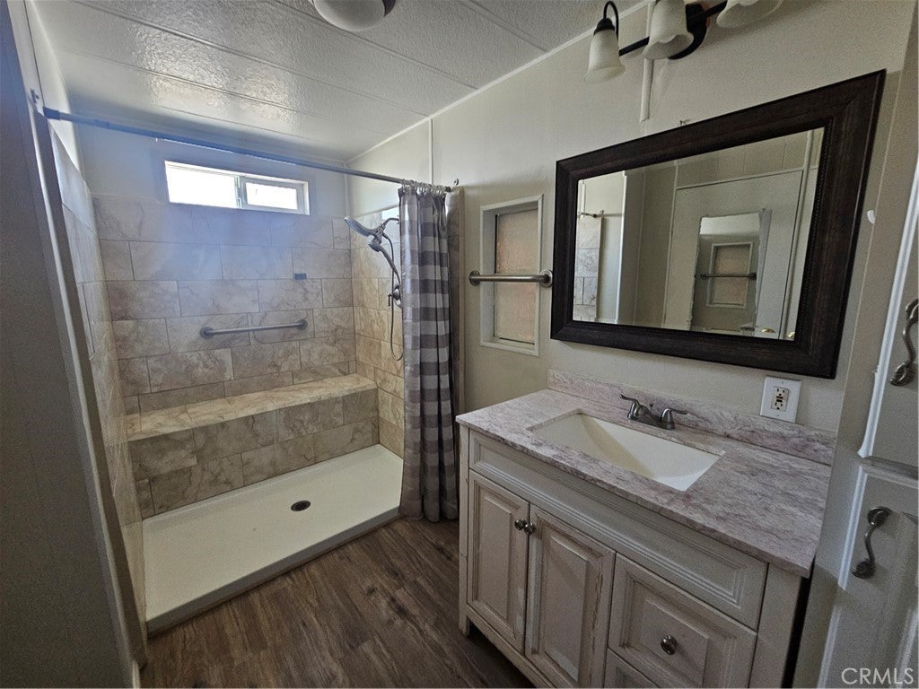 BEAUTIFUL UPGRADES in this charming, spacious 2 bedroom/1.75 bath home located in one of San Jacinto's nicest +55 communities! All NEW paint inside and out, NEW laminate flooring throughout, NEW Primary bathroom with H-U-G-E walk-in tile shower, NEW lavy, sink and fixtures, separate dressing area and large walk-in closet. Laundry hook-ups inside, large bedrooms, dining room and ample sized living room. (Ser# A/B4949). This one is a "MUST SEE" before you buy anything else! FINANCING AVAILABLE!!
