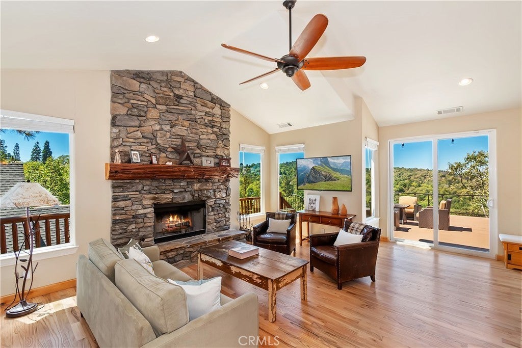 What You See: A seamless blend of indoor comfort and outdoor beauty—warm firelight, soft evening breezes, and a veranda where the sunset paints every gathering in gold. This is where dinner parties turn into unforgettable nights .This custom residence features high end finishes and design elements including soaring ceilings, large windows and glass doors allowing for an abundance of natural light, beautiful wood accents while encompassing over 3000 sq feet of gracious living space. The home exudes elegance and provides the ultimate venue for indoor/outdoor living and entertaining. As you enter the gated courtyard you feel a sense of beauty and warmth and are mesmerized by the stunning views. The primary suite comes with fireplace and has Primary bathroom with jetted tub and shower. Sliders leading to a balcony overlooking mountain and city light views. There are an additional 2 bedrooms and private office and large laundry room. The 3rd hosts a second family room with fireplace and bar, pool table , sauna and steam shower, additional room with fireplace. Large Deck with ping pong table and various gym equipment can be moved outside. Large oversized 2 car garage which enters into the kitchen. You are close to Tavern Bay and many hiking trails. The house is in Arrowhead Woods which gives you Lake Rights.