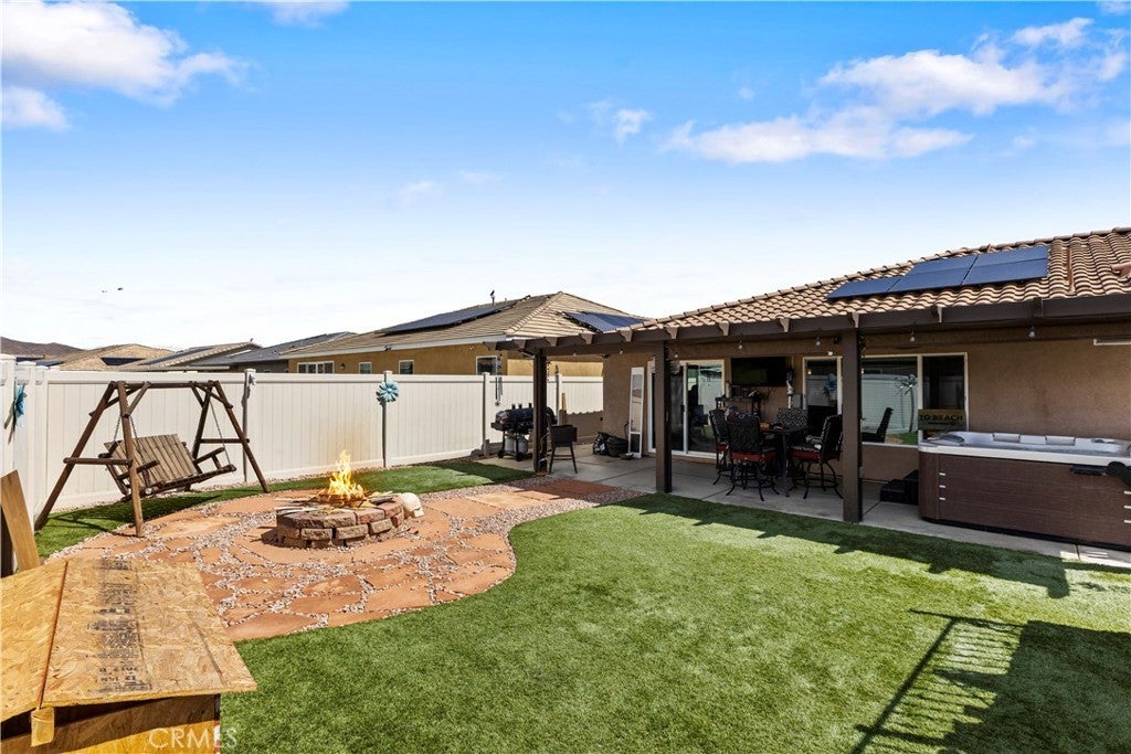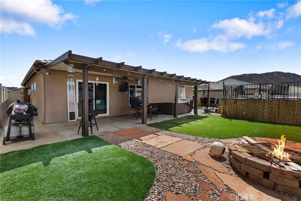 Gorgeously maintained and upgraded TURNKEY home on cul-de-sac. You're getting a spacious 3 bedroom, 2 bath home, including a 4th bonus entertainment den. The open floor plan is amazing in this well designed home. The gorgeous kitchen sports granite counter tops and a newly installed backsplash in gray hues. Fresh paint with new and upgraded flooring is located throughout the home. Outdoors is a Covered patio with ceiling fans for any weather entertaining. All the landscaping is done for you! In the front, low moisture drought tolerant plants and in the back beautifully designed with landscaping for minimal water use. Finished 2 car garage has room for your many toys and workshop. You will find Solar panels with an assumable lease, for low electric costs. Escape the hot weather in the above ground pool with great deck and in the cooler weather enjoy the custom Thermo Spa. Join the Suburban living in the rural community of Winchester. The lot offers plenty of room for entertaining, gardening, or simply enjoying the California lifestyle. Located near top-rated schools, shopping, dining, and just a short drive to Temecula wine country, this home is a wonderful opportunity to enjoy suburban living with easy access to everything the valley has to offer.