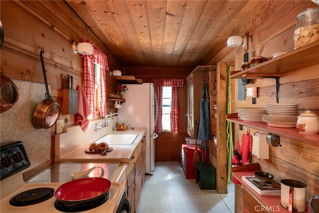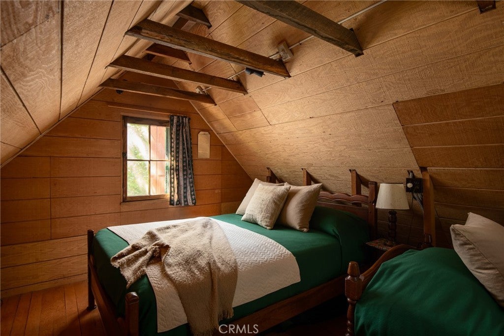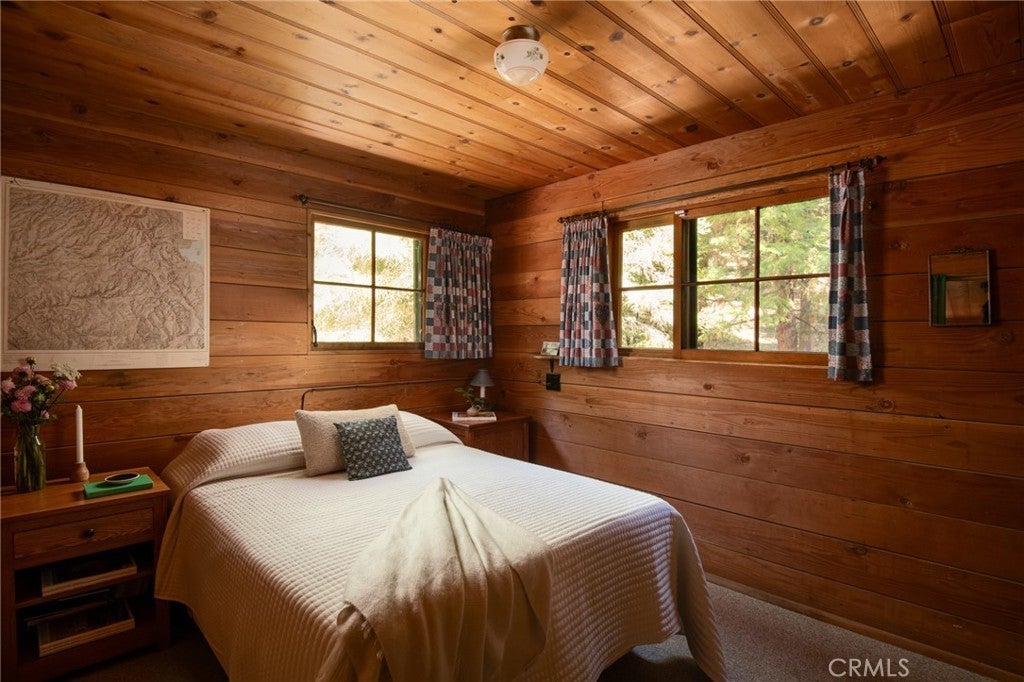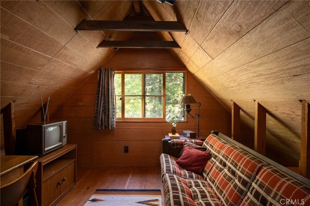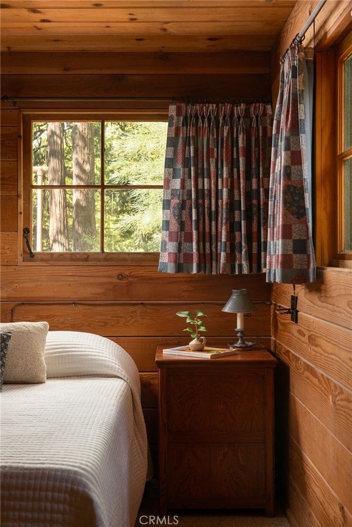 Welcome to 629 Lodge Lane, Twin Peaks, CA – On the market for the very first time, this enchanting 1941 cabin offers a rare opportunity to own a piece of local history. Nestled at the end of a quiet, no-through street on two forested parcels totaling 0.75 acres, the home is surrounded by towering sequoias, old-growth cedars, pines, graceful dogwoods, and a natural understory of native raspberry and strawberry plants. A seasonal creek runs just across the street, adding to the storybook setting. Inside, the cabin radiates warmth and authenticity, with beautifully preserved knotty pine walls, original wood-framed windows in pristine condition, and a wood-burning stove that anchors the living space. Thoughtful custom details, lovingly added over the decades, give each room character and charm. Light filters gently through the natural shade canopy, creating a peaceful, timeless atmosphere that transports you to another era. The floor plan includes one bedroom, a cozy sleeping loft, and one full bath, making it an ideal retreat. While steeped in history, the home has been carefully updated with modern comforts, including a durable metal roof, central heating and cooling, tankless water heater, and upgraded electrical and plumbing systems. Outside, privacy and tranquility abound. The property feels worlds away yet is conveniently located just down the road from the local farmers market and other Twin Peaks amenities. Whether as a full-time residence or a cherished mountain getaway, this home is a rare gem—impeccably maintained, rich in character, and truly one-of-a-kind.