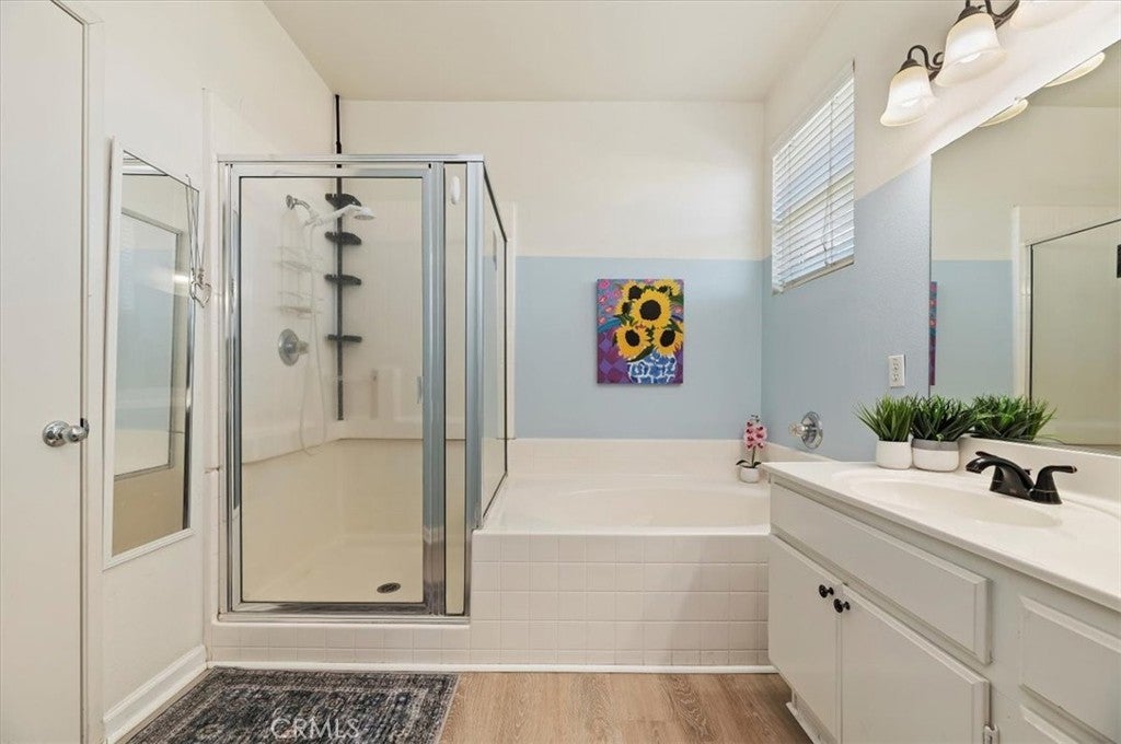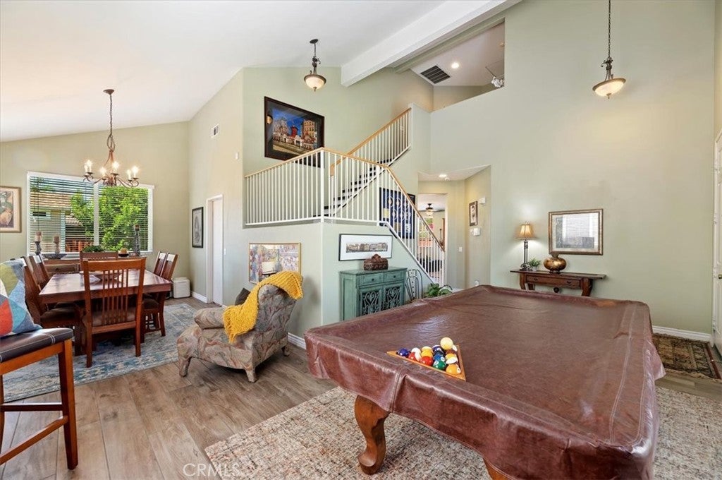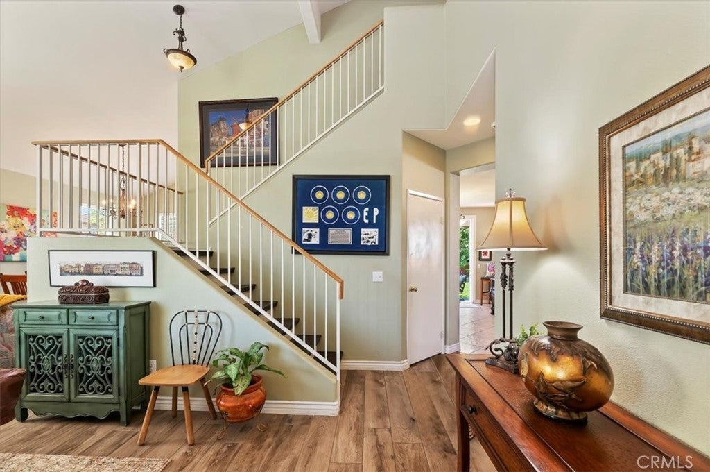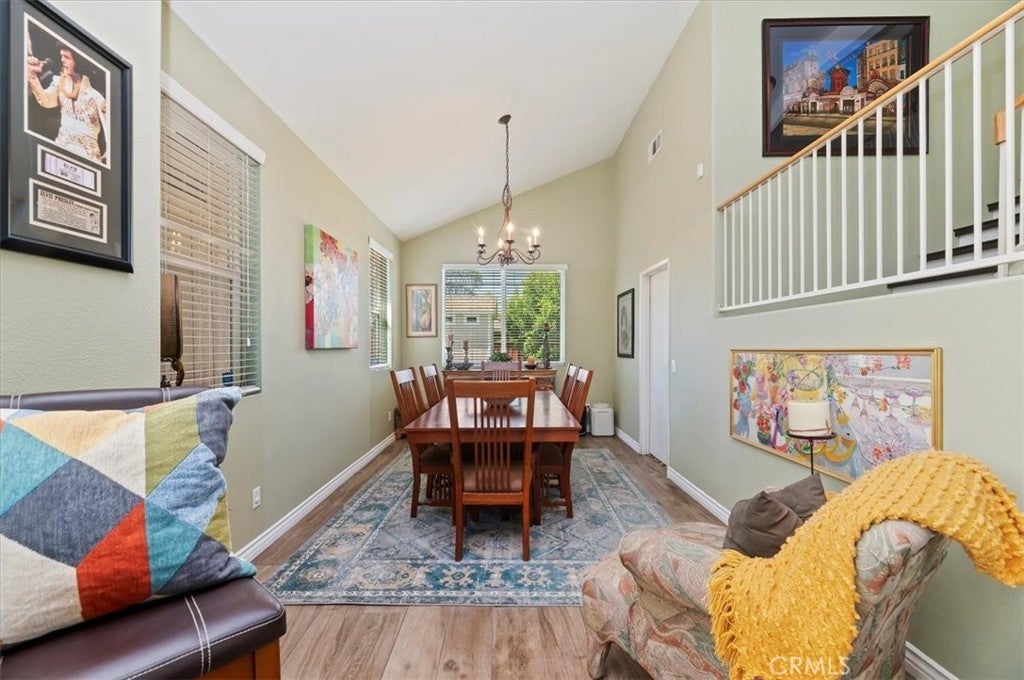Welcome to 533 Divine Way located in the Durango Community of San Jacinto. This home has been meticulously cared for and exudes pride of ownership throughout. Upon entry, you will immediately notice the nice high ceilings that lead into a formal living space that is currently being used as a game room. The downstairs floor also includes a bedroom, bathroom, laundry room, dining room, living room with fireplace that connects to the renovated kitchen and sliding glass doors that lead to the large backyard. Upstairs there are three additional bedrooms and two bathrooms. The kitchen has beautiful quartz countertops and island along with stainless steel appliances. The bathrooms all have granite countertops with tile floors. Both the primary bedroom and one other bedroom have large walk-in closets. The primary bedroom has a great balcony that shows off the wonderful views from the second story of the home. Take advantage of ample storage both inside the home and outside with two large storage sheds in the backyard. Both the front and back yards have been beautifully landscaped and include fruit trees such as lemon, cumquat, peach, quince, apple, orange, avocado, and fig. This home offers ease of maintenance with hard surfaced floors throughout. Located within walking distance to the community park with a playground and basketball courts, this is an ideal destination for a family. Just a short drive from the home, there are plenty of shops, restaurants, casinos, and a golf course.