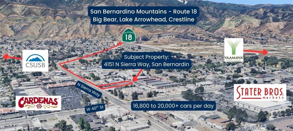 NEW PRICE!!! Restaurant building for sale or lease!! Previously Lucy's Mexican Restaurant, a popular place for locals and those traveling up to the mountains. Massive parking lot behind building. 42 parking spots including 2 handicap spots near entrance. Additional 10,725 sq. ft. parcel included in sale. Property has 18 booths that sit 4 to 6 people each. Would make a great breakfast, lunch or dinner place. Across from grocery store Cardenas, Stater Bros, TJ Maxx, Walgreens, Bank of America and other traffic drivers. Sierra Way is one of the main roads up to Lake Arrowhead and Big Bear. This restaurant is a short drive away from the San Manuel Casino as well. Property has a 16-foot-wide hood vent, dish washing station, walk-in cooler, plenty of storage, 2 bathrooms and more! All equipment there at the time of purchase stays or can be taken out. Property could use cosmetic updating on the inside, but otherwise it is ready for your signage and vision!
