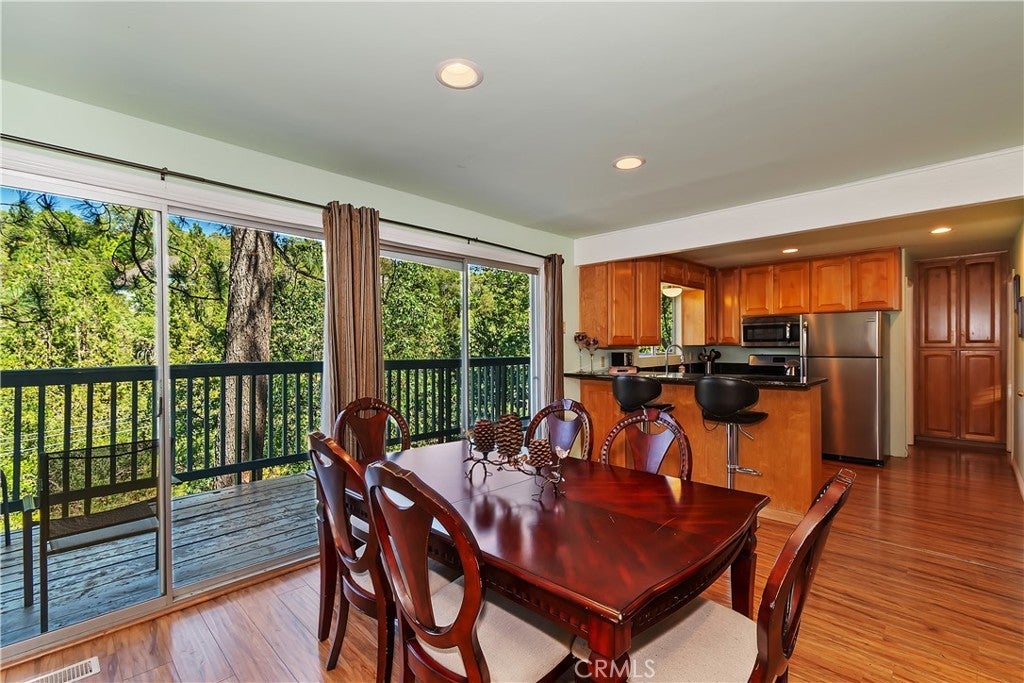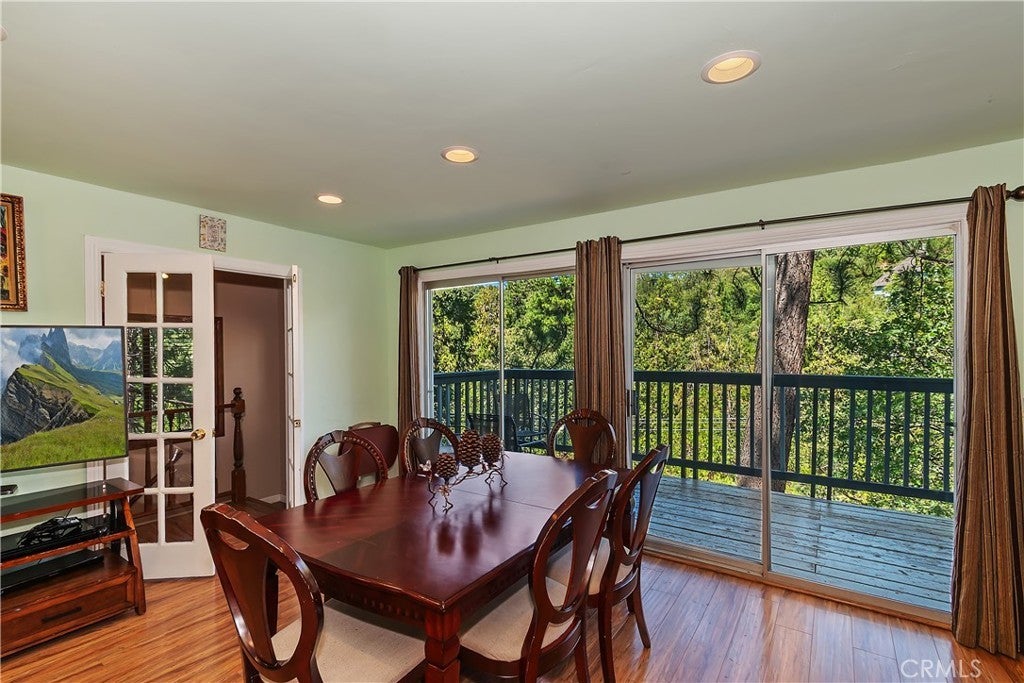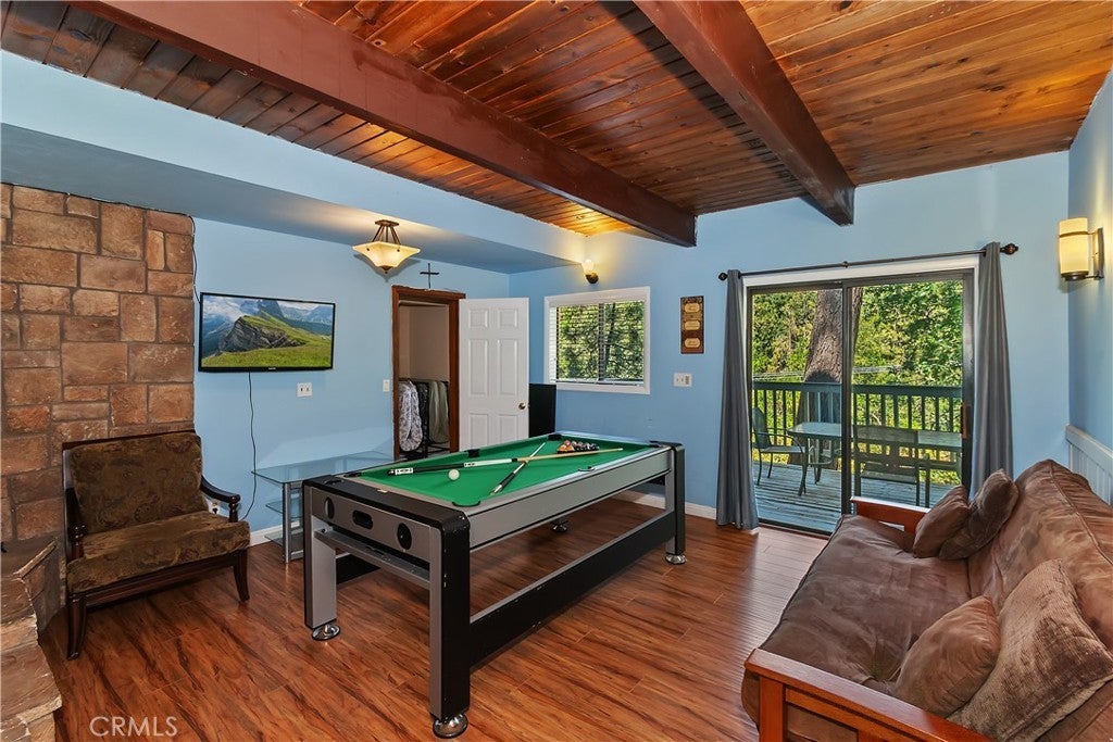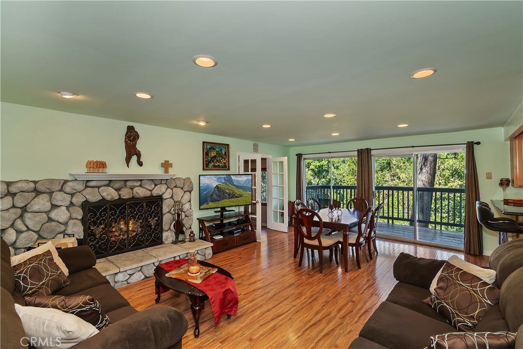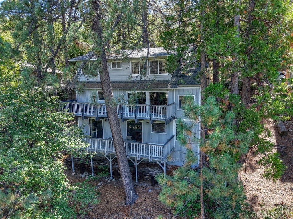 !!!Mountain Retreat with Lake Rights in Arrowhead Woods!!! Discover the perfect mountain getaway in the coveted Arrowhead Woods community, complete with exclusive lake rights that provide access to pristine Lake Arrowhead. This thoughtfully updated home offers the ideal blend of rustic charm and modern convenience across three well-designed levels. The main level welcomes you with a warm and inviting living room anchored by a striking river rock fireplace, creating the perfect gathering space for family and friends. The open flow continues into the dining area and breakfast bar, making entertaining effortless. The updated kitchen features a convenient pantry for all your storage needs, while a comfortable bedroom and full bathroom complete this level. Step out onto the back deck to soak in the serene forested views that provide privacy and tranquility. Ascend to the top level where two generously sized bedrooms await, each featuring impressive high beamed ceilings that add architectural interest and a sense of spaciousness. A full bathroom serves this level, ensuring comfort and convenience for family and guests alike. The versatile bottom level expands your living space with a fantastic game room complete with its own rock fireplace, perfect for cozy evenings or entertaining. A fourth bedroom and three-quarter bathroom provide additional accommodation options, while the practical laundry room keeps household tasks organized. Another deck access from this level extends your outdoor living opportunities. Parking is never a concern with two separate parking areas that provide easy access and convenience for multiple vehicles and guests. The location couldn't be more desirable, situated close to Lake Arrowhead Elementary School for families with children. You'll enjoy short, scenic drives to Blue Jay Village, Lake Arrowhead Village, and Cedar Glen, putting shopping, dining, and recreational activities within easy reach. This exceptional property combines the best of mountain living with modern updates and unbeatable lake access, making it an ideal primary residence, vacation home, or investment property in one of the area's most sought-after communities.