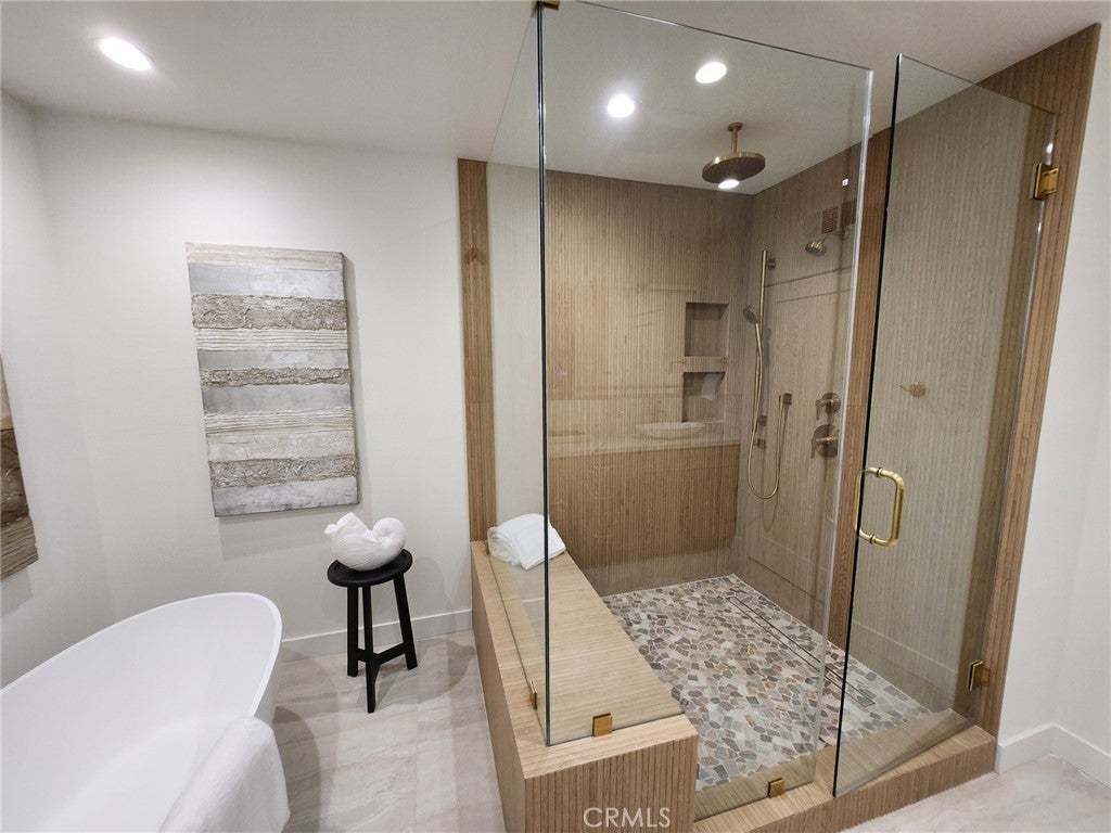 Welcome to this stunning, fully renovated 5-star townhome in the heart of Brentwood — where luxury living meets refined comfort. Boasting 3 bedrooms and 3 pristine bathrooms, every inch of this home has been meticulously upgraded to the highest standard. Enjoy the difference of true Townhome living with no neighbor above or below & easy, convenient access from your private parking to the very close proximity of your front door. Experience luxury living in this 3 bed, 3 bath townhome (1 Bed & 1 Bath downstairs) designed with impeccable detail, this 5-star residence features an open floor plan, hardwood floors, and designer finishes throughout. The gourmet kitchen boasts custom cabinetry, quartz counters with full backsplash and top-of-the-line stainless appliances. A spacious living area with cozy fireplace & elegant wet bar complete with beverage fridge, flows seamlessly between dining room & kitchen, ideal for entertaining. The primary suite offers a truly breathtaking spa-like bath with dual vanities, soaking tub, and oversized glass shower complete with bench & rain shower head! Secondary bedrooms are generous with beautifully updated baths, bedroom 2 upstairs has private entrance from upper level, great for guests. Additional highlights include inside laundry, brand new central AC, brand new vinyl windows throughout, recessed lighting, designer Kohler fixtures in kitchen and baths & pot filler above the kitchen range! No detail was missed and no expense spared in this high end luxury renovation! All this plus located on a quiet street near Brentwood’s finest shops, dining, schools parks & close by Santa Monica beach — this is refined California living at its best. Seller willing to pay 1st year HOA fees with acceptable offer.