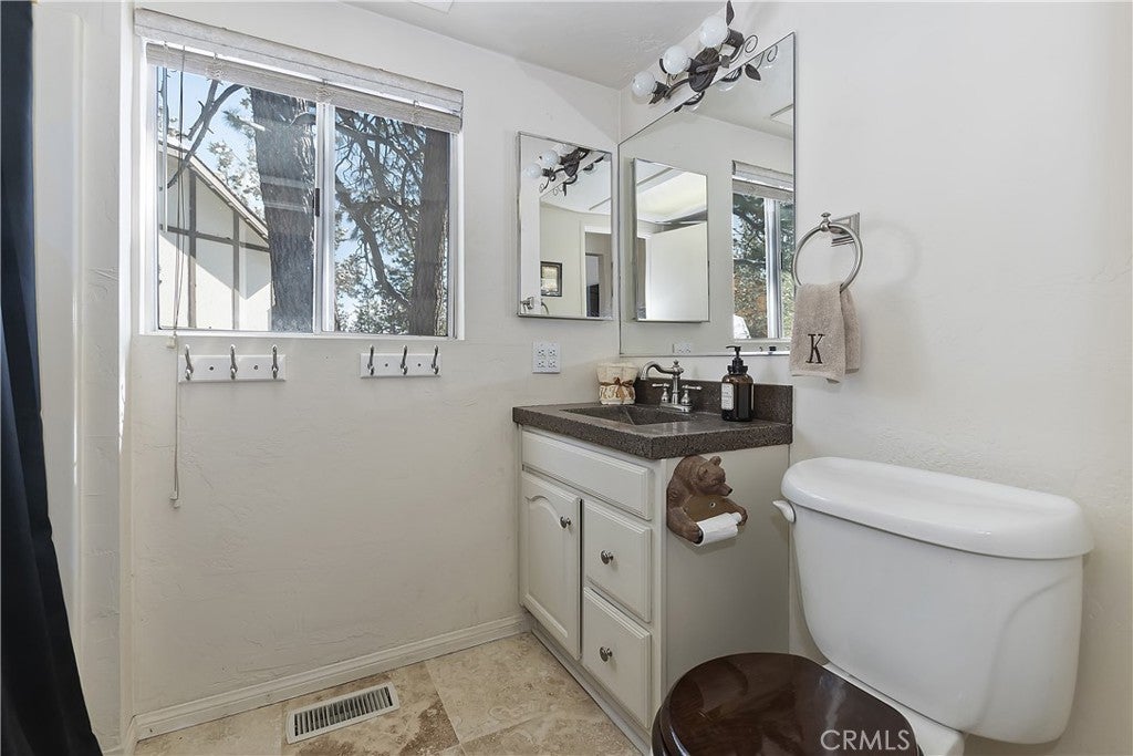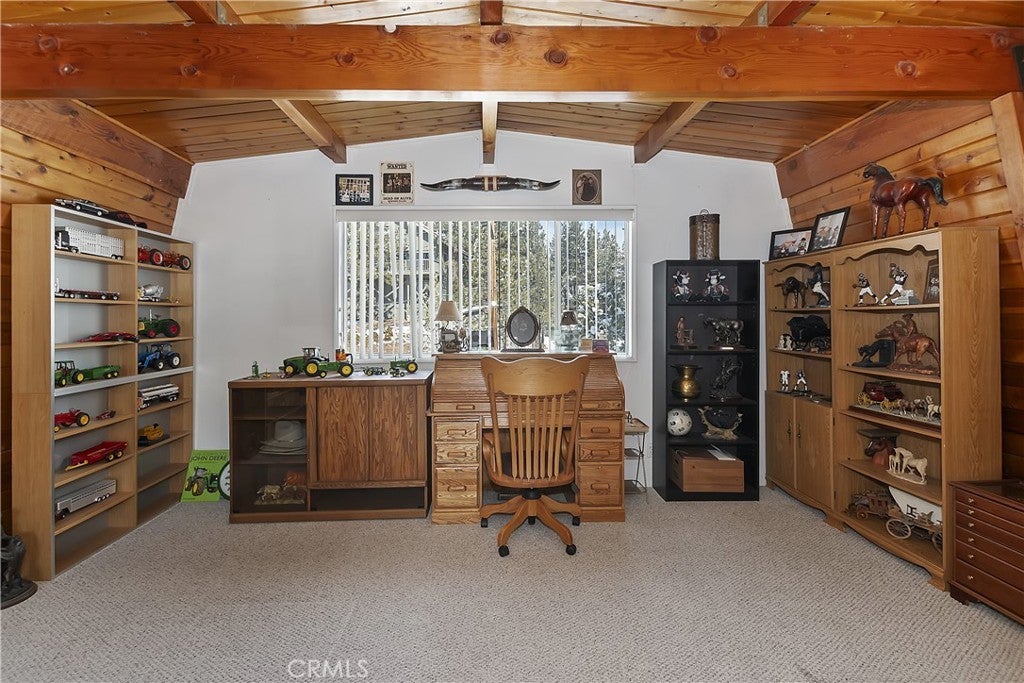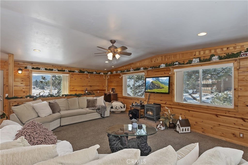Welcome to this 3-bedroom, 2-bathroom home located in the desirable Whispering Forest neighborhood. Offering 2,848 sq ft of living space on a 10,800 sq ft lot, this property provides comfort, flexibility, and views. The main living area is filled with natural light and connects seamlessly to the kitchen, dining area, and a sunken seating area with a fireplace. Multiple decks provide outdoor living space with ski slope views. The main level includes two bedrooms, while the upper-level primary suite offers privacy and includes an attached office. In addition, three bonus rooms allow for flexible use such as guest space, gym, or additional work areas. A two-car attached garage adds convenience and storage. With its versatile layout and peaceful setting, this home is an excellent opportunity in Big Bear.