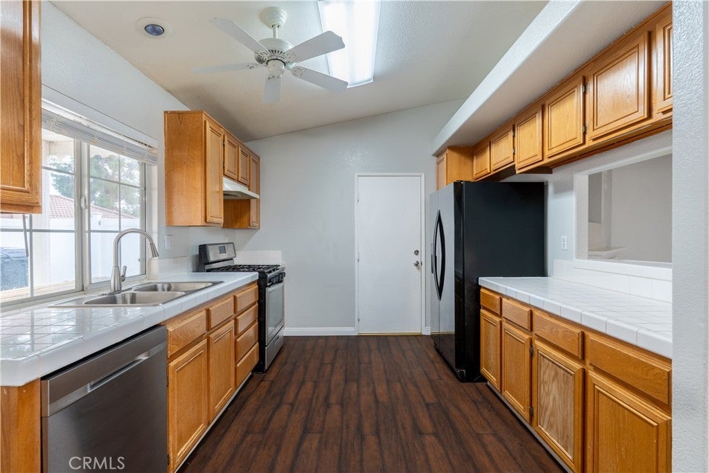 Welcome home to this charming single-story 3 bed, 2 bath residence ideally situated in a quiet cul-de-sac within the Rose Ranch community. Step inside to vaulted ceilings, a cozy fireplace, and updated flooring throughout. The galley kitchen with pass-through bar connects seamlessly to the living space, perfect for casual entertaining. Slide open the door from the master suite to your private backyard retreat, complete with a covered patio and low-maintenance landscaping. With a spacious lot, two-car garage, and the possibility for RV access, this home checks all the boxes. Just minutes from schools, shopping and freeways — your next chapter starts here!