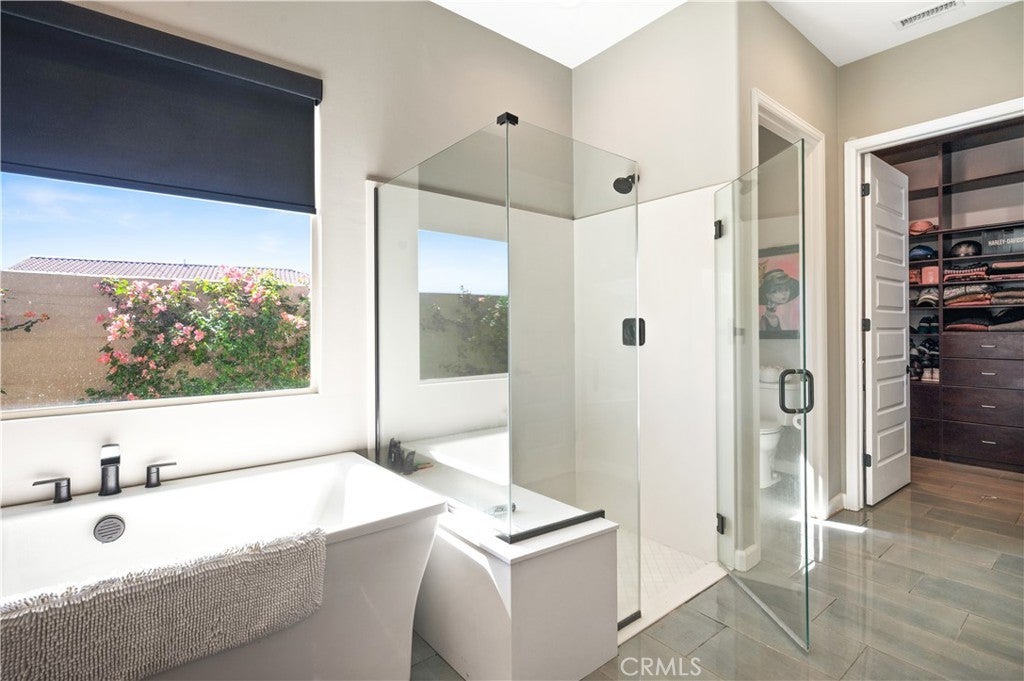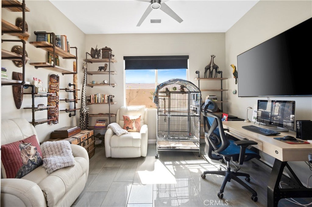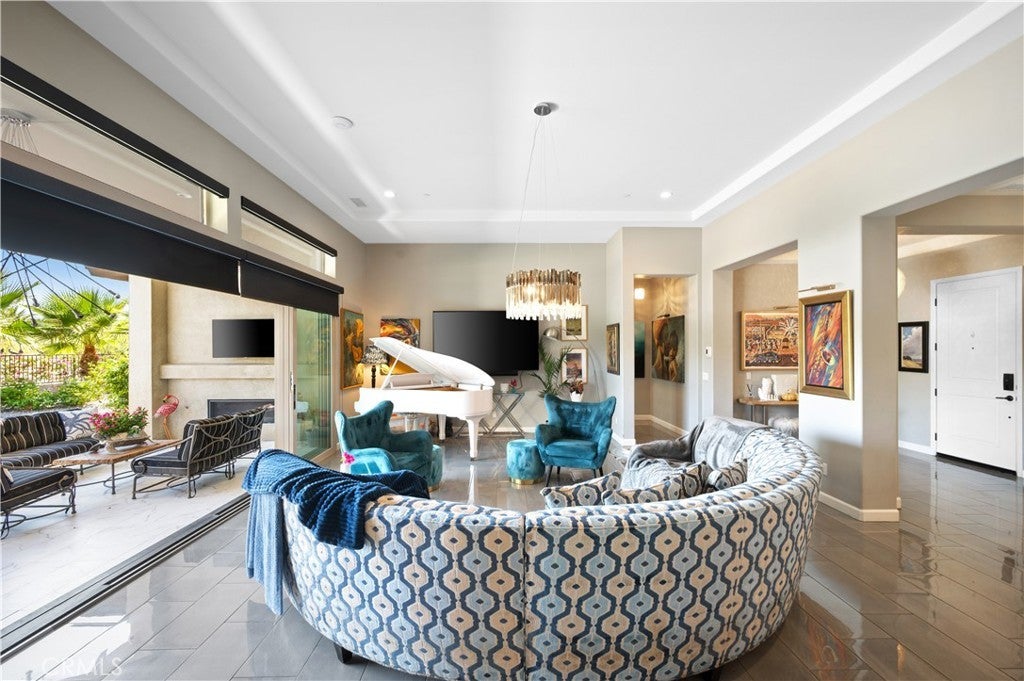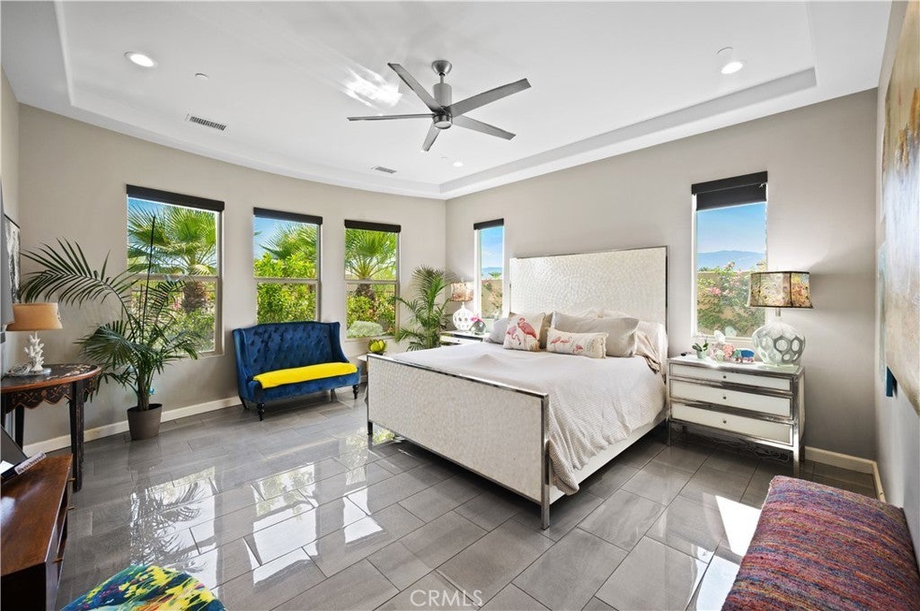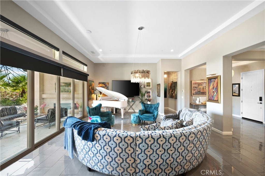 Stunning Contemporary Home in Rancho Mirage – Located in the Del Webb 55+ Community This beautifully designed single-story residence combines modern elegance with comfortable desert living, offering one of the largest floor plans and lots in the community. Soaring ceilings, sleek tile flooring, and abundant natural light create a bright and sophisticated atmosphere throughout. The solar panels are fully paid off, providing substantial saving on electricity bills. The gourmet kitchen is appointed with fully upgraded custom cabinetry, a waterfall-edge granite island, and premium stainless steel appliances—perfect for both everyday living and entertaining. An extended dining area provides additional space for gatherings, while the expansive great room features a designer fireplace, stylish expensive lighting, and seamless indoor-outdoor flow through sliding glass doors to the covered patio and landscaped backyard. The luxurious primary suite offers a serene retreat with a spa-like bath, dual vanities, a custom build walk-in closet, and a bay window that enhances both light and space. The second bedroom can function as a casita, and another additional rooms provide flexibility for guests or a home office. it is possible to bring the house to have 3 bedrooms. A rare three-car garage, compared to the standard two-car design in most homes here, adds valuable convenience and storage. Low-maintenance desert landscaping completes this exceptional property. Located within the sought-after Del Webb Rancho Mirage 55+ community, residents enjoy world-class amenities including a resort-style clubhouse, fitness center, multiple pools and spas, tennis and pickleball courts, walking and biking trails, and a full calendar of social activities and events. This gated community offers not just a home, but a vibrant desert lifestyle.