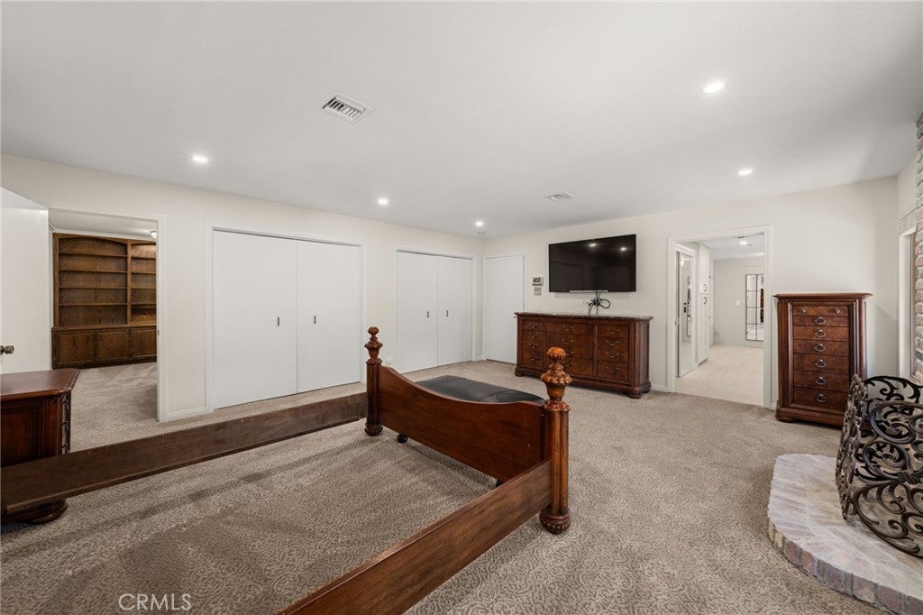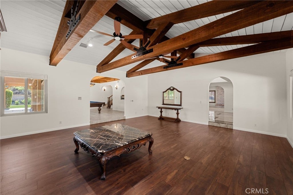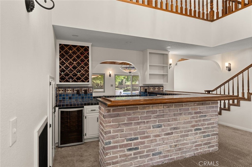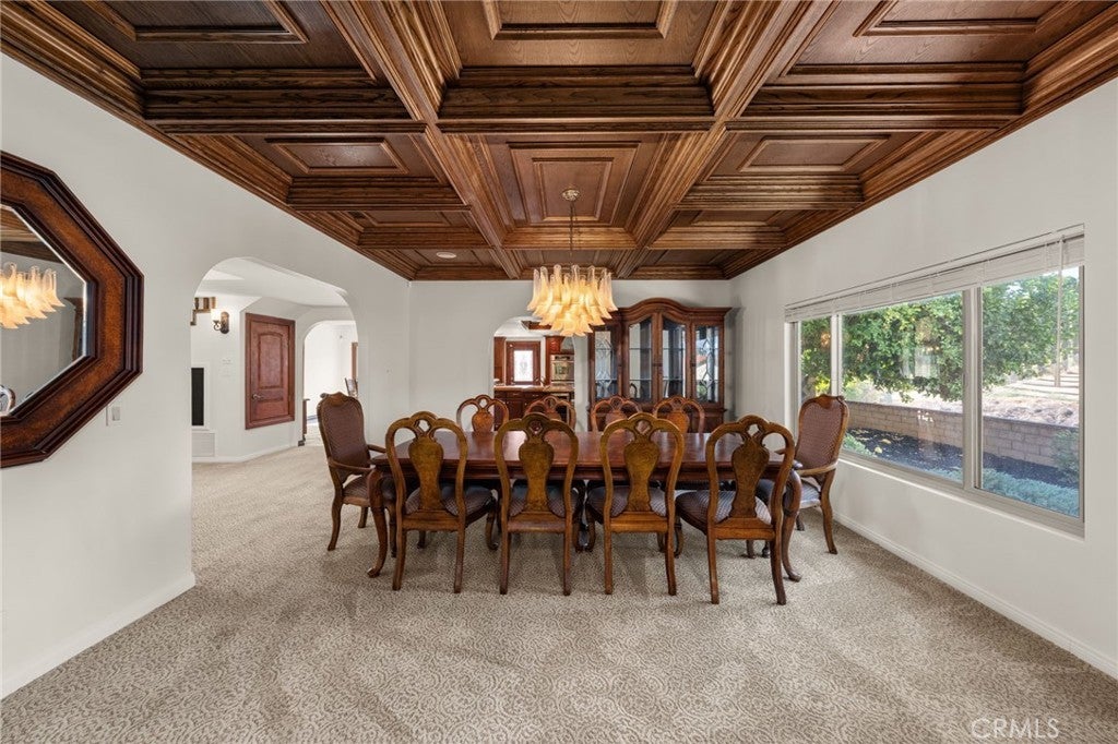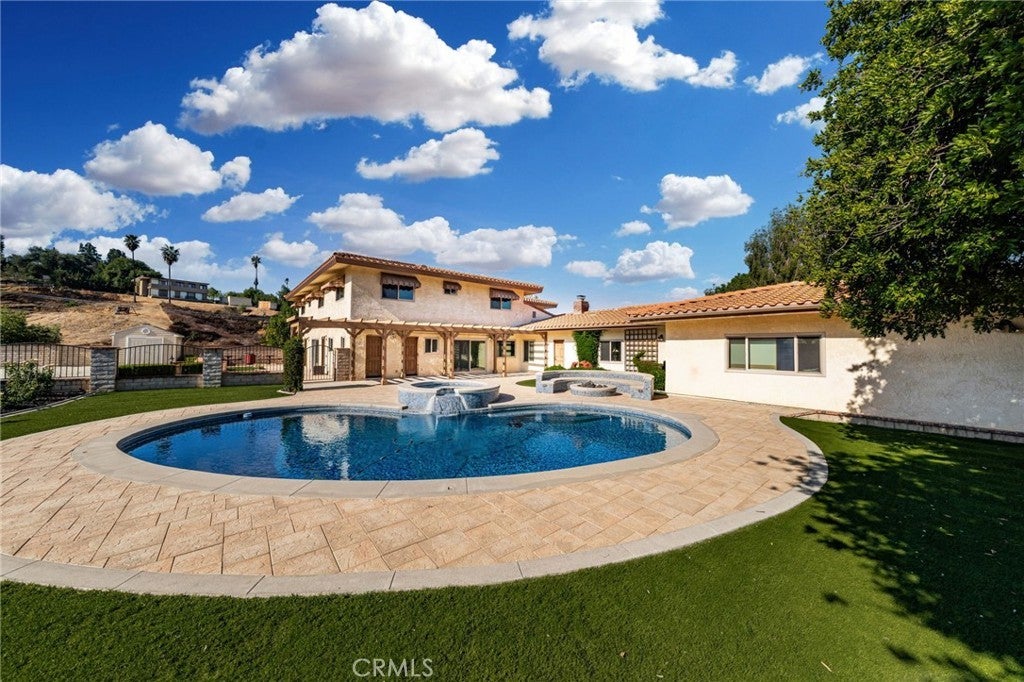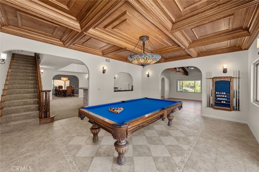 South Redlands five bedroom pool home with an attached seven car garage, detached 3200 square foot garage, and over 5500 square feet of living space on a nearly 50K square foot lot - just a chip away from the green at Redlands Country Club hole six! When you approach the home, you are greeted by a sizable circular driveway at the top of the private street that is Country Club Lane. You enter the home into the formal front foyer, which features the first staircase and vaulted ceilings. This well lit space displays stained glass pieces from local artist, Tom Medlicott. The entry is flanked by two living areas, a formal living room and a family room with an exposed beam ceiling; both of which feature large fireplaces. The family room, which has a direct access into the attached seven car garage (fully finished with tile flooring and a built in air compressor), opens up into the game room. That flows right into the center of the home, where you'll find a full sized wet bar and a second set of stairs. This space at the center of the home opens up to the second story interior balcony. Opposite the game room is a formal dining area, with direct access into the kitchen. It's generous layout features tremendous counter space, two dishwashers, a double oven, gas cooktop, wine fridge, prep sink, and plenty of storage. There is also an eat in dining area with a slider leading out into the back yard. Windows and doors throughout the home have been upgraded. Off of the kitchen, you'll find a large laundry room with additional counter space, a separate sink, more cabinets, and a small built in office area. Heading outside, the pool and spa with a glass mosaic finish serve as the centerpiece of the yard, which also has a gas fire-pit and low maintenance landscaping features. Five bedrooms are upstairs, including the primary suite. A newly renovated bathroom features a sizable dual vanity with a make up counter, a soaking tub, walk in shower, and a separate toilet room. The other bathrooms have been recently upgraded as well with new counters, fixtures, flooring, and lighting. There is a private office space off of the primary bedroom. Heading back outside, the exterior garage space is as impressive as the home. One of the largest private garages in Redlands, this is perfect for your car collection, the ultimate home gym or workshop, multiple class A RVs, or all of the above. Excellent Redlands Schools.