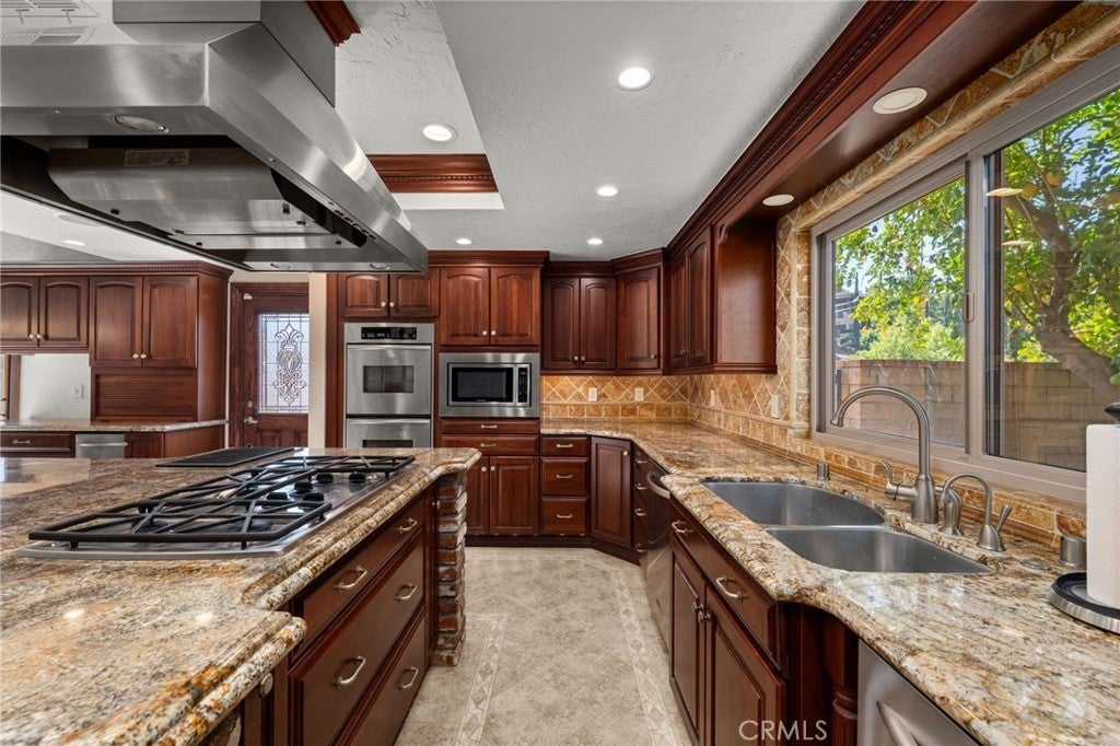 • AppliancesSixBurnerStove, Double Oven, Dishwasher, Freezer, Gas Water Heater, Ice Maker, Microwave, Refrigerator, Water To Refrigerator