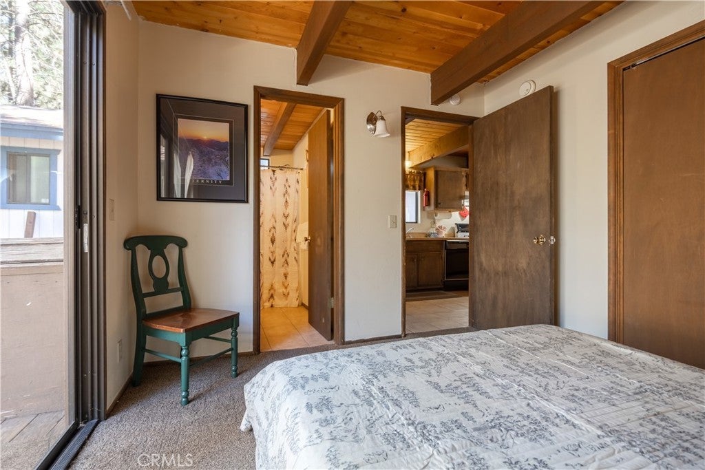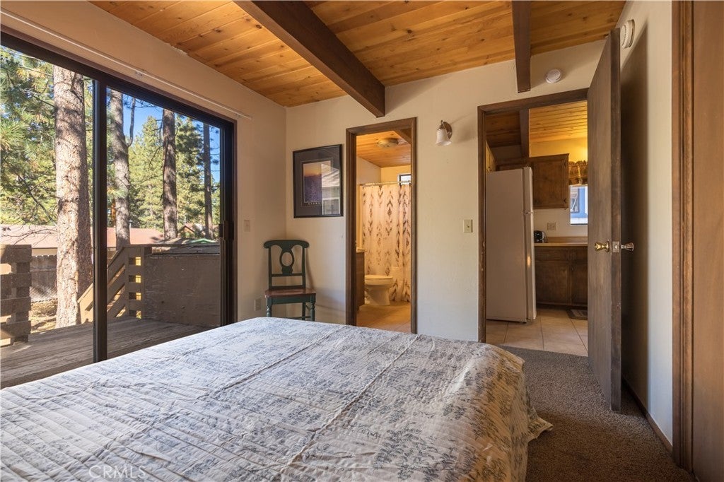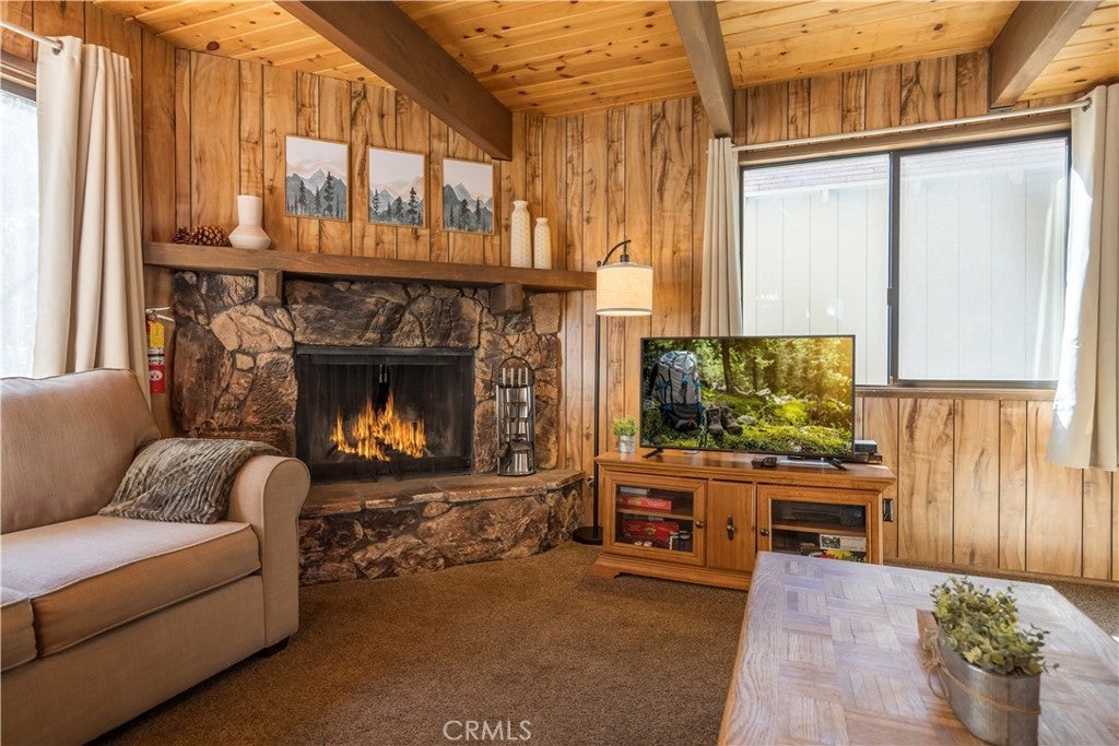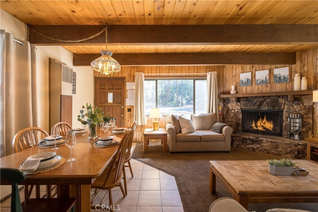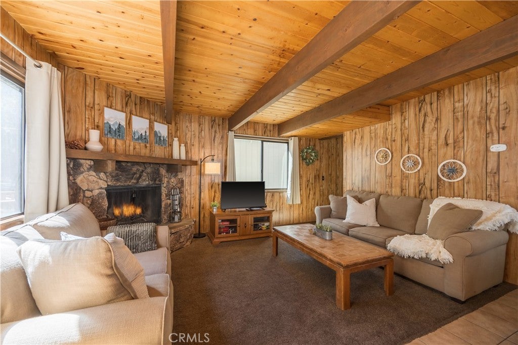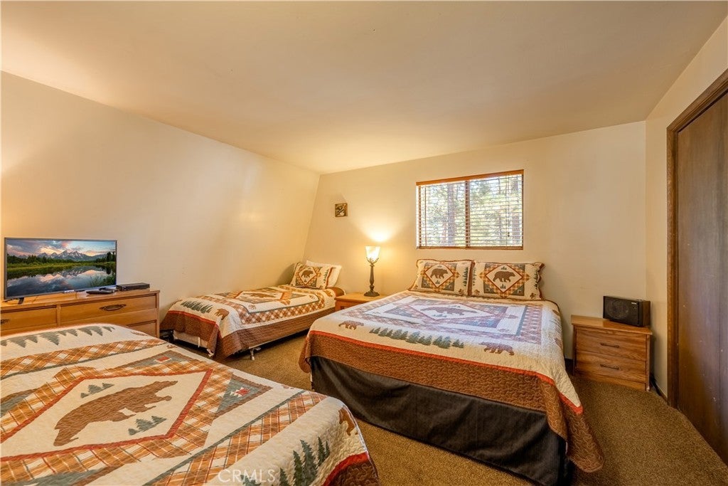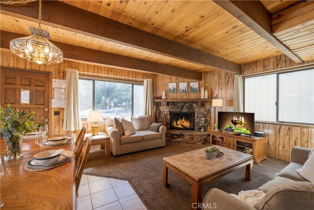 Ideally located near the Big Bear Zoo, Bear Mountain Golf Course and Ski Resort, and the vibrant new Moonridge corridor with dining options, this 3-bedroom, 2-bath modified a-frame cabin blends convenience with classic mountain appeal. Two bedrooms feature ensuite baths for comfort and privacy, while the living room offers an efficient and cozy layout centered around a wood-burning brick fireplace that enhances the warm, cabin-style atmosphere. With its inviting design and prime location, this property is well-suited as a full-time residence, vacation retreat, or rental opportunity.