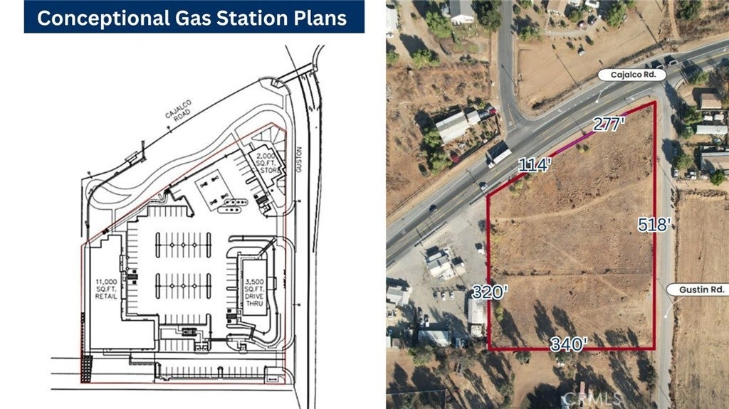 This prime 3+ acre property is zoned C-P-S (Scenic Highway Commercial) and sits on a highly visible corner with traffic counts approximately 20,000 cars per day along Cajalco Road, the main thoroughfare connecting Perris, Riverside, Corona/Norco, and March Air Force Base. Hardly any competition in the area as locals are in great need of new Retail Developments. The surrounding area shows strong demand for retail and service-oriented developments, supported by nearby residential neighborhoods with average household incomes ranging from $85k to $110k. Adjacent to the Lake Mathews General Store & Feed Store, the property is ideally positioned for a service station, car wash, shopping center, grocery store, dollar store, or other high-demand retail uses. This is a rare opportunity to secure a prime commercial corner in one of the Inland Empire’s growing corridors. Buyer to verify all information to their satisfaction.