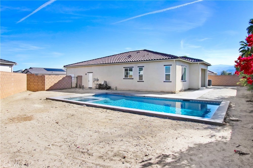Located in the Prestigious Escena Golf Community in the Palm Springs area. All of our homes include a custom Pool and Spa and many custom designer features. This home, the beautiful Delaney floor plan boasts an open floorplan with 3 bedrooms, a formal dining room, great room and luxurious chefs kitchen with stylish bronze faucets. Quartz kitchen counters including a large kitchen island perfect for entertaining. Amazing GE Monogram appliances including the Built in Refrigerators. Two and a half baths including the primary bedroom with gorgeous ensuite bath, shower and soaking tub. Indoor laundry room with cabinets and sink. Great room has double sliding doors that leads to your expansive covered patio where you can enjoy the fabulous views of the Palm Springs mountains. Gated community, with walking paths, and pet friendly