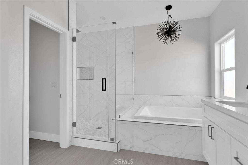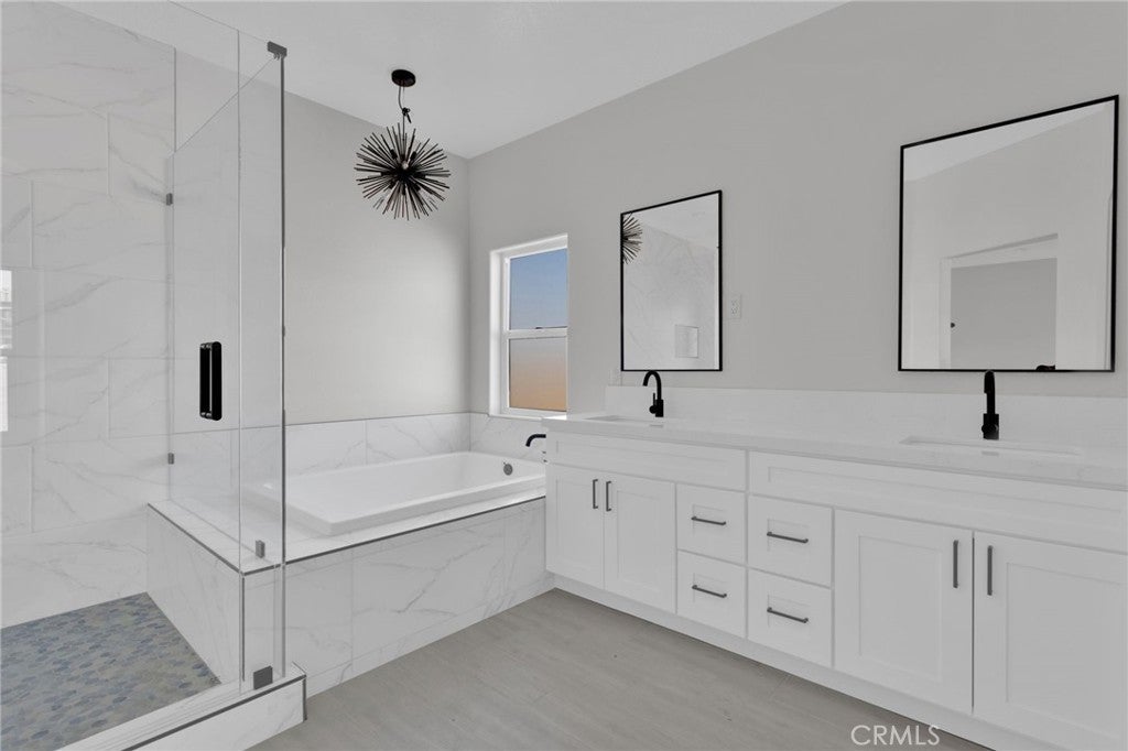 NEW CONSTRUCTION! This BEAUTIFUL 4 bedroom 3.5 bathroom contemporary split floorpan home features an open concept with MASSIVE living area open to the kitchen, 2 master suites, VIEWS OF THE WHOLE VALLEY from this FLAT CORNER LOT and so much MORE! The spacious kitchen features a large center island, quartz counters, pendant and under cabinet lighting, soft close cabinets and drawers, breakfast nook, walk in pantry, double oven and is open to the living space which boasts high ceilings, modern fireplace, recessed lighting, and wood-look tile flooring. The 2 master suites each have large en-suite bathrooms with custom walk in showers with frameless glass enclosures, dual vanities, and HUGE walk in closets. The main master also features a large soaking tub. This ENERGY EFFICIENT home includes OWNED SOLAR, tankless water heater, low-E windows, and Energy Star appliances. The oversized 3 car garage provides plenty of space for your toys! Additional features of this HIGH QUALITY home include full-width covered back patio, indoor laundry / mud room, with utility sink and 1/2 bathroom, and tons of storage. Quality and attention to every detail is evident throughout. This AMAZING home sits in one of the BEST NEIGHBORHOODS in Apple Valley and has VIEWS! This is truly a MUST SEE property!