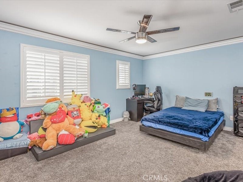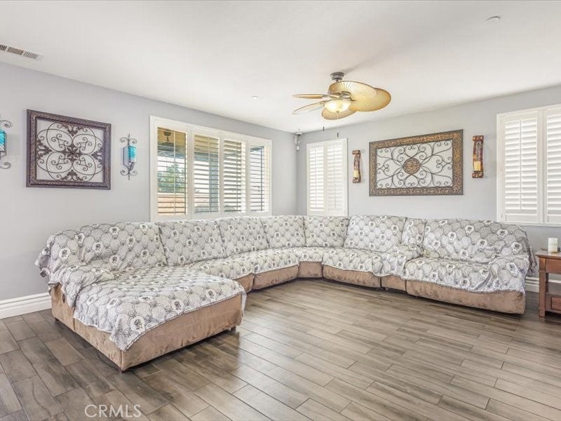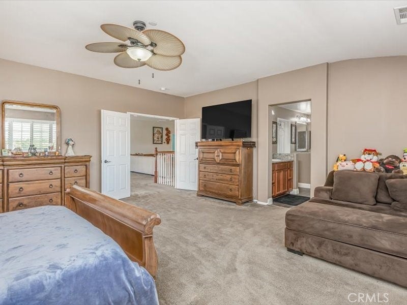 You don't want to miss the opportunity to get this lovely home, immaculately maintained , this impressive residence offers 6 bedrooms and 4 bathrooms, 2 story home if offers 4,423 Living Area and 10,018 Lot Size, the entry has a Custom doble Irons doors, installed 1 year ago, Step inside to find soaring high ceilings, that fill the home a natural lights. Also included an office with windows an glass door, located in the right side of the principal entry. The modern Kitchen features generous counter space ample cabinetry and convenient center island. the laundry room is lager than usual , it is now used as a boxing room, but you can easily convert into another room. The principal suite offers a private retreat with an ensuite bath and large Walk-n-closed. Also upstairs there is a large room that is used as a cinema place. The security cameras are commercial and were installed a years ago, which remain in the property for the new buyer. THIS PROPERTY OFFERS, QUIET PLACE, SPACE, LOCATION AND VIEW. At the night you can see all the lights of Moreno Valley. The View is breathtaking.