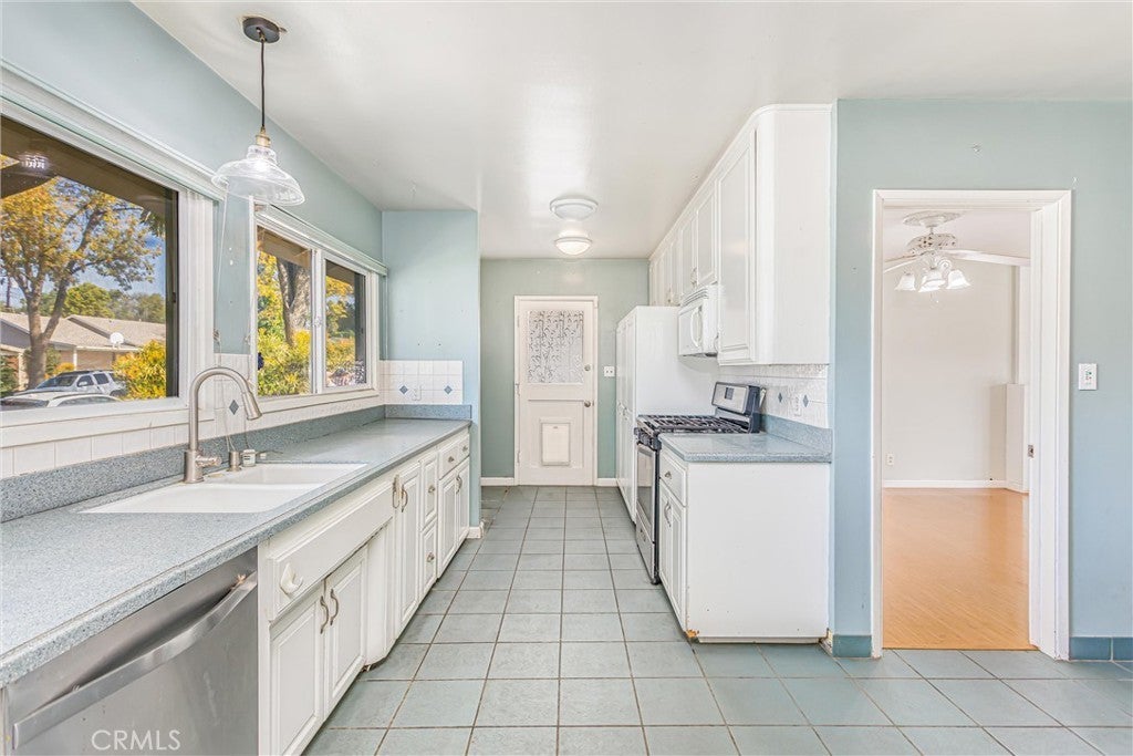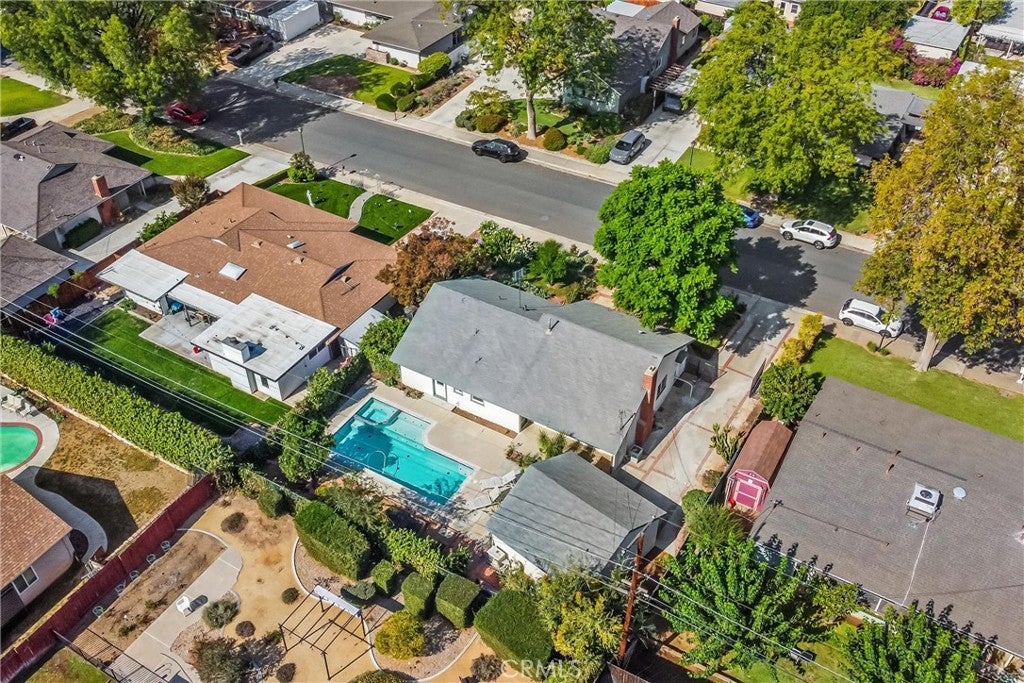 Welcome to 2838 Shenandoah Rd, a charming mid-century pool home tucked in the highly sought-after Cowboy Streets neighborhood of Riverside. Set on a peaceful, tree-lined street with award-winning schools nearby, this single-story residence offers timeless character, modern comfort, and an inviting layout designed for easy indoor-outdoor living. Step through the storybook front yard, where mature landscaping, fruit trees, and succulents frame a brick-lined path leading to the covered entry. Inside, the spacious living room welcomes you with warm natural light, a classic brick fireplace, and large sliding doors that open to the backyard. The adjoining dining nook flows into a bright, oversized kitchen featuring custom cabinetry, abundant storage, vintage tile backsplash, and stainless-steel appliances. A convenient indoor laundry area sits just off the kitchen. Down the hall, two generous bedrooms share a full vintage-style bath, while the private primary suite offers its own en-suite bath and peaceful views of the backyard greenery. Ceiling fans, dual-pane windows, and thoughtful design details enhance the home’s comfort year-round. Step outside to your own backyard retreat, complete with a sparkling pool and spa, raised garden beds, and lush mature landscaping that provides both beauty and privacy. The extended driveway and detached garage offer ample parking and flexibility for cars, toys, or workshop space. All this in a prime location near Victoria Elementary, Gage Middle, and Poly High, with easy access to the 91 Freeway, CBU, RCC, UCR, and Riverside’s thriving cultural scene downtown. A true blend of Riverside charm, convenience, and comfort, ready to welcome you home.