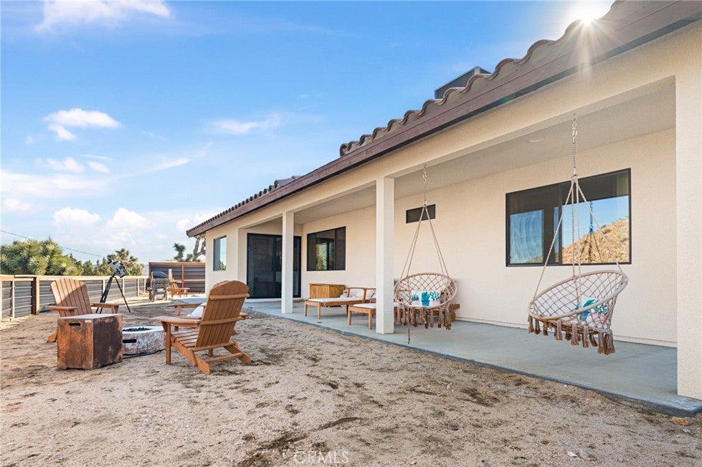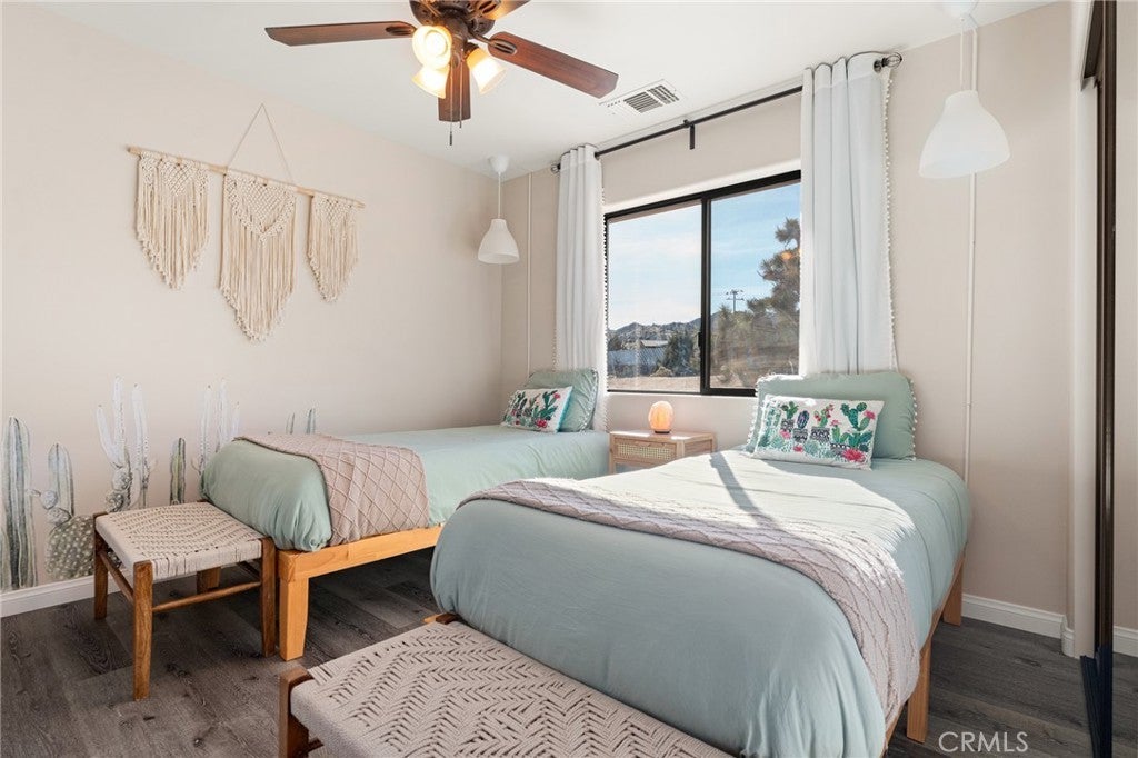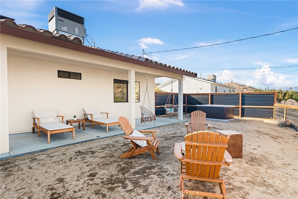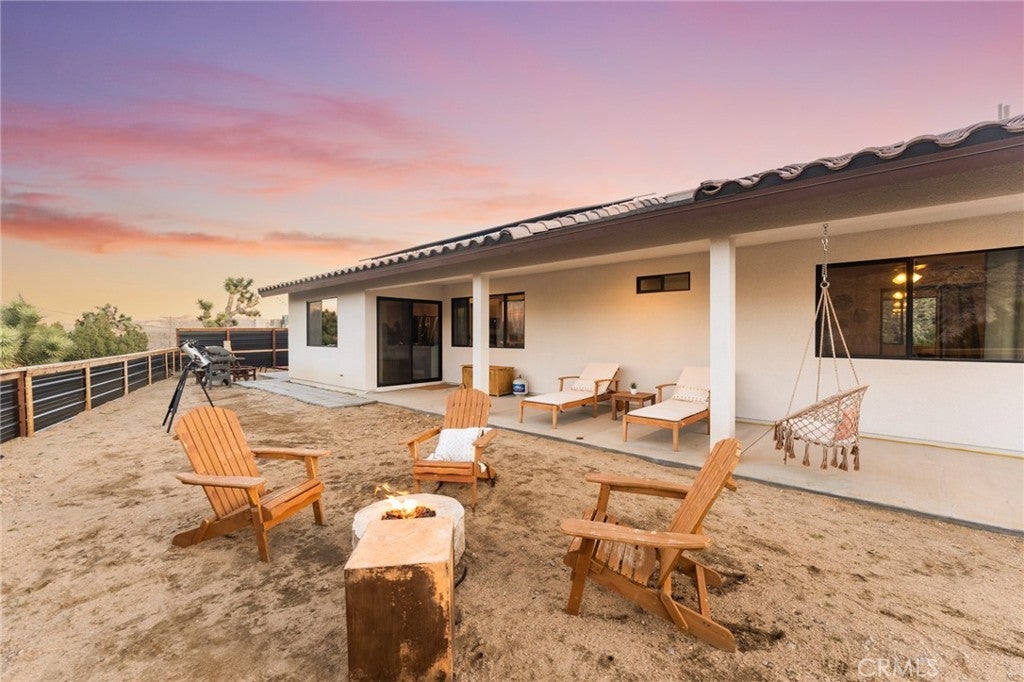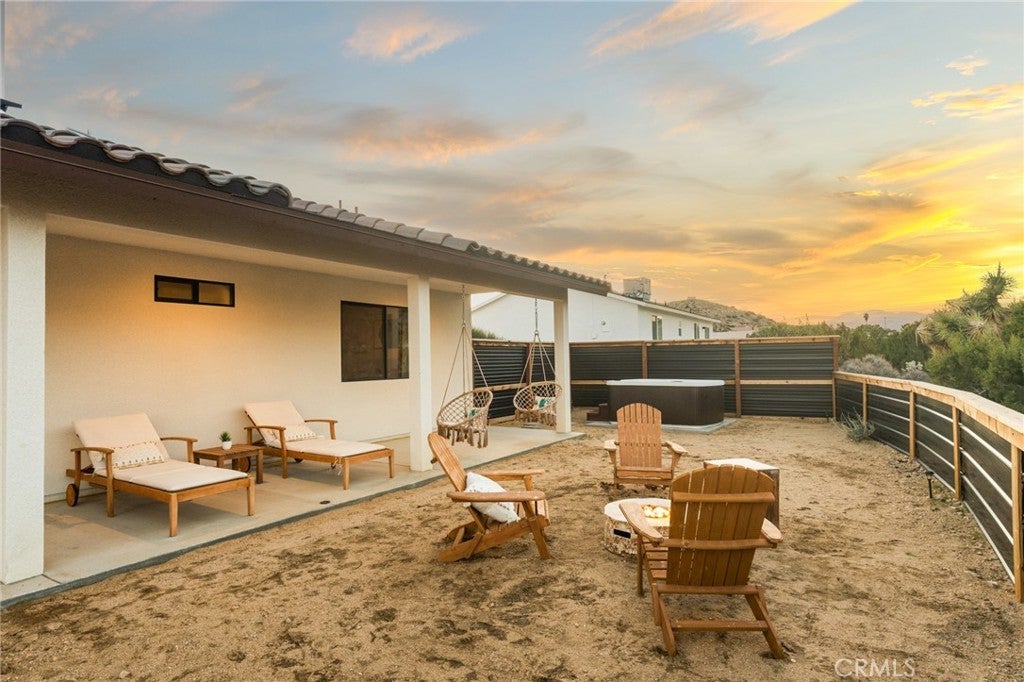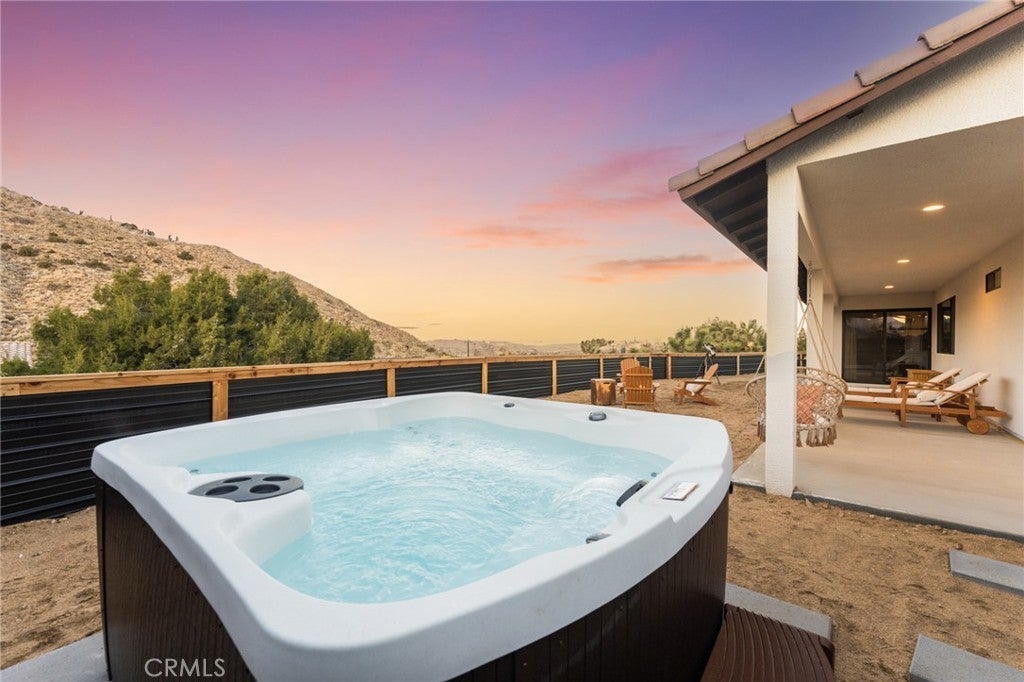 ABSOLUTELY STUNNING!! This is a SUCCESSFUL AirBnB Rental in Joshua Tree with Approx 50-60k of Rental Income!! This is a Wonderful SINGLE STORY Home built in 2021 and Sitting on a HUGE 18,000sqft Lot with Plenty of Room to Add Your ADU or Work-Shop * * LOW LOW Taxes and NO HOA Fees...Makes this very Affordable Living!! Enjoy this Spacious Floor-Plan Offering 1451sqft with 3 LARGE Bedrooms and 2 FULL Bathrooms * * Beautiful Kitchen with Custom Cabinetry, QUARTZ Counters & Back-Splash, In-Kitchen Dining Area, STAINLESS STEEL Appliance Package and Breakfast Counter for the Kids * * Spacious Living Room with HIGH Pitched Ceilings and VIEWS of the Surrounding Hills is PERFECT for Family Gatherings * * Terrific Backyard with Large Covered Patio, RELAXING Jetted Spa, Custom Wall Mural, Custom Fencing, Serene Views and PLENTY of Room to add Your Custom Pool * * UPGRADED Throughout with Luxury Vinyl Plank Flooring, DESIGNER FIXTURES, Custom 2-Toned Paint, LED Lighting, Base Molding & Ceiling Fans, BLACK FRAMED Windows, Custom Tiled Showers, Solar Panels and MUCH MORE * * Primary Bedroom with HIGH Ceilings - AND - Primary Bathroom with Custom Tiled Walk-In Shower * * (2) Additional Nicely Appointed Bedrooms * * TERRIFIC Curb Appeal with TWO Car Attached Garage and Possible RV Potential/Parking * * Terrific Location and in Great Proximity to Enjoy Everything the Area has to offer; Yet Distant Enough to Guarantee Absolute Privacy and an Unparalleled Experience of Stargazing. Only a 15-minute Drive to Joshua Tree National Park Visitor Center, 35 minutes to Palm Springs and 1hr to the Scenic San Bernardino National Forest * * Close to All Amenities including Schools, Shopping, Dining/Restaurants, Parks and EZ Freeway!!