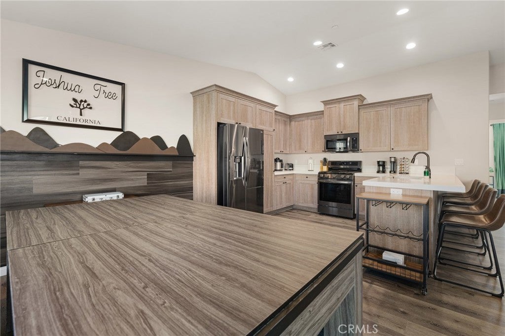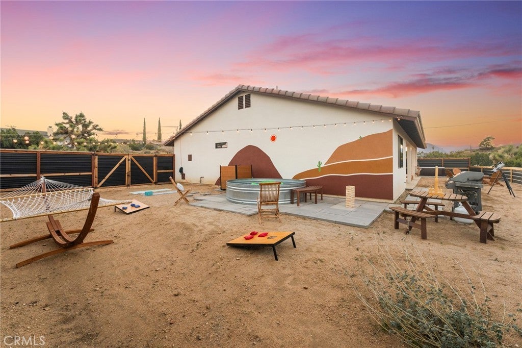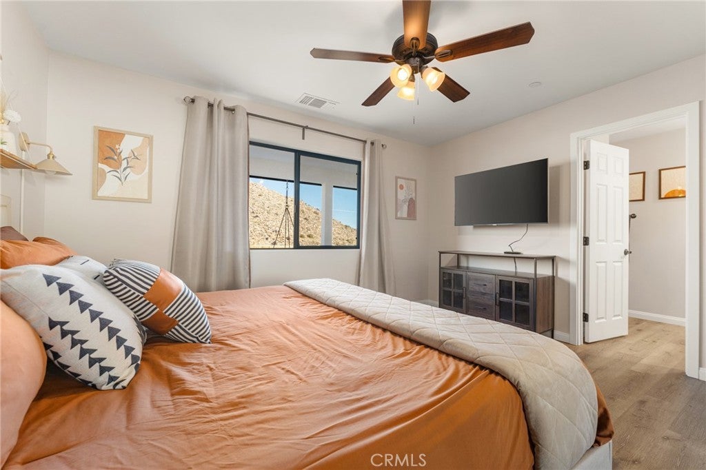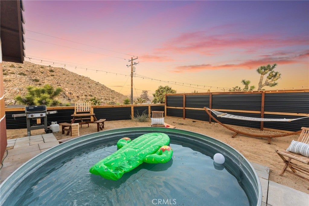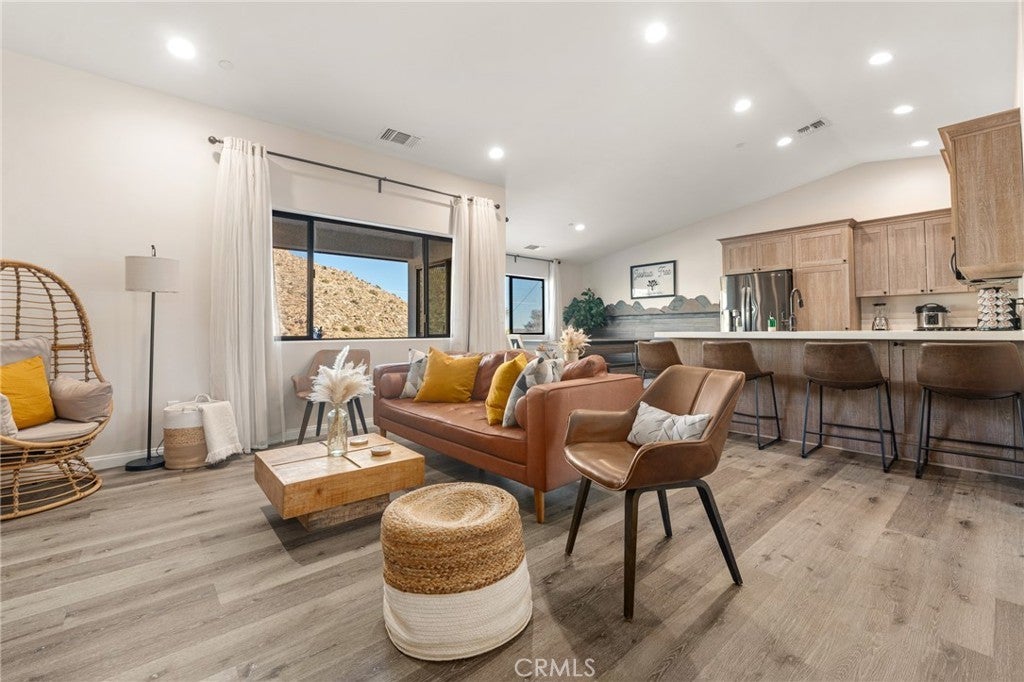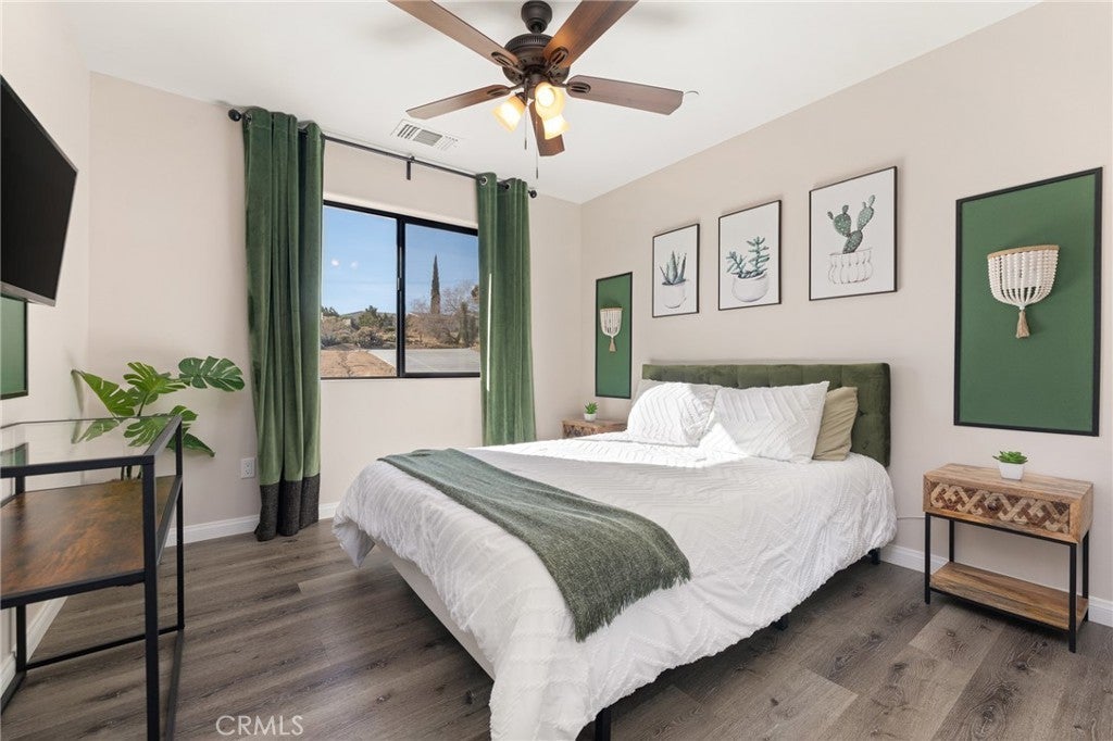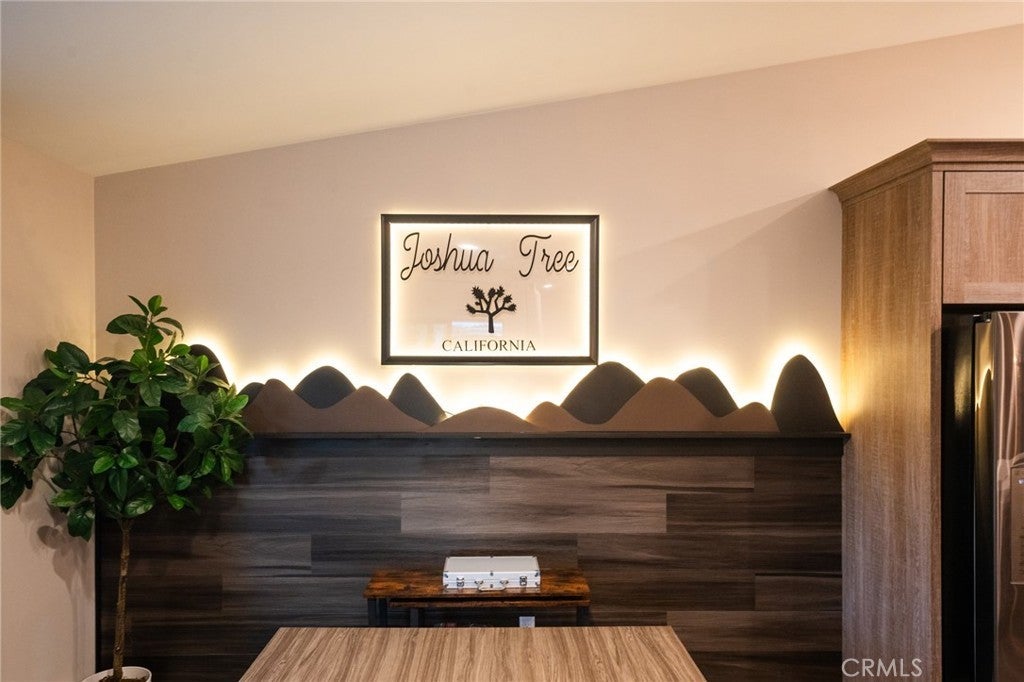 ABSOLUTELY STUNNING!! This is a SUCCESSFUL AirBnB Rental in Joshua Tree with Approx 50-60k of Rental Income!! This is a Wonderful SINGLE STORY Home built in 2021 and Sitting on a HUGE 18,000sqft Lot with Plenty of Room to Add Your ADU or Work-Shop * * LOW LOW Taxes and NO HOA Fees...Makes this very Affordable Living!! Enjoy this Spacious Floor-Plan Offering 1451sqft with 3 LARGE Bedrooms and 2 FULL Bathrooms * * Beautiful Kitchen with Custom Cabinetry, QUARTZ Counters & Back-Splash, In-Kitchen Dining Area, STAINLESS STEEL Appliance Package and Breakfast Counter for the Kids * * Spacious Living Room with HIGH Pitched Ceilings and VIEWS of the Surrounding Hills is PERFECT for Family Gatherings * * Terrific Backyard with Large Covered Patio, RELAXING Jetted Spa, Custom Wall Mural, Custom Fencing, Serene Views and PLENTY of Room to add Your Custom Pool * * UPGRADED Throughout with Luxury Vinyl Plank Flooring, DESIGNER FIXTURES, Custom 2-Toned Paint, LED Lighting, Base Molding & Ceiling Fans, BLACK FRAMED Windows, Custom Tiled Showers, Solar Panels and MUCH MORE * * Primary Bedroom with HIGH Ceilings - AND - Primary Bathroom with Custom Tiled Walk-In Shower * * (2) Additional Nicely Appointed Bedrooms * * TERRIFIC Curb Appeal with TWO Car Attached Garage and Possible RV Potential/Parking * * Terrific Location and in Great Proximity to Enjoy Everything the Area has to offer; Yet Distant Enough to Guarantee Absolute Privacy and an Unparalleled Experience of Stargazing. Only a 15-minute Drive to Joshua Tree National Park Visitor Center, 35 minutes to Palm Springs and 1hr to the Scenic San Bernardino National Forest * * Close to All Amenities including Schools, Shopping, Dining/Restaurants, Parks and EZ Freeway!!