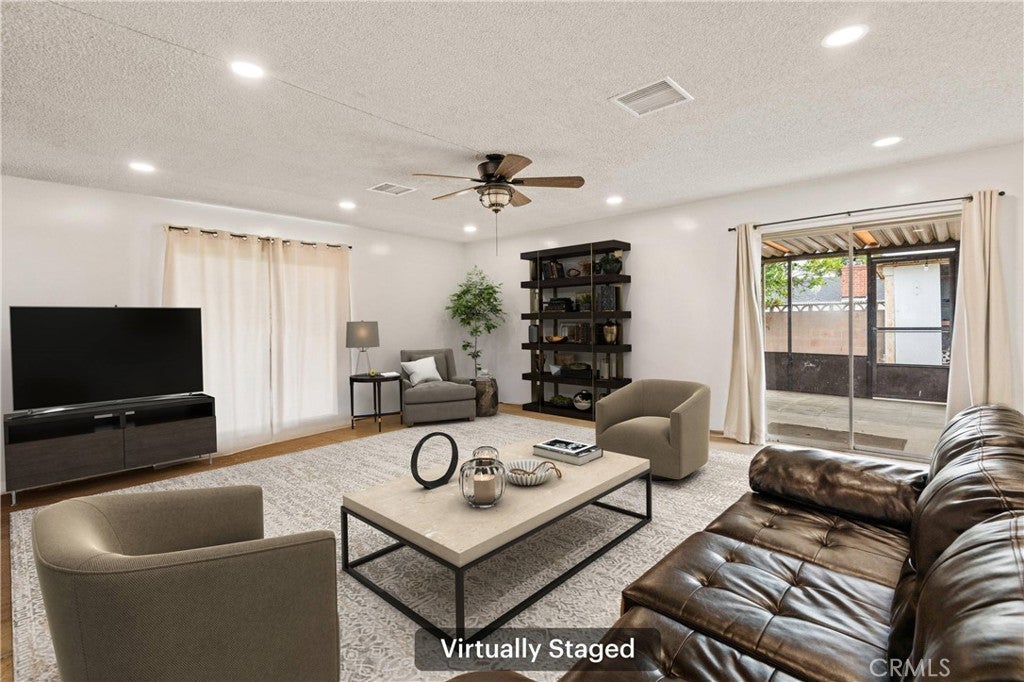 Move-in ready, single-story mid-century home in a terrific Ontario neighborhood. Featuring 4 bedrooms and 2 bathrooms with 1,724 sqft of living space on a flat, private 7,540 sqft lot! Sitting on a cul-de-sac street with fantastic curb appeal, and leased solar panels, and the interior is spacious with recessed lights, wood and tile flooring, and a newer A/C. The living room has brick fireplace and flows into the bonus room/family room. The updated kitchen offers a breakfast nook area, quartz counters, subway tile backsplash, stainless steel appliances with brand new stove, brand new dishwasher, as well as an included refrigerator and microwave, and there is an on-trend apron sink. Offering 4 bedrooms, with the primary bedroom featuring a private bathroom with walk-in shower, and there is a full-size hall bathroom for the 3 secondary bedrooms to share. This home also has a large enclosed patio to enjoy, and a private backyard with lush green grass, and block wall fencing. This home also has an attached 2-car garage with in-garage laundry hook-ups and included washer and dryer! Conveniently located near schools, shopping, dining, and also no HOA! Ready for its next chapter, this home is the perfect place to create lasting memories. Schedule your private tour today!