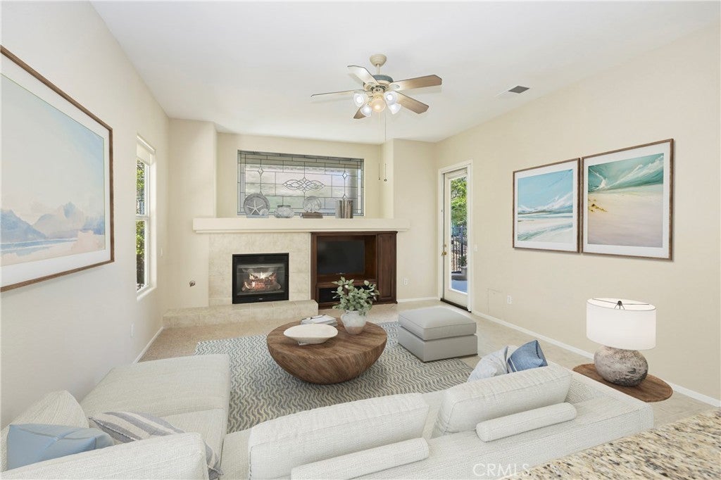 **HUGE PRICE IMPROVEMENT, BEST DEAL FOR THIS SQFT*** PAID OFF SOLAR! Nestled within The Oasis, Menifee’s premier 55+ gated resort community. From its inviting curb appeal to its thoughtfully upgraded interiors, this home beautifully blends sophistication, comfort, and function. Inside, a grand leaded glass double door entry opens to a light filled foyer and the sought after Barcelona floor plan. Offering 2 spacious bedrooms with ensuite baths + a 3rd bedroom optiona rare guest powder room. The chef-inspired kitchen is a showstopper, featuring gorgeous granite counters, custom pull-out shelving, double ovens, and a generous center island that flows seamlessly into the family room with fireplace and entertainment niche, ideal for both daily living and entertaining. Enjoy indoor /outdoor living through dual sliding doors that open to an expansive wrap-around patio overlooking the Paseo, perfect for hosting or simply relaxing under the Southern California sky. The primary suite offers a private retreat with tray ceilings, crown molding, a soaking tub, dual vanities, a walk-in shower, and a large walk-in closet. Additional highlights include: PAID solar with 21 panels (per contract in supplements), Fresh interior paint & new carpet, Tile flooring throughout main living areas, Utility sink in laundry room, Oversized garage with golf cart or workshop space and more! At The Oasis, residents enjoy an active resort-style lifestyle with a 22,000+ SF clubhouse, pools, fitness center, tennis, pickleball, library, and social clubs. BONUS**front yard maintenance, water, and trash covered by the HOA. Low taxes and a prime location near shopping, dining, medical services, Menifee Lakes Country Club, and Temecula wineries make this home the perfect retreat.