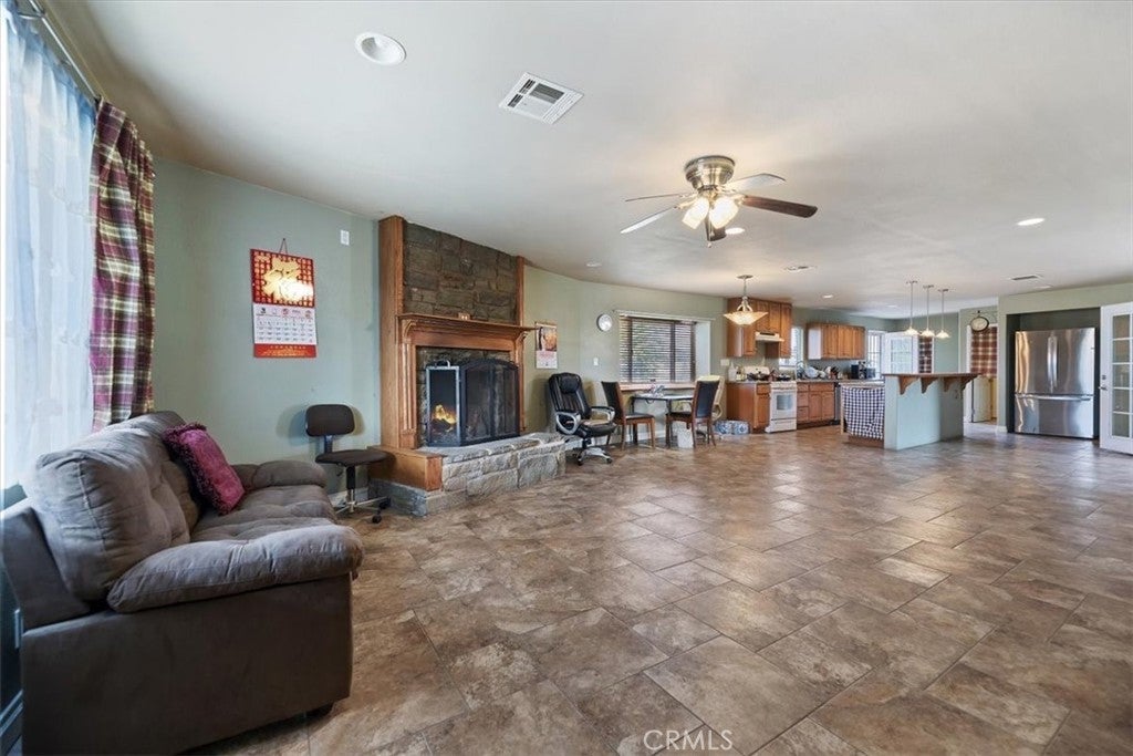 Set on a rare half-acre corner double lot, this fully gated Apple Valley property delivers space, privacy, and standout features you won’t find every day. The open floorplan centers around a spacious living room with a huge custom finished fireplace, flowing seamlessly into the kitchen with granite countertops—perfect for gatherings and everyday living. Enjoy year-round comfort with central heating and air conditioning, newer electrical, copper plumbing, and a 1,200-gallon septic system. The property features a 2-car garage, a large circular driveway, and abundant parking for RVs, boats, and all your recreational toys, complete with 220-amp RV hookups. The expansive backyard is packed with possibilities and includes a chicken coop, a bomb shelter/cellar, and two custom 12x10 12ft tall storage sheds. A truly unique property offering versatility, functionality, and room to live the Apple Valley lifestyle.