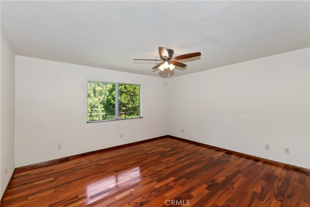 Discover your perfect retreat in this stunning 3-bedroom, 2-bathroom home offering an impressive 2,136 sq ft of gross area, thoughtfully designed for comfort and style. Conveniently equipped with central heating and air conditioning, this gem also includes dual-pane windows for energy efficiency and a garage for added convenience. Located just a short stroll from Crestline's scenic Lake Gregory and a popular yoga studio, this property provides the ideal blend of accessibility and tranquility. Set on a picturesque 5,550 sq ft usable lot, this home features one of the few fully grassed and fenced backyards in Crestline, making it a haven for outdoor enjoyment. The enchanting outdoor space showcases a majestic 15-foot Blackberry Bush, serene Japanese Maple Trees, a practical storage shed, and a captivating rock waterfall & pond, providing a serene backdrop for relaxation. Step inside to admire the luxurious Koa Brazilian hardwood floors that flow throughout the home. The vaulted ceilings in the living room create an open and airy ambiance, enhanced by remote control skylights that invite natural light into your living space. This home is equipped with a 6-year-old shingled roof with a 30-year warranty, vinyl siding, and an automatic Generac standby generator to ensure comfort during stormy weather. Entertain with ease from the newly stained 2-car deck parking leading to a level front door entry. The inviting front porch is adorned with a beautiful Cherry Tree, boasting four different varieties of cherries, and an Apple Tree with an array of four diverse apples. The main living room, featuring a cozy rock wall gas & wood fireplace, seamlessly connects to the kitchen, which is complete with new butcher block counters and a window overlooking a lovely rose garden and flourishing fruit trees. On the bottom floor, you'll find a full bathroom with heated floors and custom shelves, alongside two spacious bedrooms with access to a private back deck that shares spectacular views. Retreat to the primary bedroom, designed for comfort with his and her closets, one of which is a custom-built 7x12 ft walk-in. Just outside, unwind in a well-maintained covered Jacuzzi while soaking in the tranquil sounds of nature and stunning mountain views. With remarkable sunsets, starry nights, and breathtaking mountain views, this home is truly a sanctuary for those seeking serenity and the beauty of mountain living!