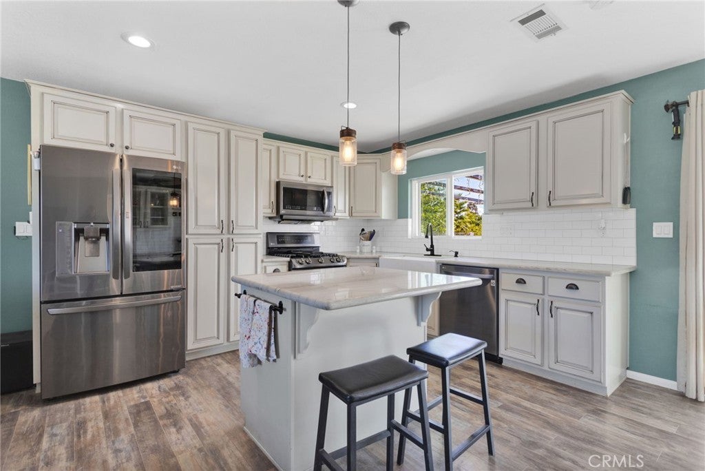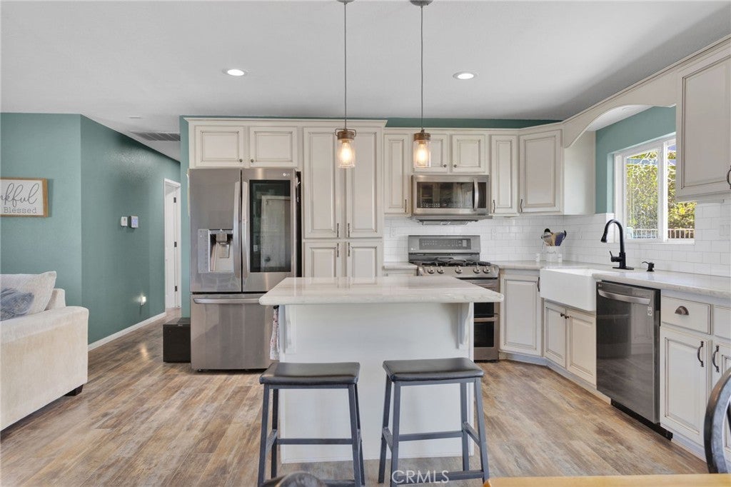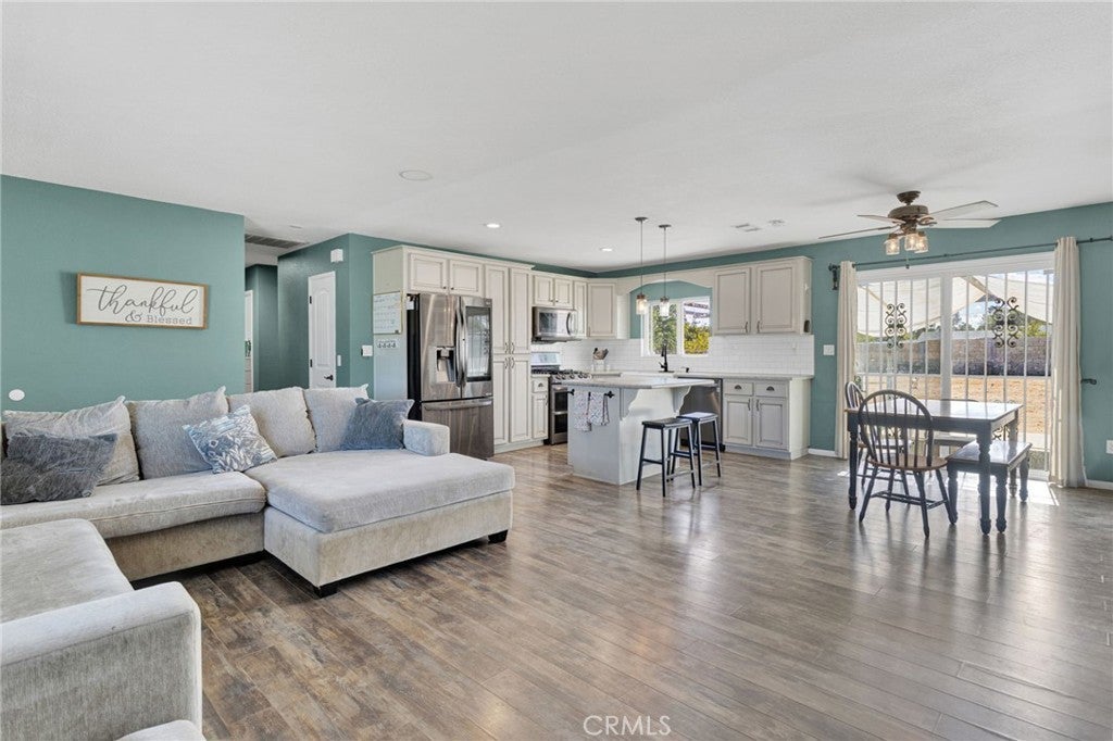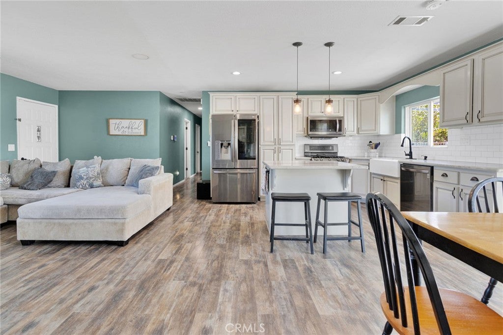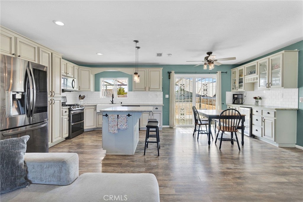 Welcome to this charming, commuter-friendly home in Victorville—where modern upgrades meet comfortable living, and a motivated seller makes this opportunity even sweeter! This beautifully maintained 3-bedroom, 2-bath residence offers an inviting open floor plan with thoughtful touches throughout. The upgraded kitchen is a true showstopper, featuring stunning cabinetry, quartz countertops, a spacious center island, and stainless-steel appliances that are included with the home. The kitchen flows seamlessly into the living room, making it perfect for entertaining and everyday living. Enjoy movie nights with ease—the living room is wired for 5.1 surround sound, and a built-in wine cooler adds a touch of sophistication. Both bathrooms are nicely updated, and laminate flooring throughout provides style and easy maintenance. Step outside to an entertainer’s backyard designed for relaxation and fun! The deck is wired for speakers, internet, and cable, and includes built-in drainage—creating the ideal space for gatherings. The garage is set up for two televisions, making it a great hangout or workshop area. A backyard shed with water and electricity adds extra versatility and storage. This home also includes an assumable solar lease with Sun Run to help keep energy costs low. Conveniently located near major commuter routes, shopping, dining, and schools, this Victorville gem is move-in ready. Seller is motivated and every offer will be considered—don’t miss your chance to make this home yours!