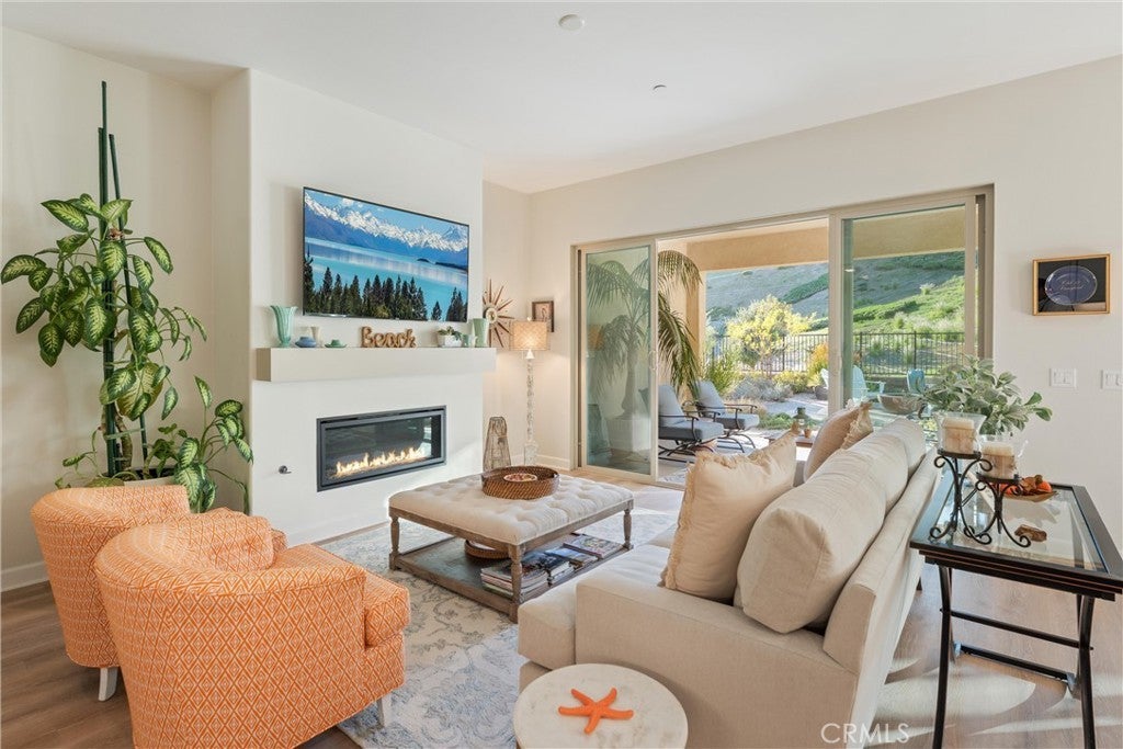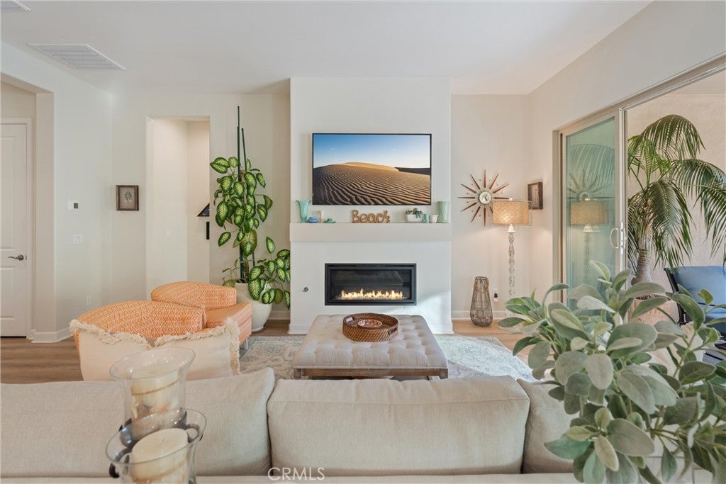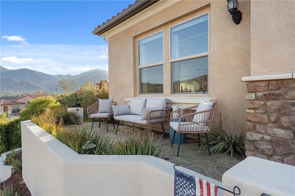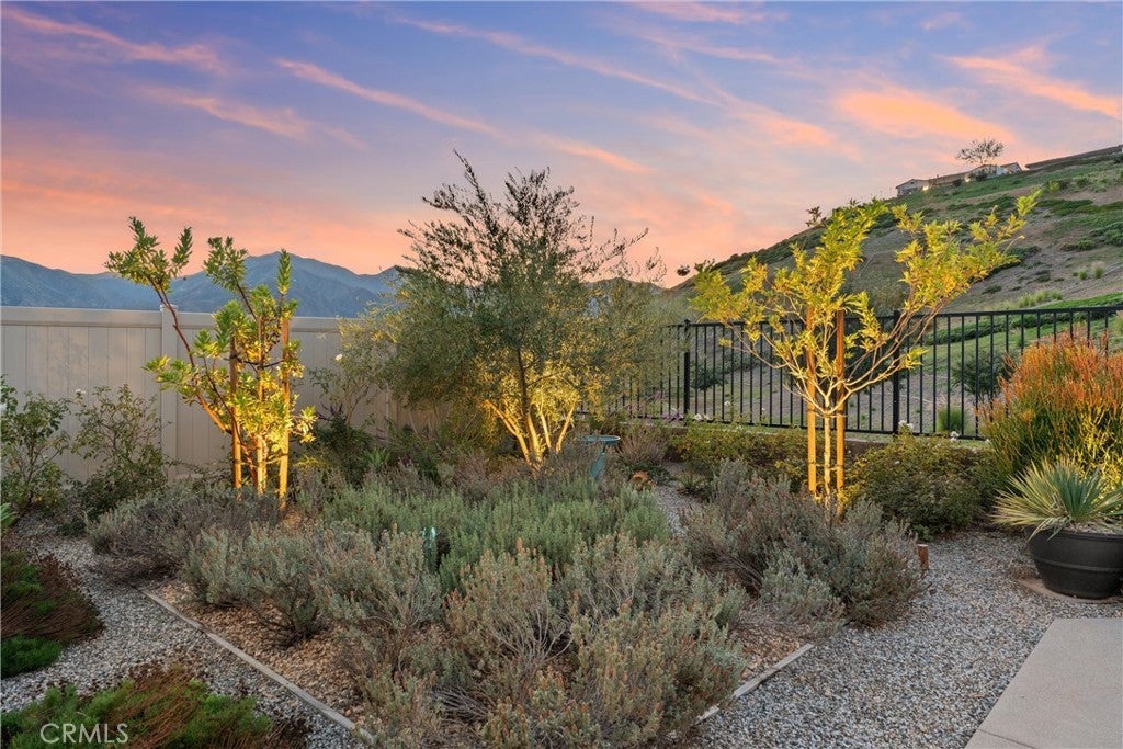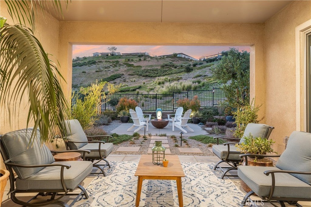 55+ RESORT-STYLE LUXURY LIVING | 1-STORY | PANORAMIC VIEWS | FULLY PAID SOLAR | GUARDED + GATED | Welcome to this beautifully upgraded home in the highly desired Terramor — where modern luxury and comfort meet in a vibrant community! A welcoming front patio with mountain views sets the stage for easy living in this elegant residence. Step inside to be greeted by abundant natural light, gorgeous luxury plank flooring, & an impressive array of upgrades. The open-concept Living Room has a warming fireplace & a 2-panel sliding glass door that extends your living space into the grand California Room & fully landscaped yard, creating the perfect blend of indoor-outdoor living. The chef-inspired Kitchen boasts stunning quartz countertops, breakfast bar seating, upgraded cabinetry, stainless steel appliances, pot & pan drawers, under-cabinet lighting, and oversized walk-in pantry. The Dining Room offers convenience for entertaining with a second slider to the backyard & a built-in china hutch with glass display doors—adding style & function. The Primary Ensuite Bedroom is spacious & filled with natural light, creating a serene retreat. The spa-like Ensuite Bathroom showcases quartz countertop, dual sinks, an oversized frameless shower with seating, upgraded cabinetry, & a walk-in closet with custom built-ins. Bedroom #2 enjoys stunning mountain views, while the Builder's spacious optional Bedroom #3 is currently a combined office/den. Bathroom #2 includes quartz counters and a shower-tub combination. Additional highlights include a separate Laundry Room with extended cabinetry and utility sink, and a Mudroom featuring a custom upholstered bench and extra entry storage for convenience. Step outside to your private backyard retreat, complete with a covered California Room, firepit with dedicated gas line, gazebo-covered dining area, a 2nd gas line for your BBQ, an oh-so-perfect lavender garden, and captivating sunset panoramic views. Energy efficiency is top-of-the-line with fully paid solar system, EV outlet, tankless water heater, whole house fan, drip irrigation & recessed lighting. Amenities include 2 clubhouses (55+ Only and All Ages), indoor & outdoor pools, fitness center, wellness studio, tennis, pickleball, miles of trails, dog parks & sports fields. Nearby find shopping, restaurants, cinemas & quick access to OC via 15/91 Expressways & 241 Toll. This remarkable residence offers the perfect blend of elegance, privacy, & modern comfort — welcome home!