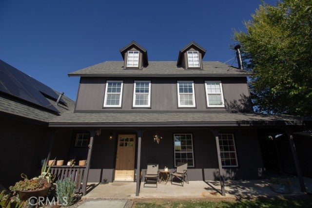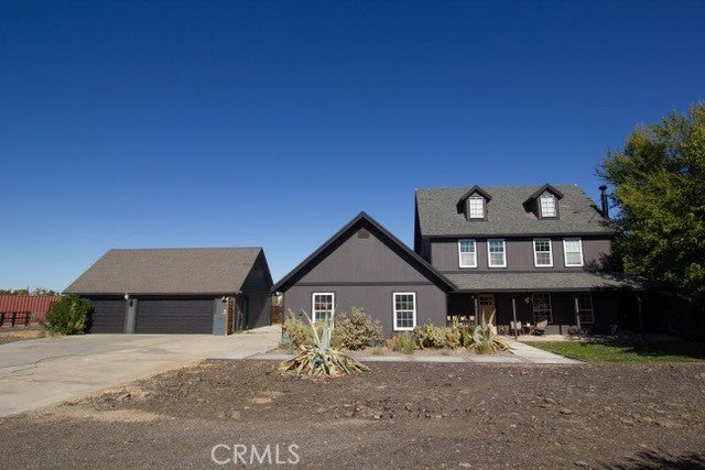 Welcome to this stunning, fully remodeled modern farmhouse that perfectly blends rustic charm with contemporary luxury. Set on just over 2 acres of land, this home offers both elegance and functionality. Step inside to an open-concept floor plan featuring designer finishes, high ceilings, and top-of-the-line appliances throughout. The gourmet kitchen boasts custom cabinetry, a large center island, and premium stainless-steel appliances including a 48 inch professional hood and range—ideal for both entertaining and everyday living. The spacious primary suite offers a serene retreat with spa-like amenities, while additional bedrooms provide comfort and flexibility for family or guests-all located on the second floor. Outside, enjoy the best of country living with a stock tank pool, outdoor fire pit, and ample yard space for recreation or relaxation. The property includes an attached 2-car garage plus a separate 3-car garage, providing abundant storage and workspace. Fitness enthusiasts will love the custom C-container gym, while equestrians can take advantage of the private horse arena that comes complete with a 40 foot container used to store tack and feed. Powered by solar energy and equipped with two Tesla Powerwalls-saving over $6,000 for the year, this home delivers sustainability without sacrificing style. Every detail has been thoughtfully designed, making this chic farmhouse estate the ultimate blend of sophistication, comfort, and modern country living.