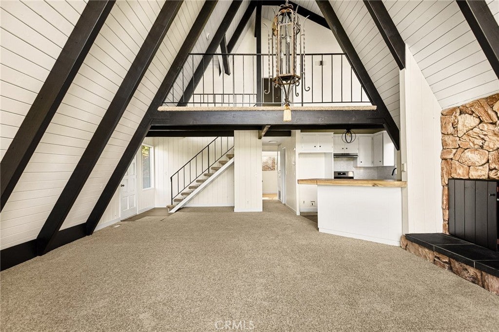- Interior FeaturesBeamed Ceilings, Breakfast Bar, Bedroom on Main Level, Loft
