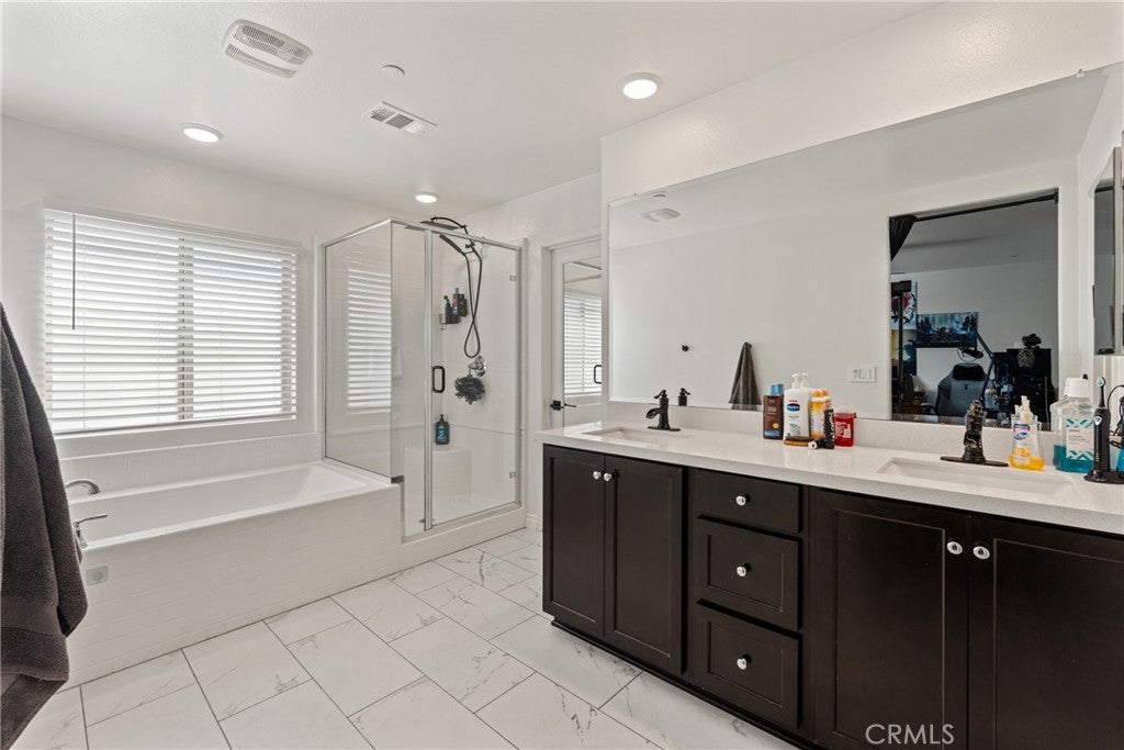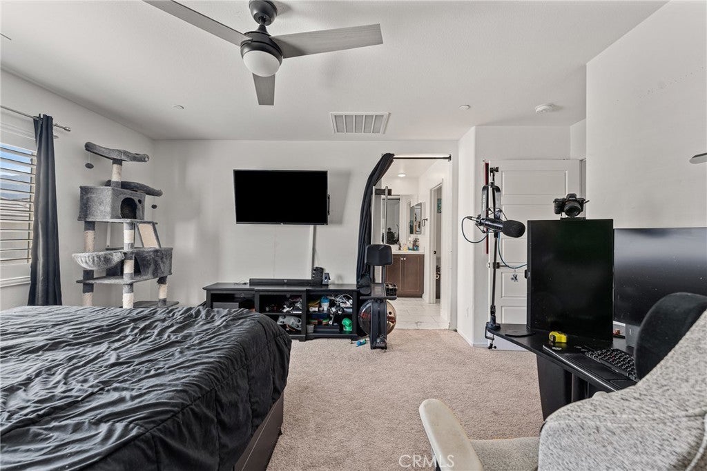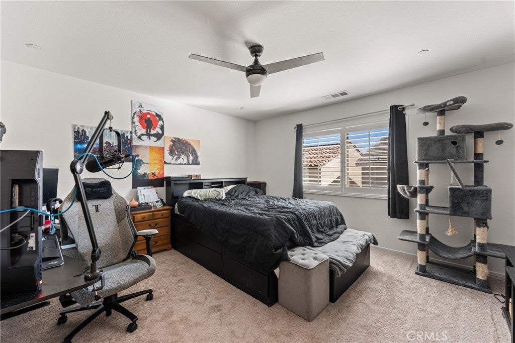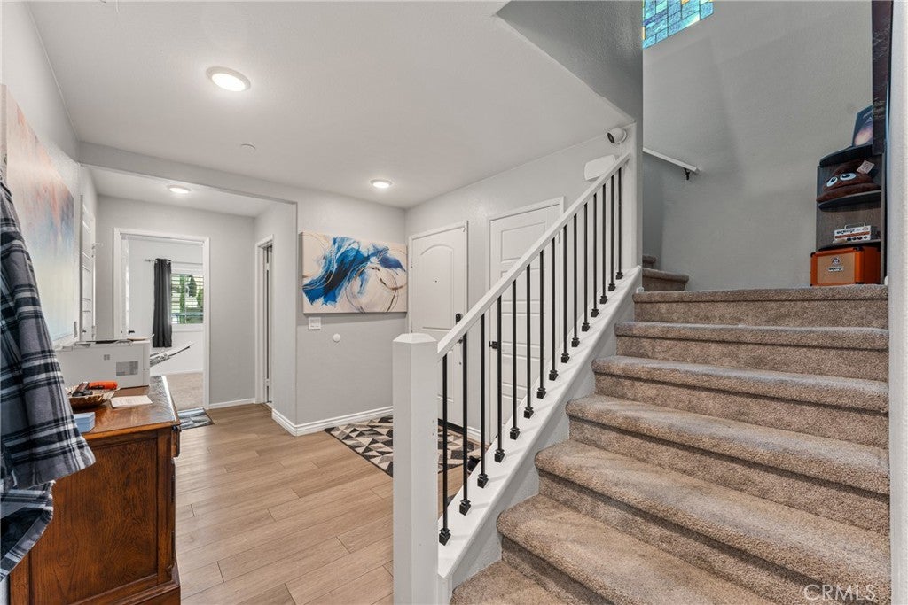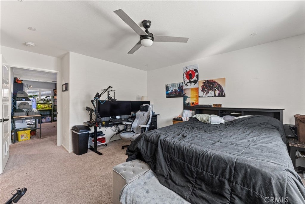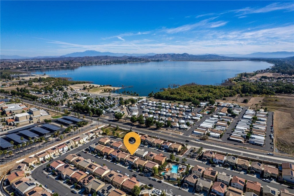THIS HOME QUALIFIES FOR A 20K GRANT! Welcome to your stunning modern home in the highly desirable West Lake community of Lake Elsinore. Enjoy the benefits of a low HOA in this 2020 built residence featuring stylish upgrades throughout. Step inside to find beautifully upgraded bathrooms and a spacious open concept kitchen complete with custom countertops and backsplash, upgraded stainless steel appliances, an overhead microwave, large pantry, and an island offering abundant storage and prep space. The open floor plan flows seamlessly into a large patio with an awning, perfect for entertaining or relaxing outdoors. The main level also includes a room currently used as an office that can easily function as a bedroom. Additional highlights include dual pane vinyl windows with shutters, a QuietCool whole house fan, smart thermostat, tankless water heater, ceiling fans throughout, and a Tesla charging station for added convenience. Upstairs, you will find a luxurious primary suite with a walk-in closet and ensuite bath featuring dual sinks, a soaking tub, and a separate shower. A spacious loft offers an additional living area, home office, or playroom. This home perfectly blends modern comfort, energy efficiency, and thoughtful design. Move in ready and beautifully maintained, it is ready for you to make it your own.
