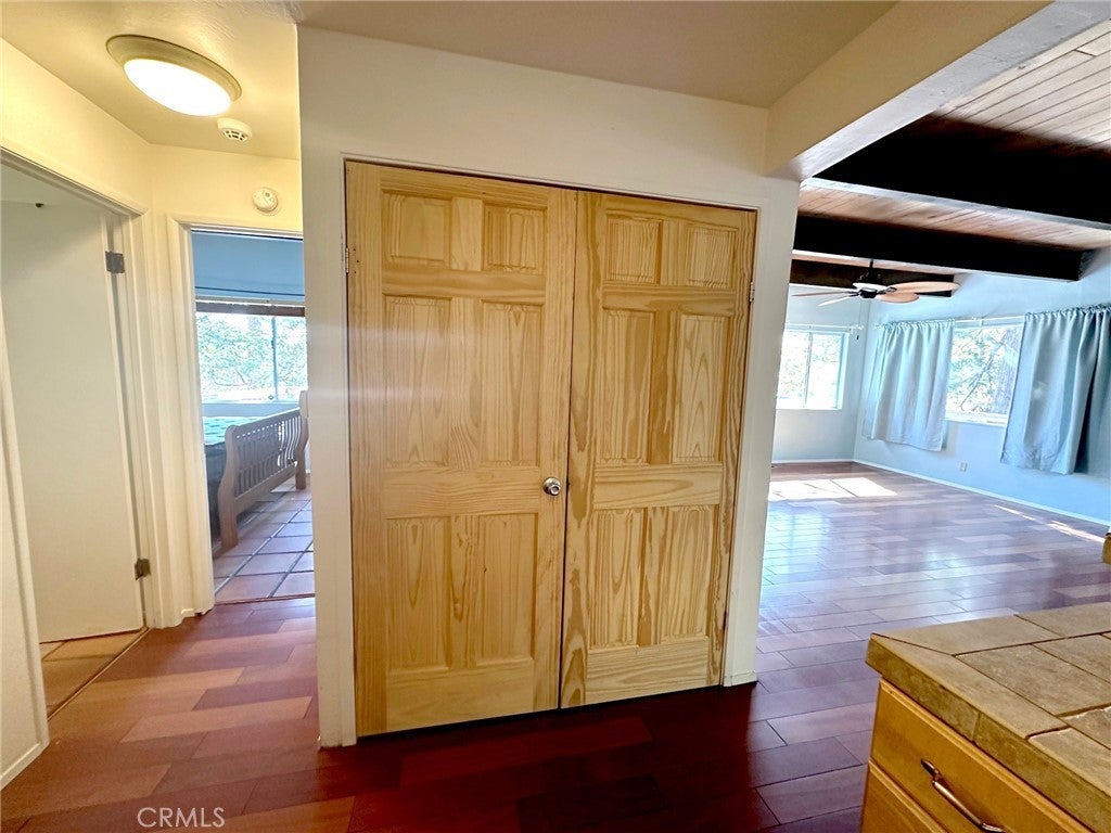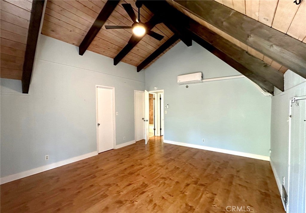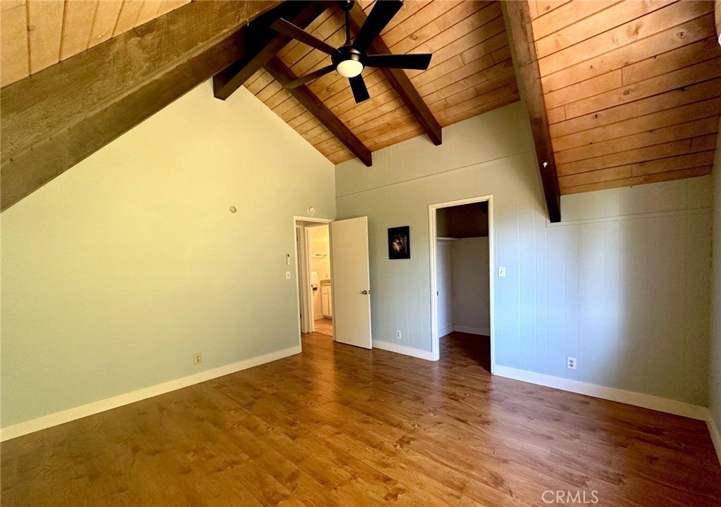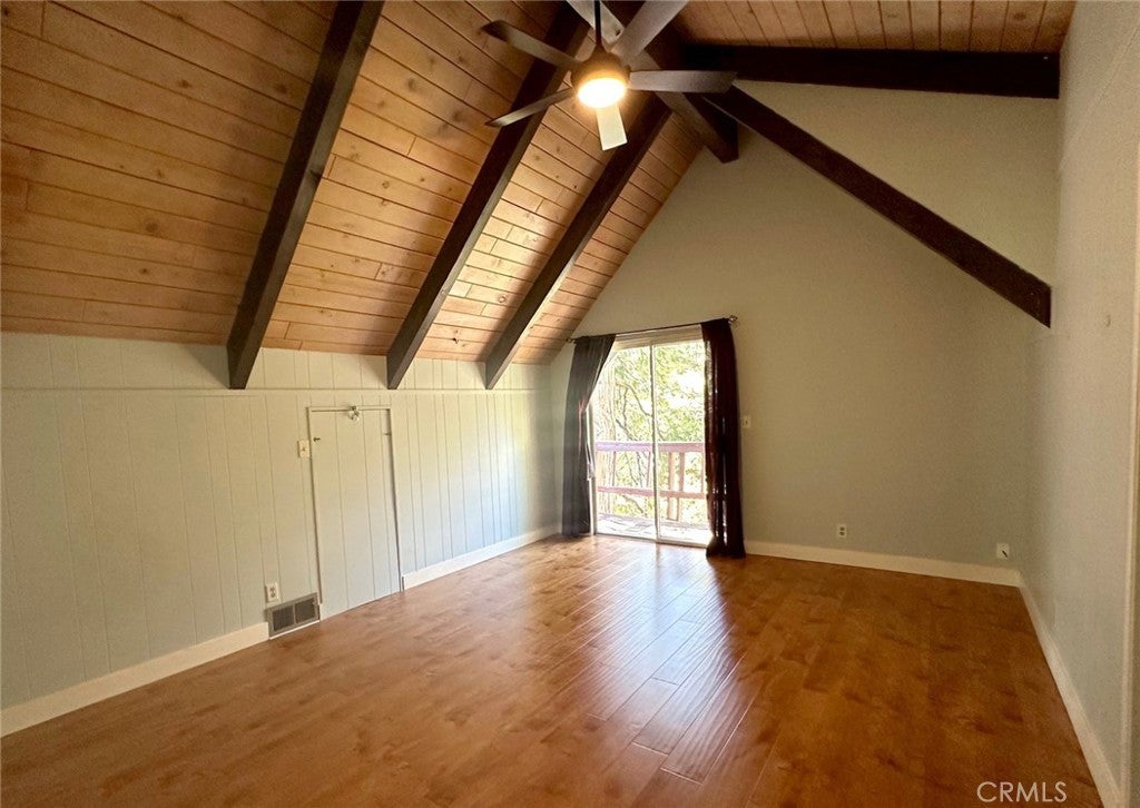 - Interior FeaturesBeamed Ceilings, Balcony, Ceiling Fan(s), Cathedral Ceiling(s), High Ceilings, Living Room Deck Attached, Open Floorplan, Bedroom on Main Level